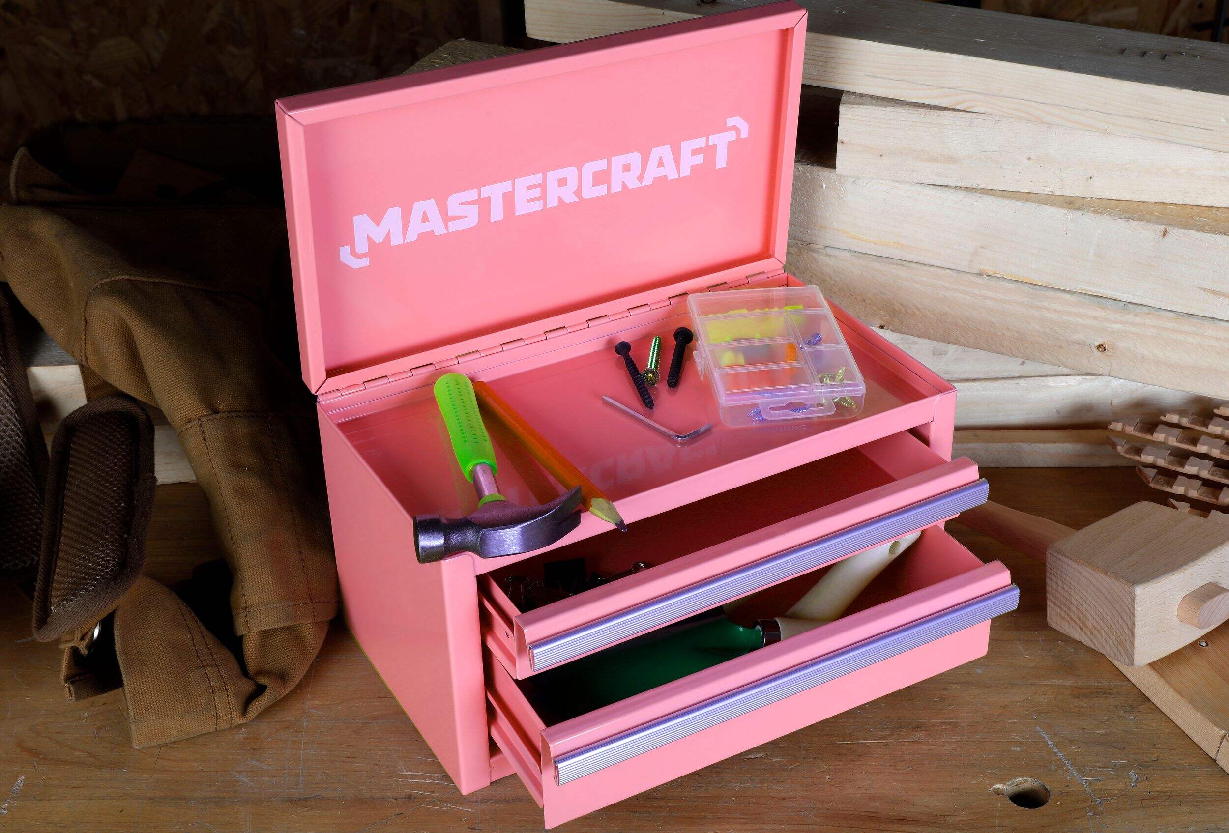 The Mastercraft Pink Mini Tool Box is an ideal tool storage solution for your home, garage or workshop. Its compact size and portability make this small tool box perfect for keeping your tools organized and easily accessible. The vibrant pink tool box adds a touch of style to your workspace.