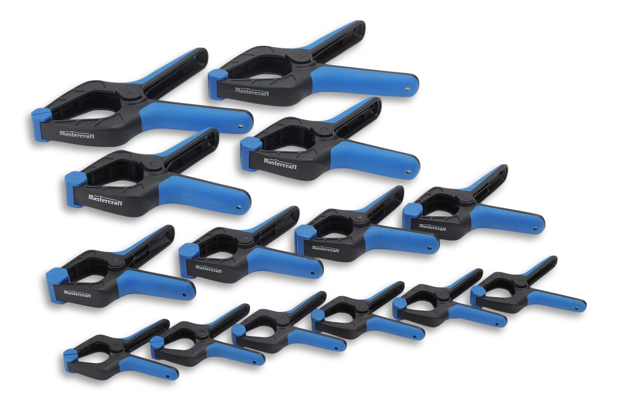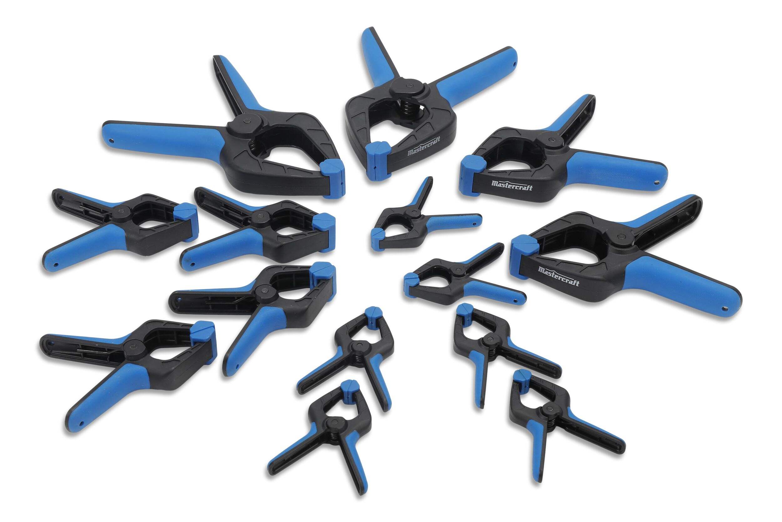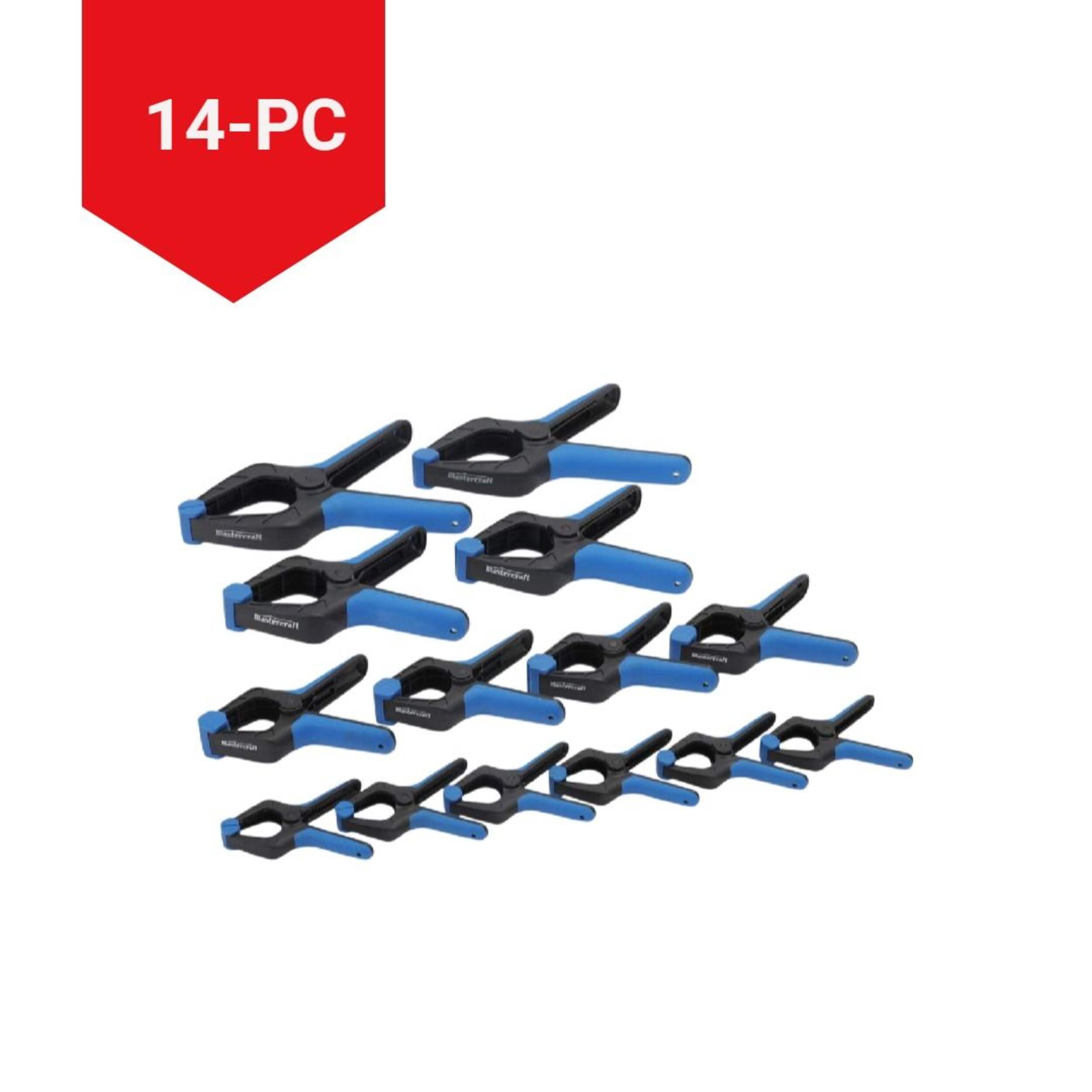The Mastercraft Plastic Spring Clamp Set is an essential tool for any household or workshop. This versatile set includes 14 durable plastic spring clamps in assorted sizes, perfect for securing materials during woodworking, crafting, or other DIY projects. Each clamp features pivoting V-grooved jaws, providing a firm grip on flat or irregular surfaces. Whether you're working on a home improvement project or crafting, this clamp set provides reliable holding power for a variety of tasks.