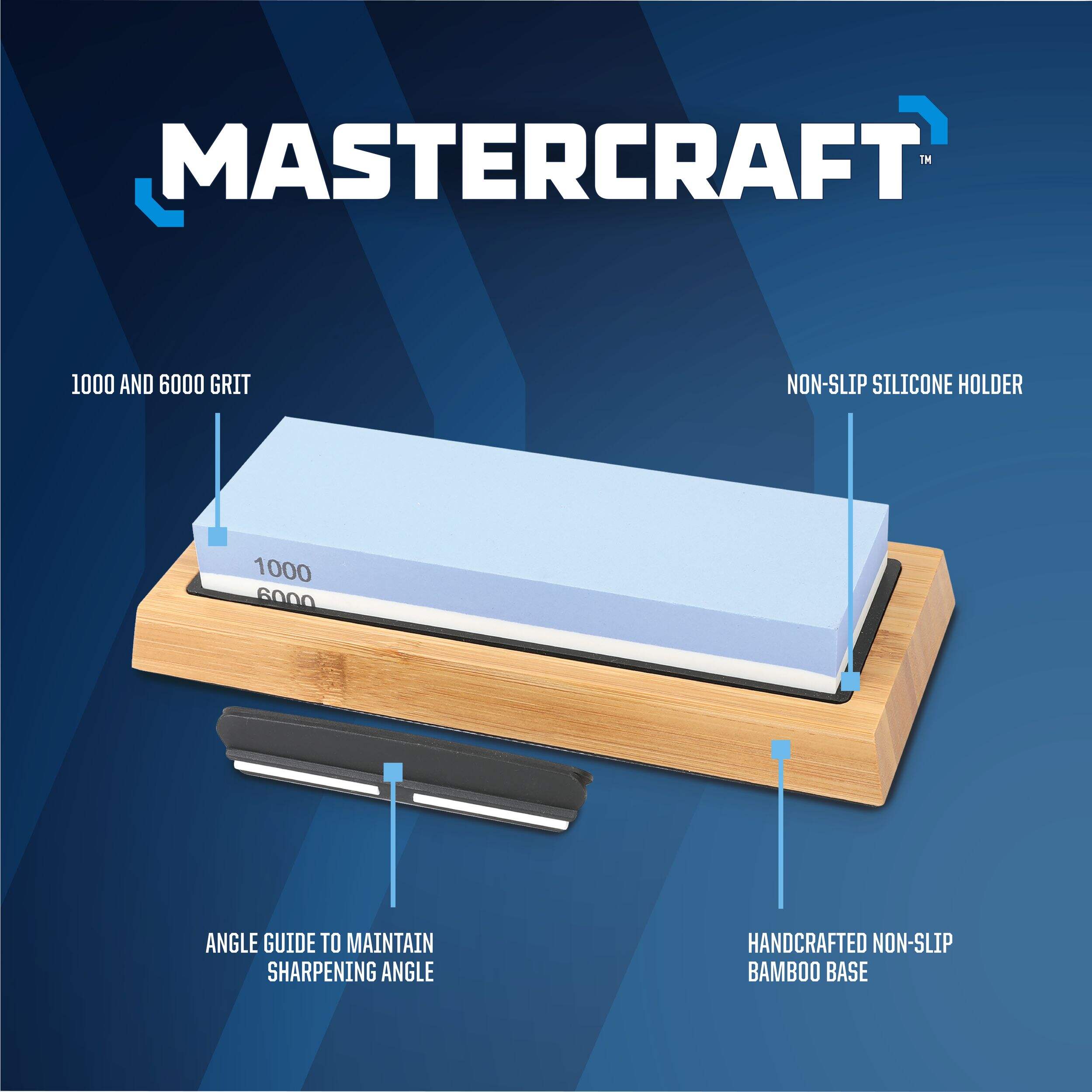 Keep your cutting tools razor-sharp with the Mastercraft 4-Piece Pro Dual Grit Tool & Knife Sharpening Stone Set. The included stones allow you to take your tools from rough to refined, quickly restoring dull blades to optimal sharpness. Whether you're honing kitchen knives, chisels, plane irons, or scissors, this versatile kit has you covered.