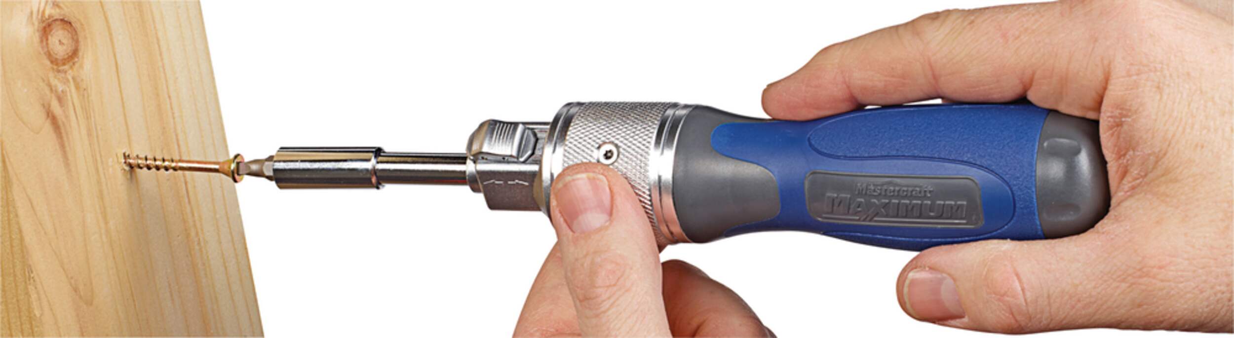 If you're looking for the action of a ratcheting screwdriver, the Mastercraft Maximum Quik Gear Screwdriver set is an excellent choice. By driving with each back and forward turn of the handle, you can drive fasteners 2X faster than a standard ratcheting screwdriver. Switching between driving and removing is accomplished with the touch of a thumb. The ergonomic handle offers a secure grip, plus contains bit storage for easy access when you need it. The set includes 28 S2 bits, which are more durable than standard CRV screwdriver bits and can be used in power tools.