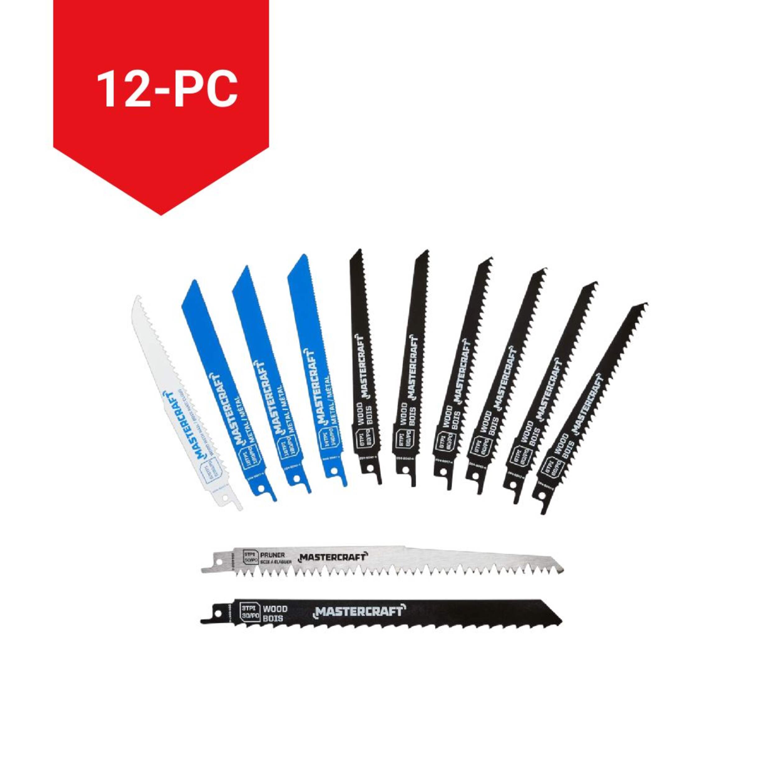 Handle any DIY project with ease using the versatile Mastercraft Reciprocating Saw Blade Set. Each cut off saw blade in this set is durably designed to cut through metal and all types of wood grains, up to 4" (10 cm) thick. These impeccably constructed blades make short work of pipe, rebar and ferrous metal over 3/16" (0.47 cm), plus thick and non-ferrous metal up to a thickness of 1/8" (0.32 cm).