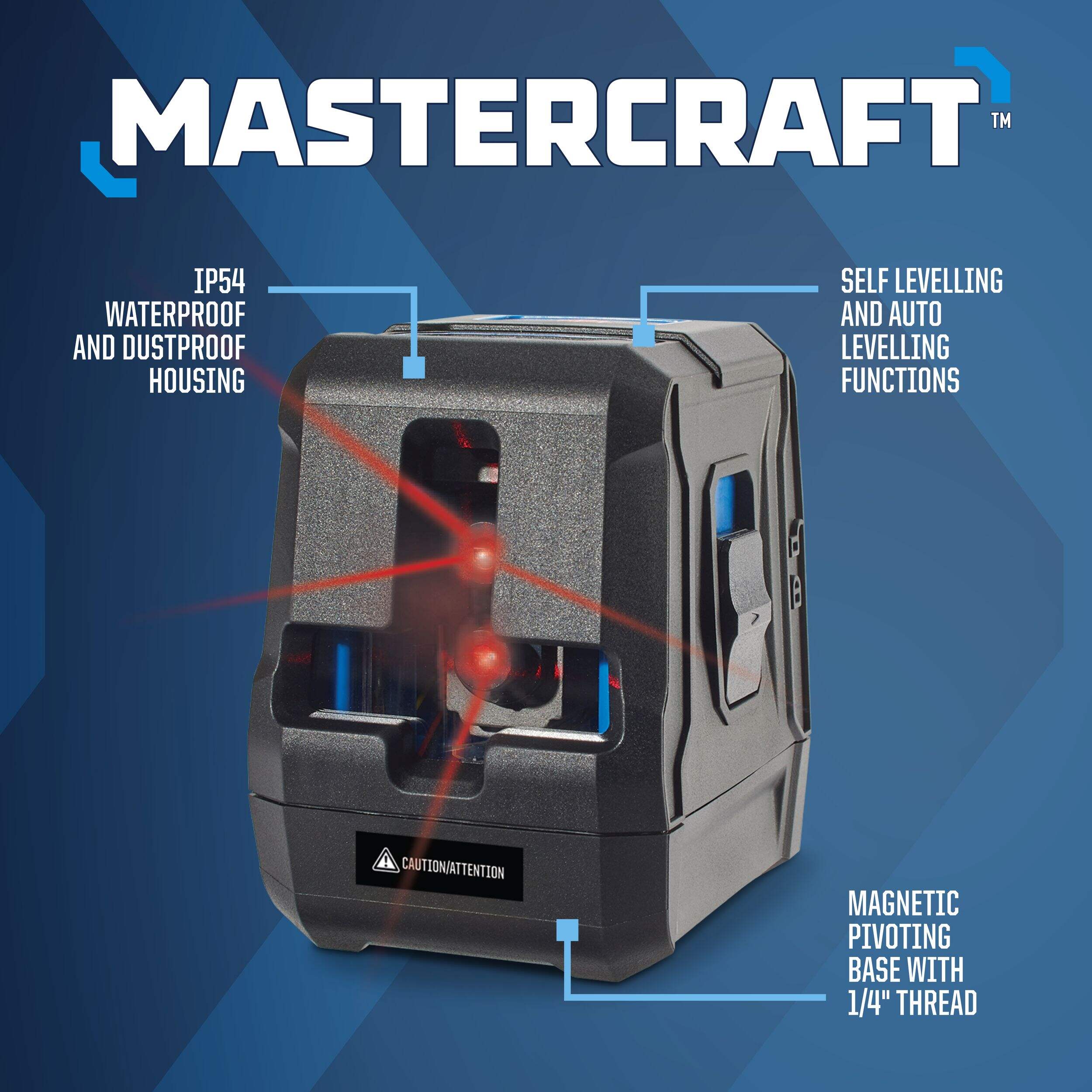 The Mastercraft Red Self-Levelling Cross Line Laser enhances the accuracy of your DIY and professional projects by automatically leveling lines for perfect alignment. Whether you’re setting tile, hanging pictures, or installing shelves, this laser tool projects bright horizontal, vertical, or crossed lines, making leveling tasks more efficient. Its compact, lightweight design and durable construction ensure you can rely on it for various tasks around the house.