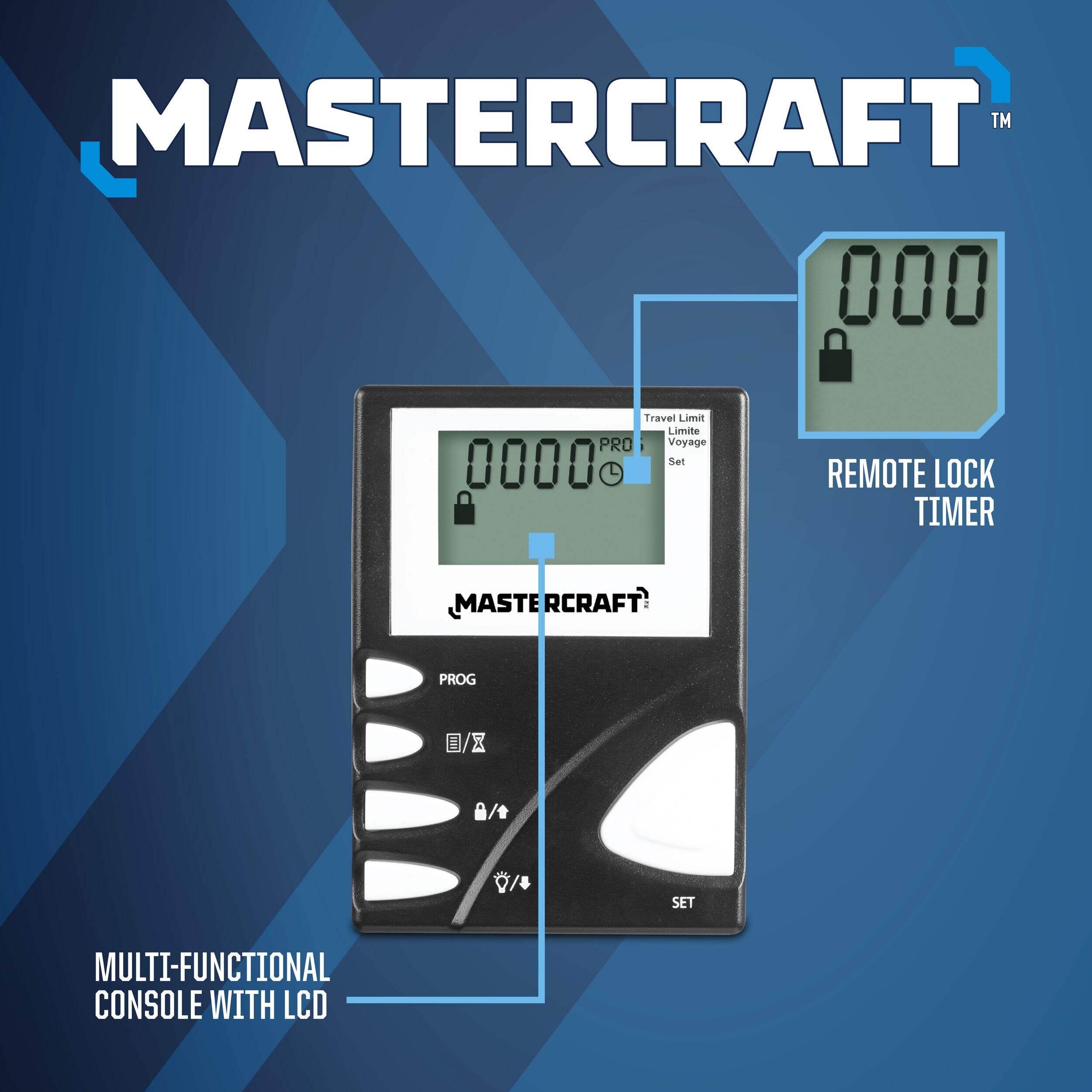 The Mastercraft Replacement LCD Wall Console Garage Door Opener is the ideal tool to conveniently operate your garage door from a neatly mounted wall console. This efficient product swiftly records the last 10 opening/closing cycles so you can track your usage. This Mastercraft garage door opener has a timer function that automatically closes the door after intervals of 3, 10 or 30 minutes. This wall garage door opener also displays opener diagnostics to identify technical issues.