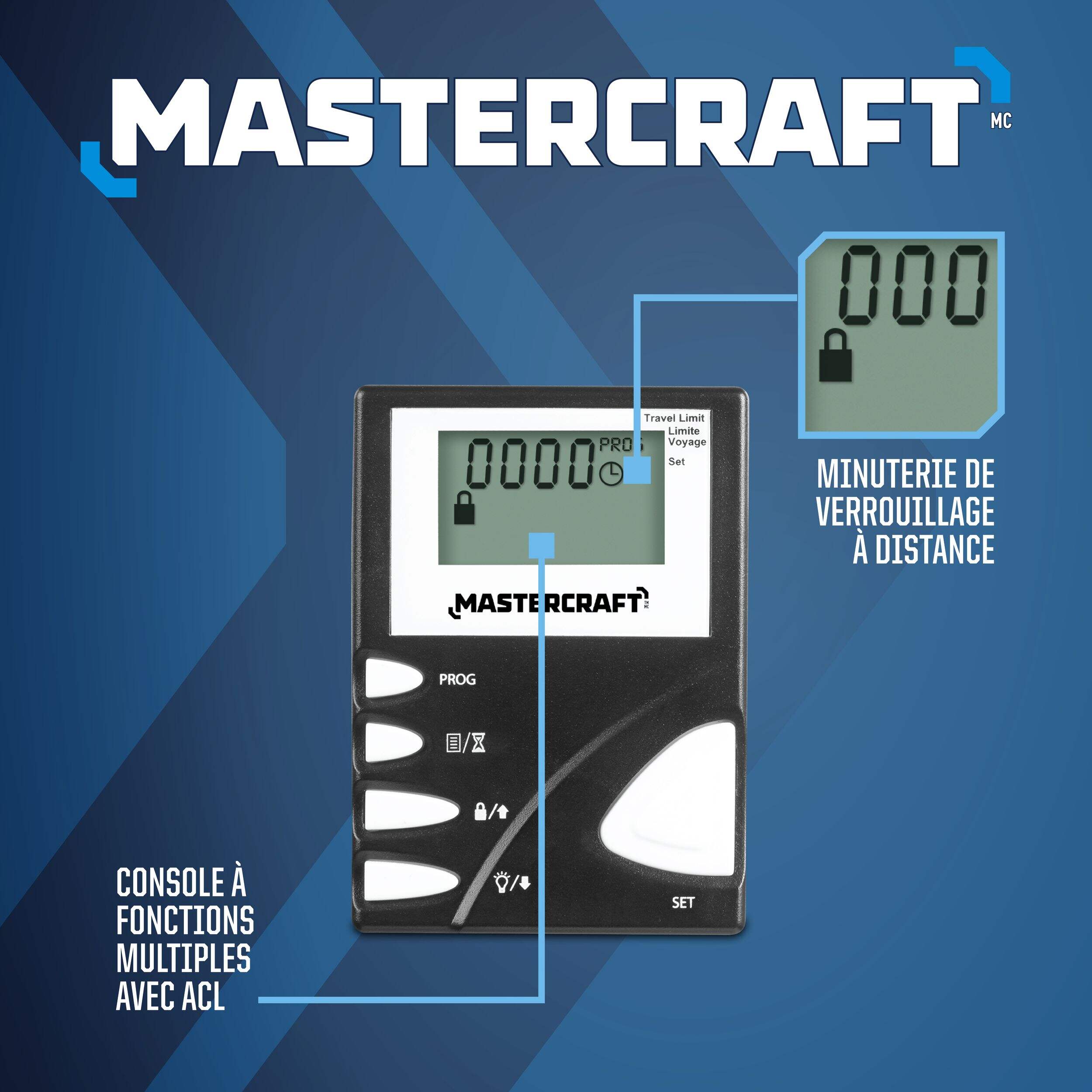 The efficient Mastercraft LCD Wall Console Garage Door Opener records the last 10 opening/closing cycles so you can track usage