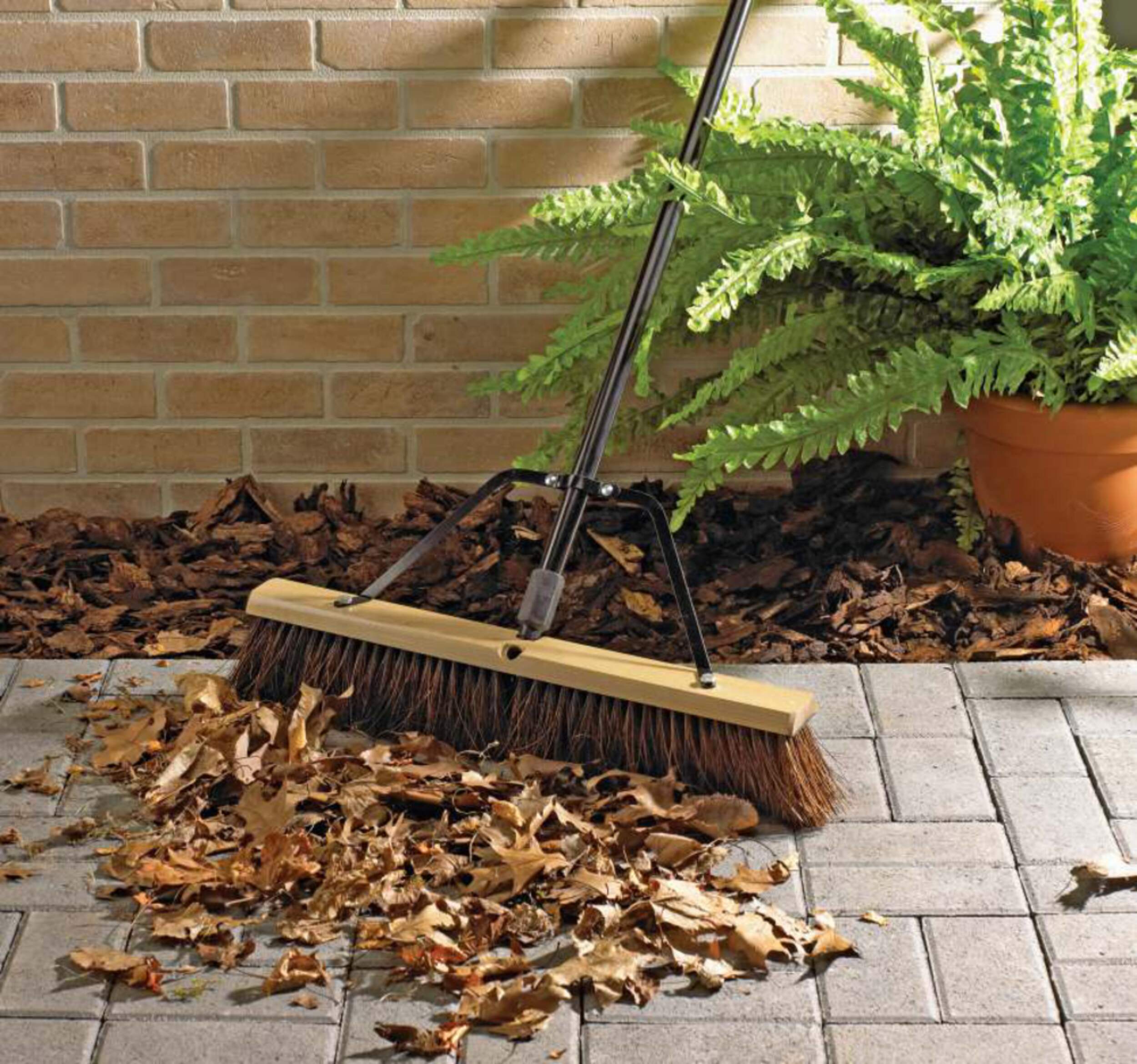 The versatile Mastercraft Rough-Surface Push Broom can handle messes both inside and outside the house. This push broom is perfect for sweeping large debris on rough surfaces, regardless of how wet. The broom is crafted with a steel handle for extra durability, while the foam grip is gentle on hands and reduces skin pinching and blisters. The broom’s mildew-resistant premium fibres take on dirt, crumbs, grit and particles with ease.