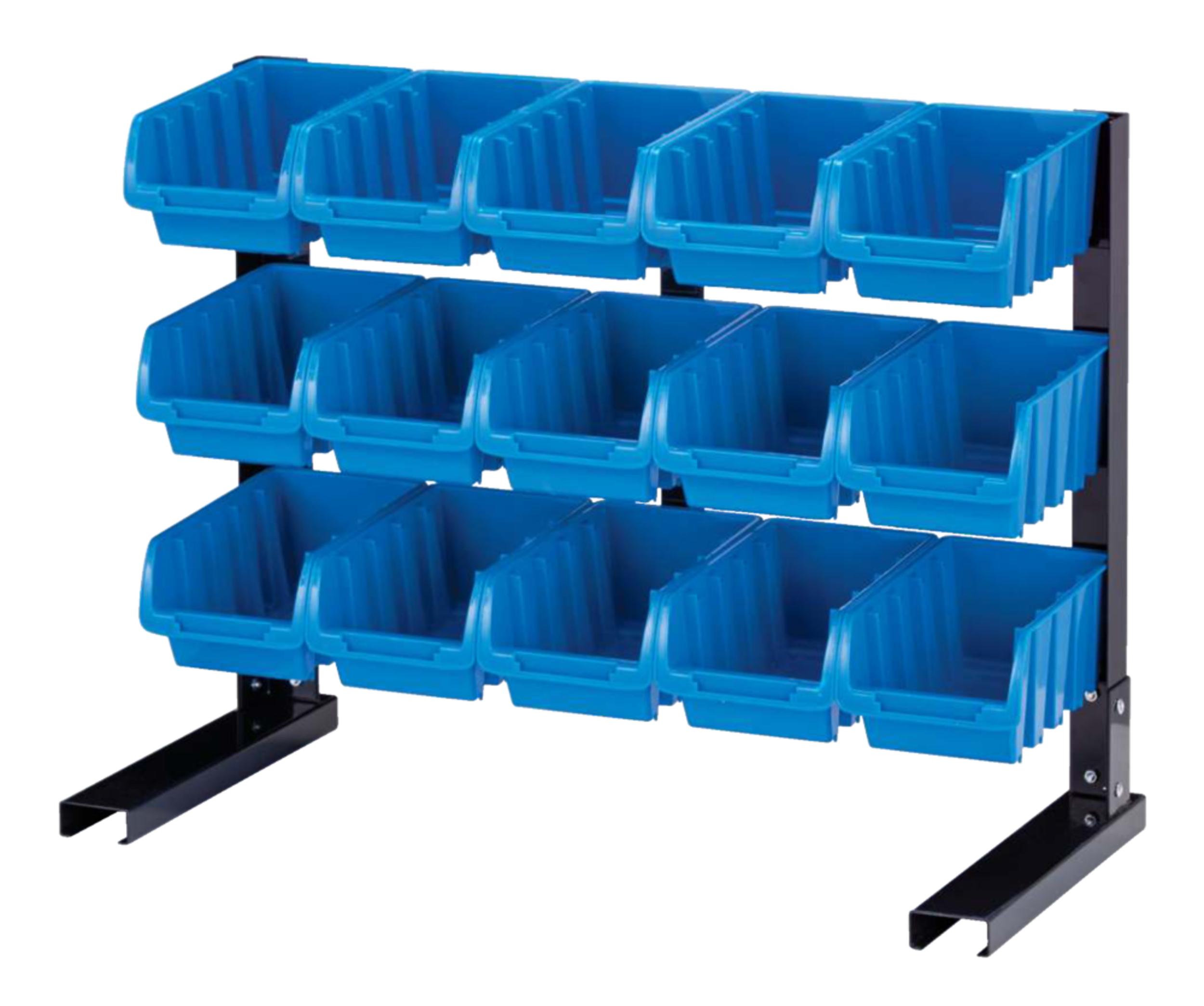 Effortlessly organize your workspace with the Mastercraft Single-Side 15-Bin Parts Rack. This compact rack is the ideal storage solution for a variety of tools, parts and accessories. Spacious and sturdy, this shelving rack features a convenient tabletop surface and additional storage space beneath the bins. Its durable construction ensures protection against scratches, corrosion, and other common forms of damage over time.