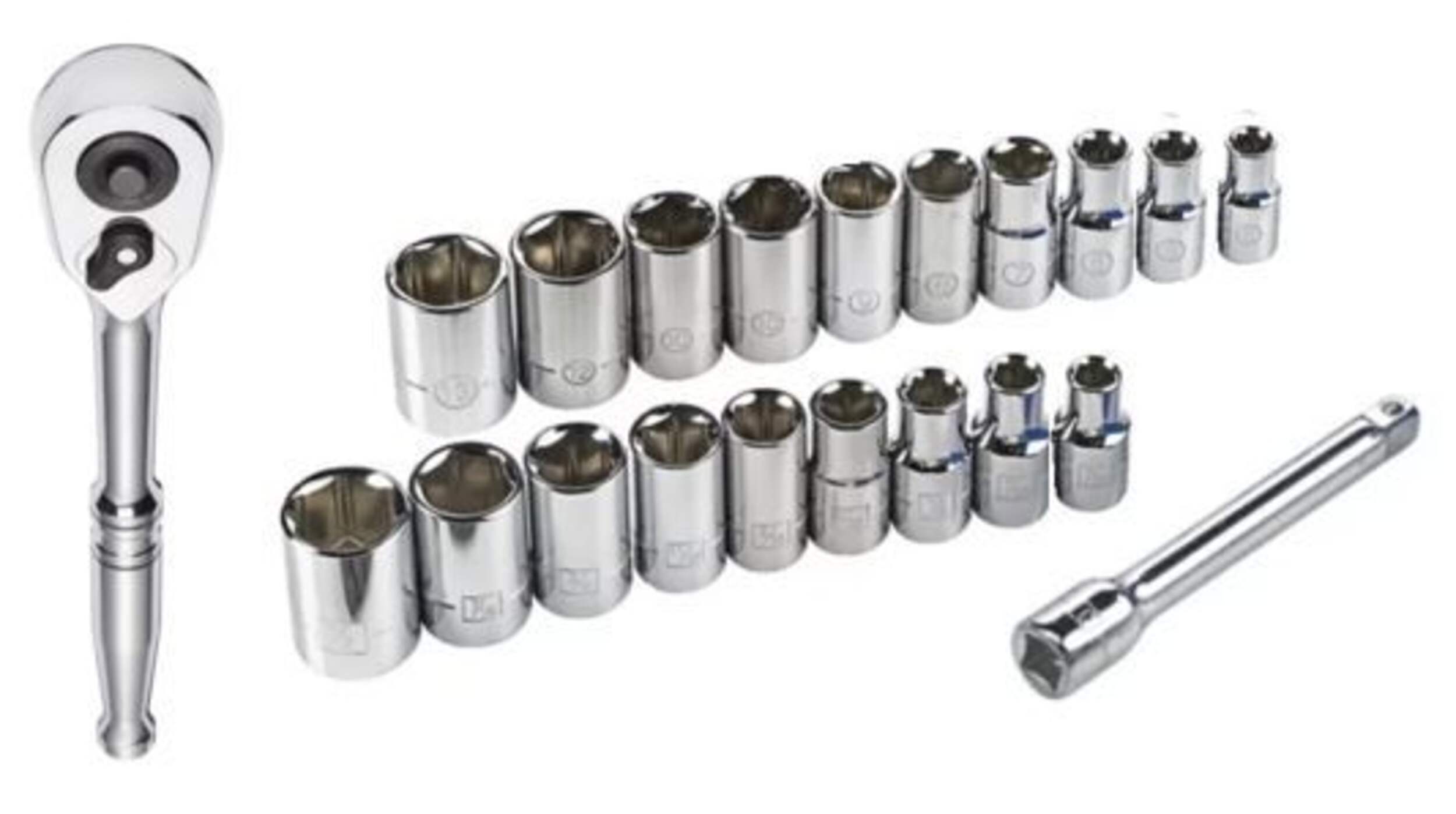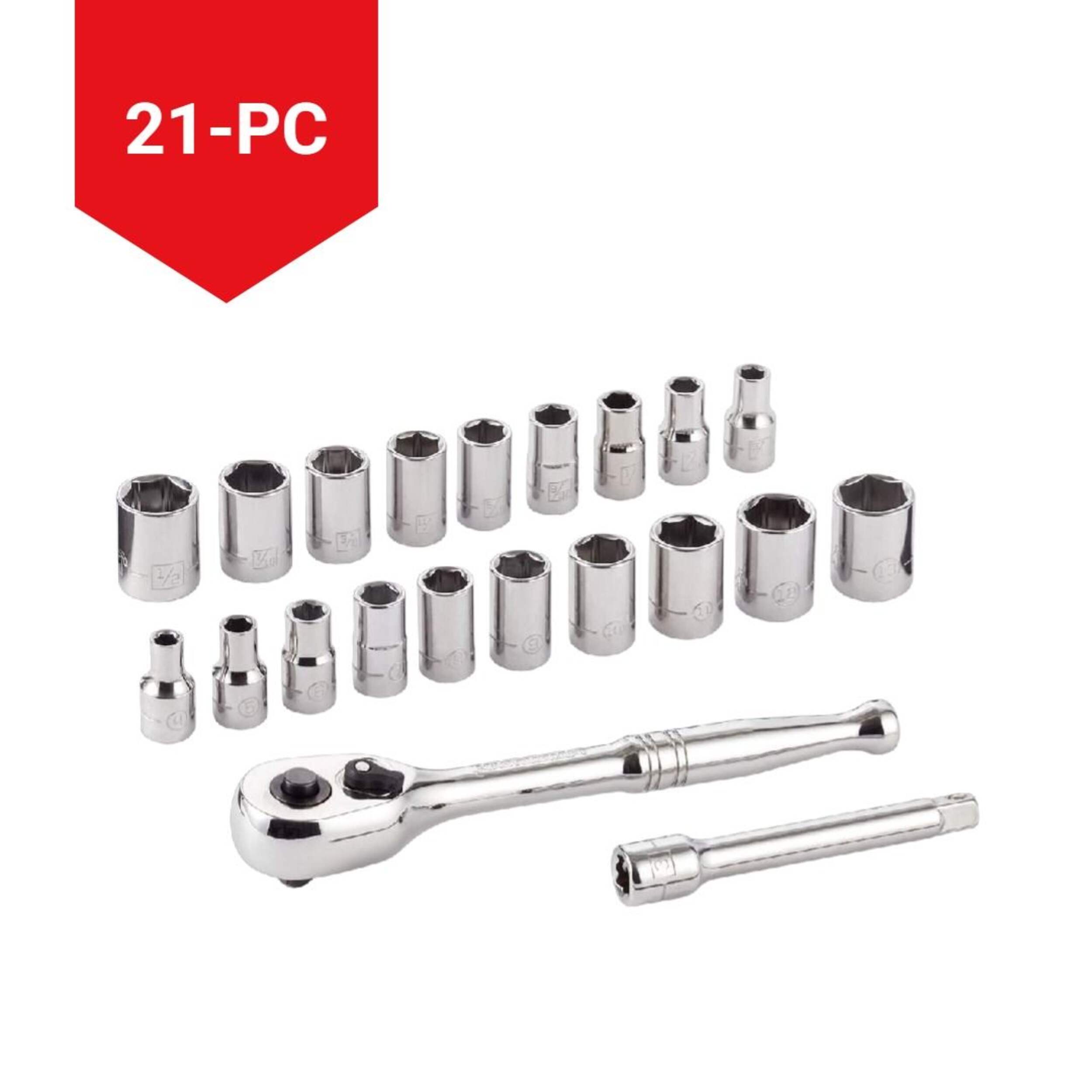 The Mastercraft Socket Set is a versatile 21-piece collection designed to meet all your fastening needs. Featuring both SAE and metric-marked sockets, this set ensures compatibility with a wide range of fasteners. Crafted from high-quality alloy steel, these sockets offer exceptional strength and durability for long-lasting performance. Ideal for both DIY enthusiasts and professional mechanics, this socket set is perfect for various tasks around the home, garage, or workshop.