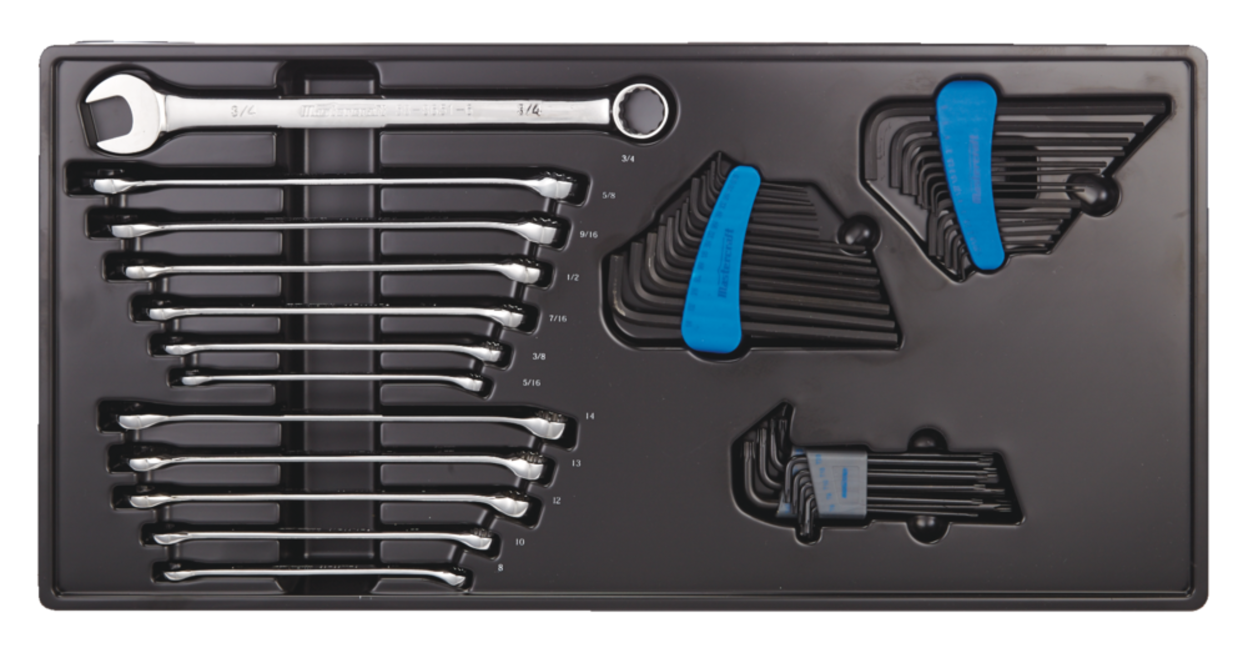 Components are packed in 5 plastic trays that are designed to fit in a metal tool chest