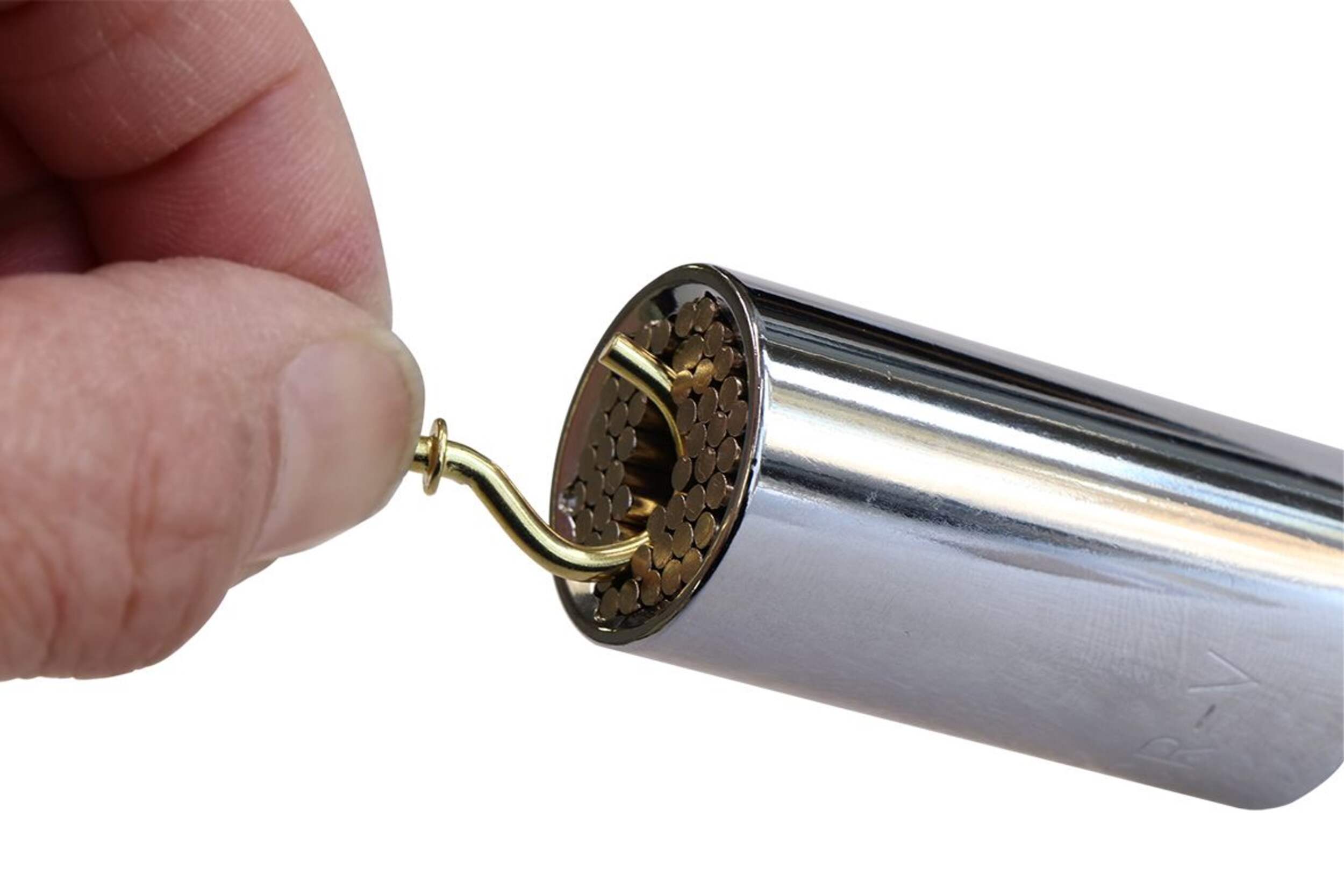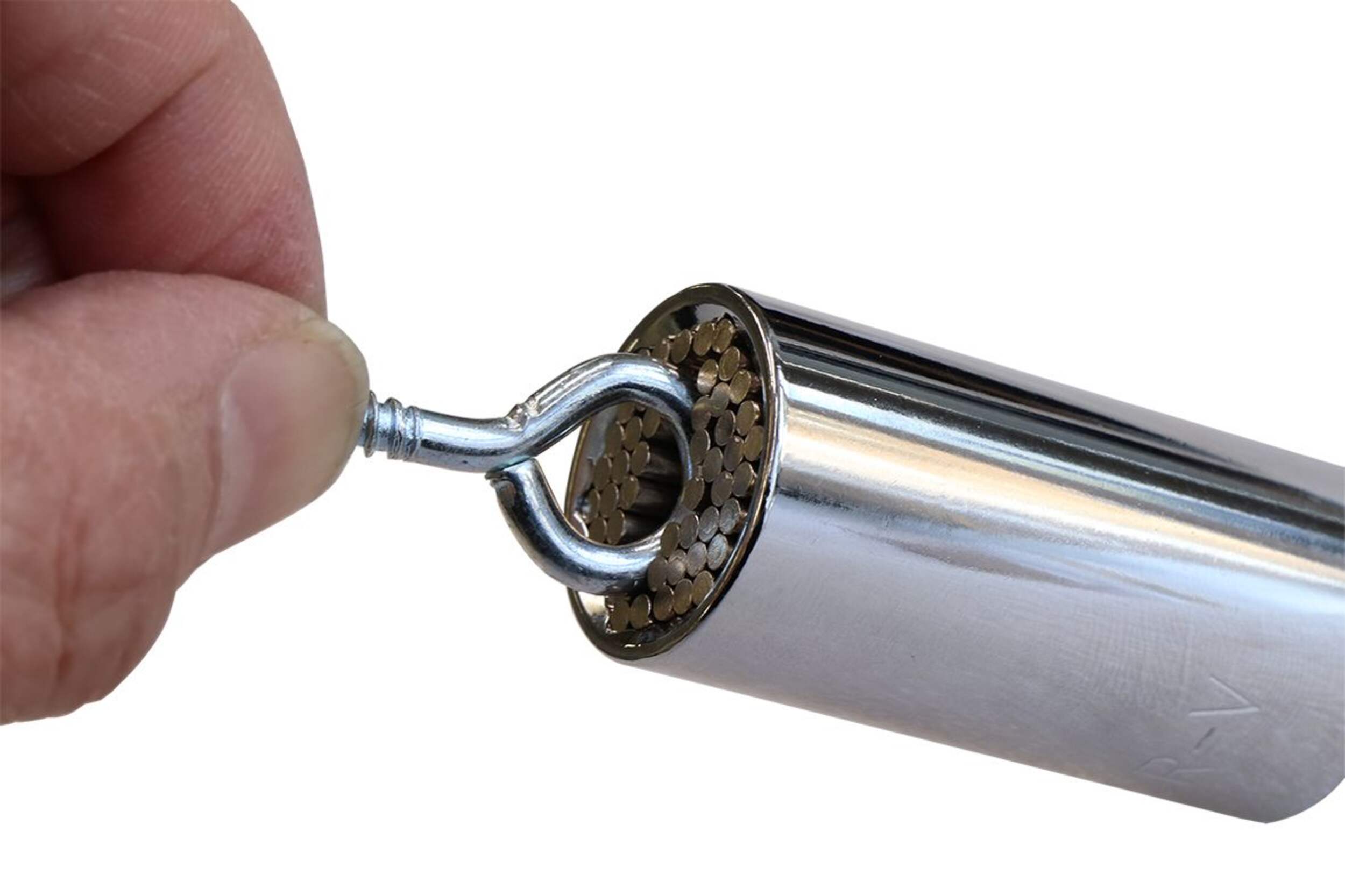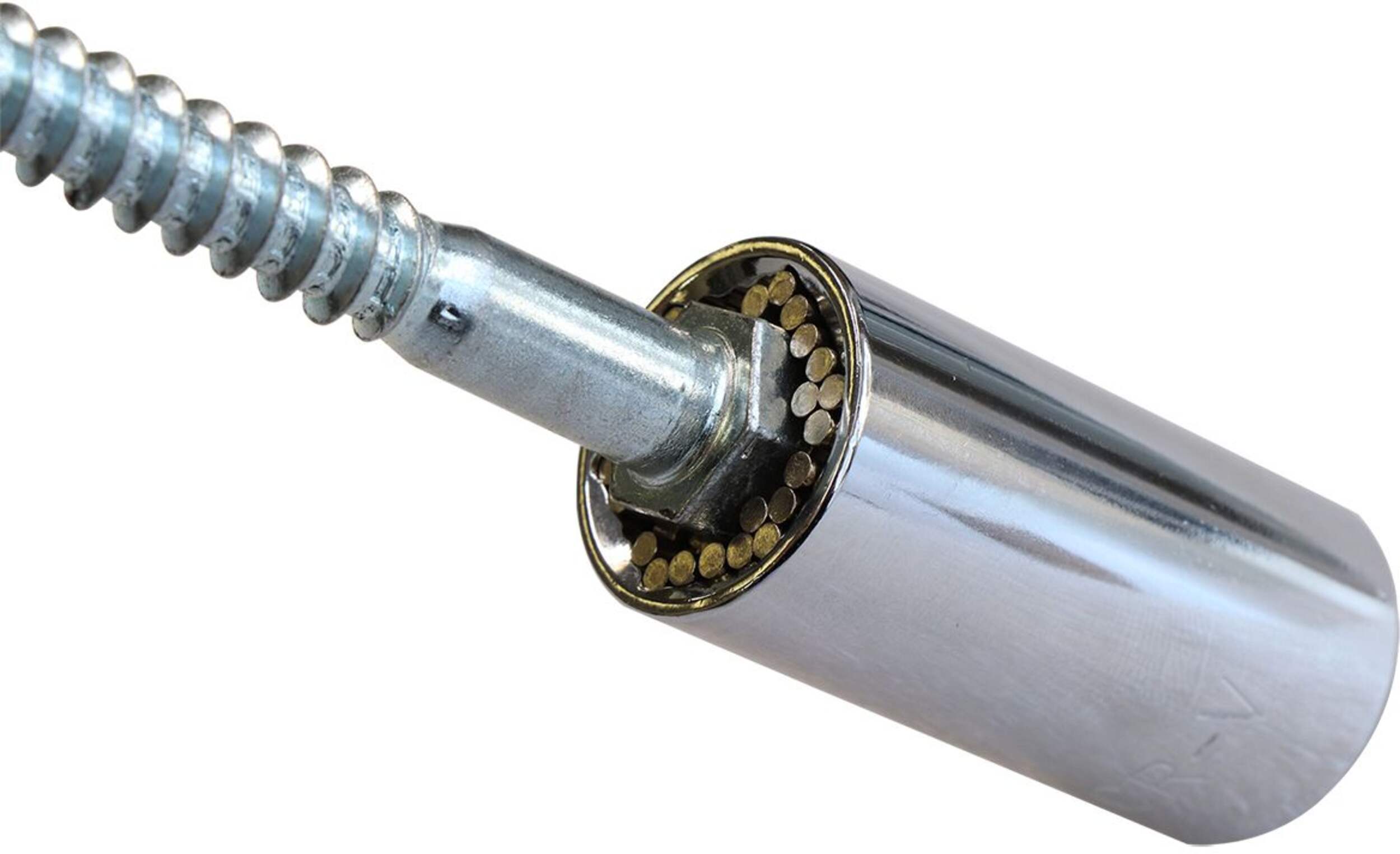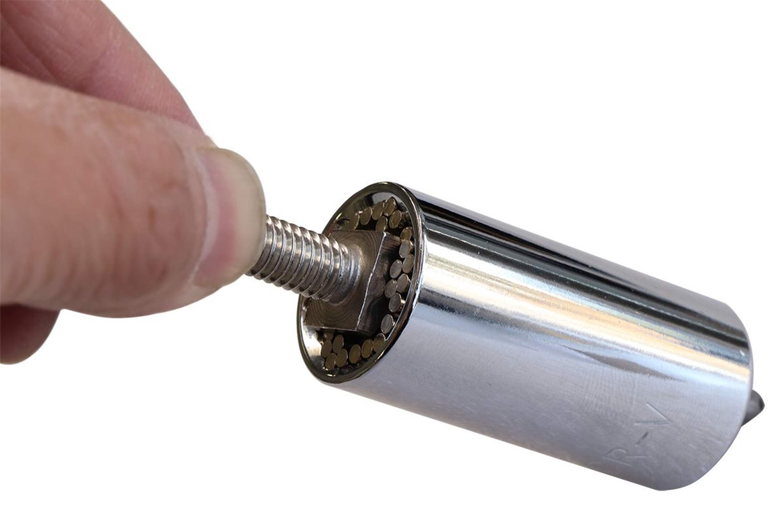 Features hardened steel pins that automatically adjust to fit any size or shape of fastener