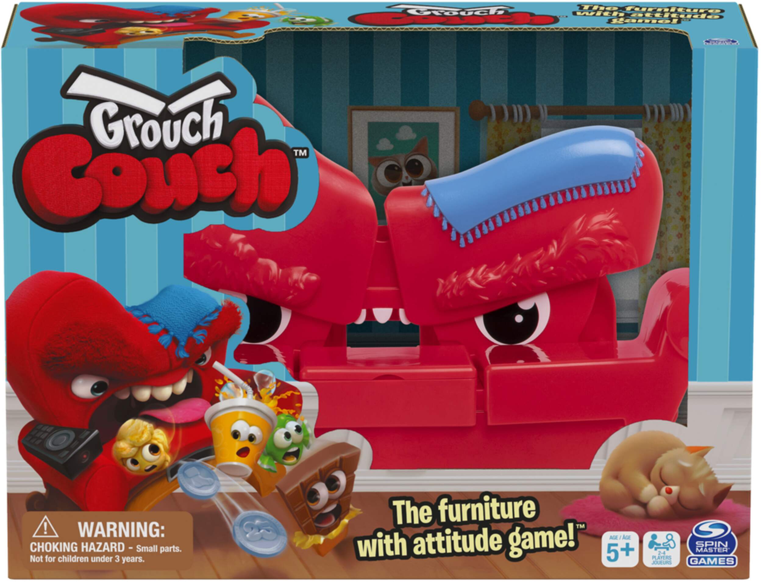 Ever wonder what happens to those little items that go missing? Now’s your chance to find out and maybe get some things back when Grouch Couch spits out Lost Goodies! Take turns feeding Grouch Couch all kinds of tasty treats. Then press the remote-control and see what happens. He might grumble, chomp, burp and (hopefully) eat your treats! When he does, he’ll spit out Lost Goodies. You’ll want to collect these because the player with the most Lost Goodies when Grouch Couch plays his victory song, wins!