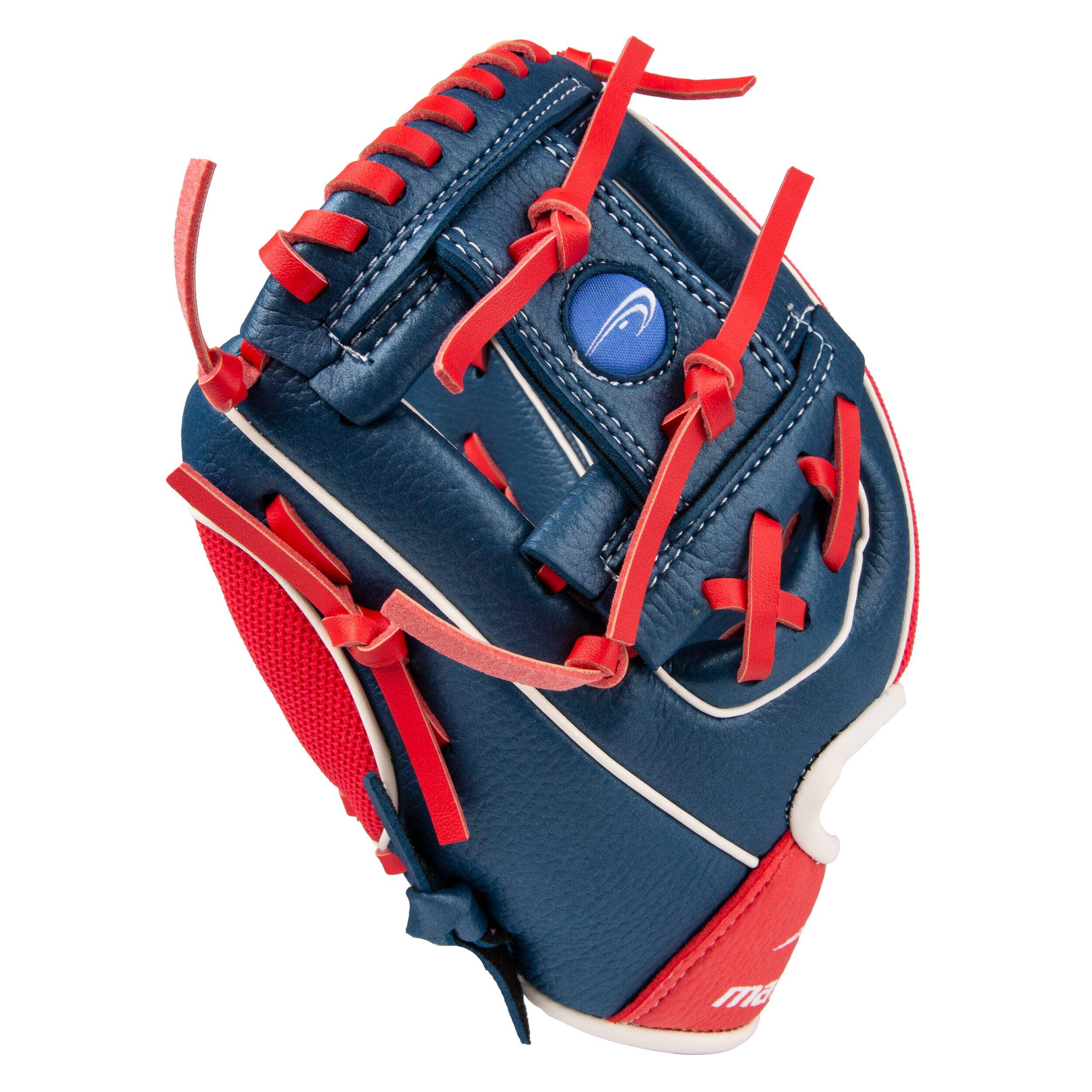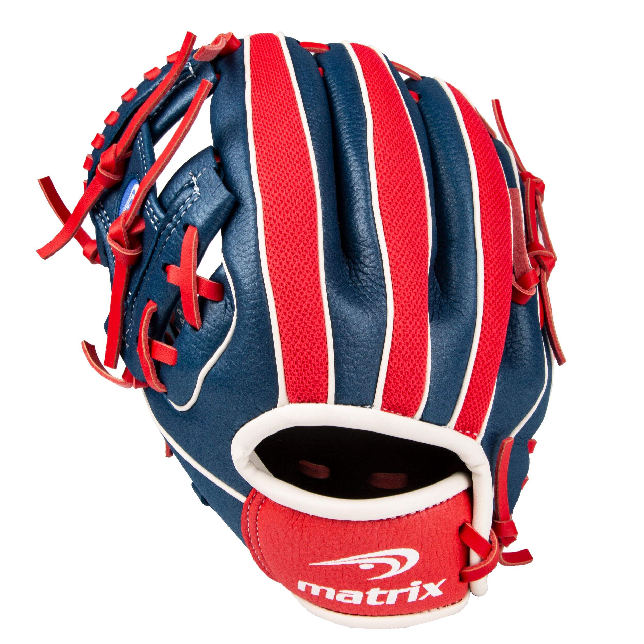 The Matrix Youth Fielding Glove is the perfect way for young players to start their baseball catching careers. This lightweight, 9-inch, left-hand throw glove features an easy-to-close shell that provides beginners with effortless control on the field. The soft, pliable material ensures easy catches and minimal break-in time. With its stylish blue and red design, this fielding glove is the ideal mix of form and function. The glove's lightweight EVA and polyester construction gives young players the confidence to make great plays right from the start.