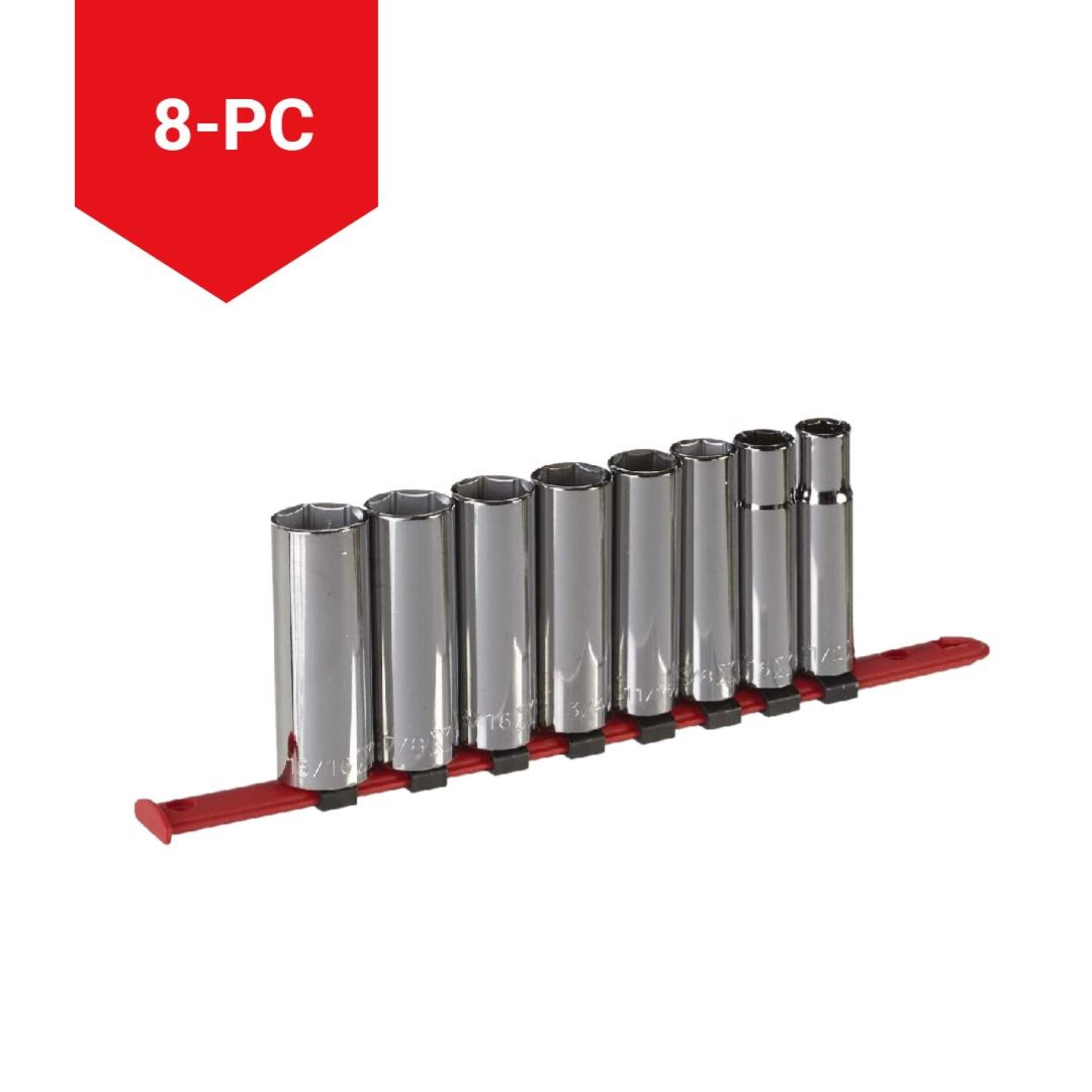 8-piece set includes: 1/2, 9/16, 5/8, 11/16, 3/4, 13/16, 7/8, 15/16"
