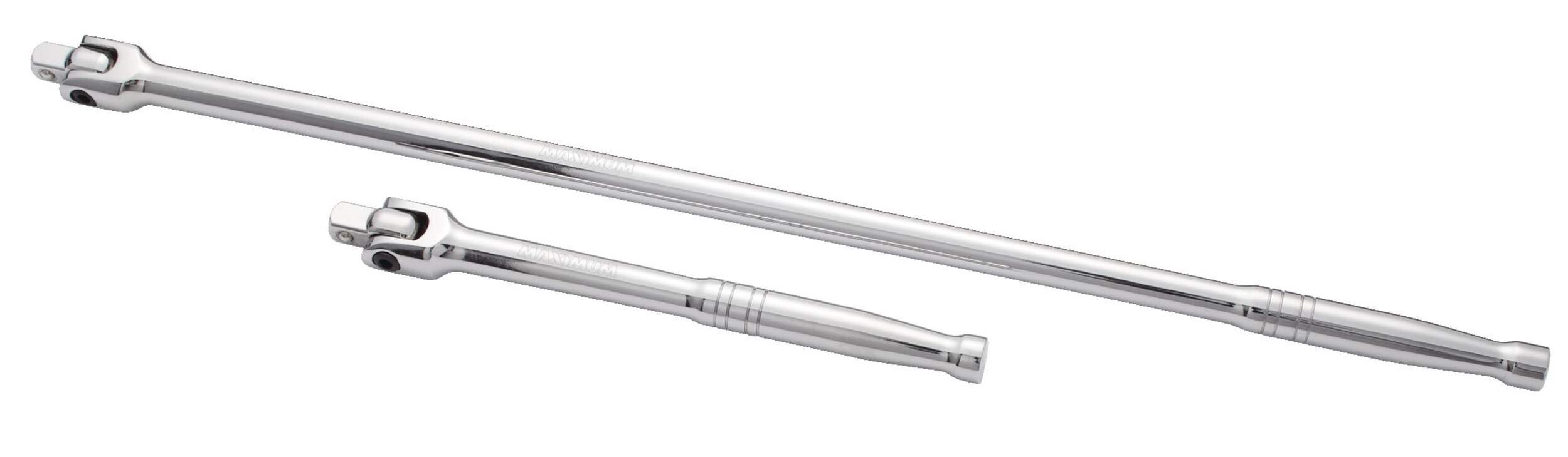 Includes a 10" and 24" (25.4 and 61 cm) 1/2"-drive flex-head breaker bar