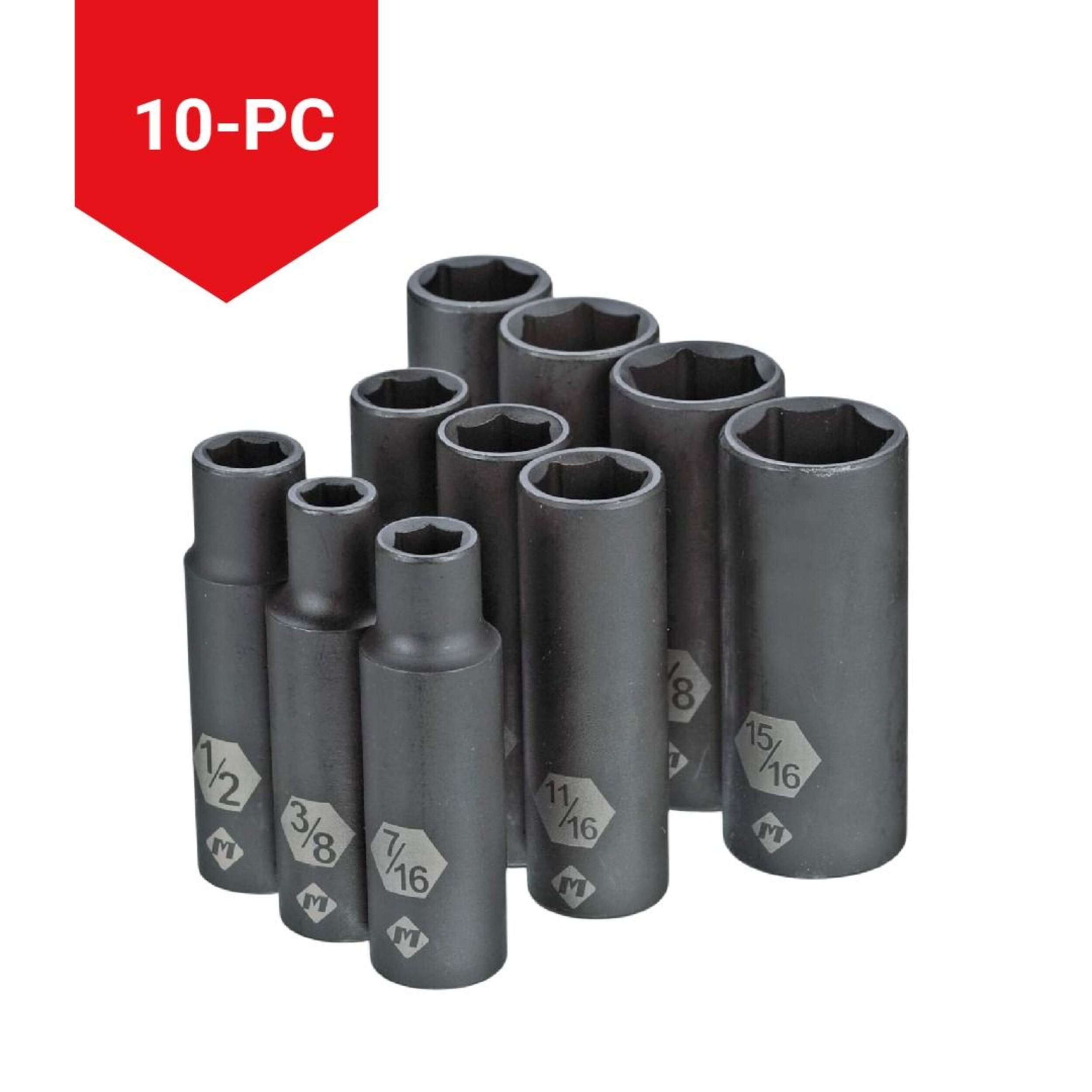 The MAXIMUM 1/2-in Drive Deep Impact Socket Set is perfect for tackling challenging fasteners located in recessed areas. Crafted from special alloy steel with a black matte finish, the sockets are built to withstand heavy-duty use and resist corrosion. The set comes organized on a clip-rail for easy portability and quick access, making it an essential addition to your toolkit for both professional and DIY applications.