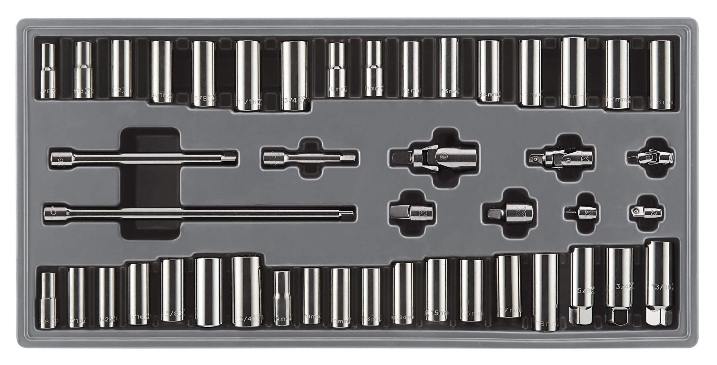 MAXIMUM 1/4-in, 3/8-in and 1/2-in Drive Socket Set feature tools in a variety of sizes that meet the needs of different jobs