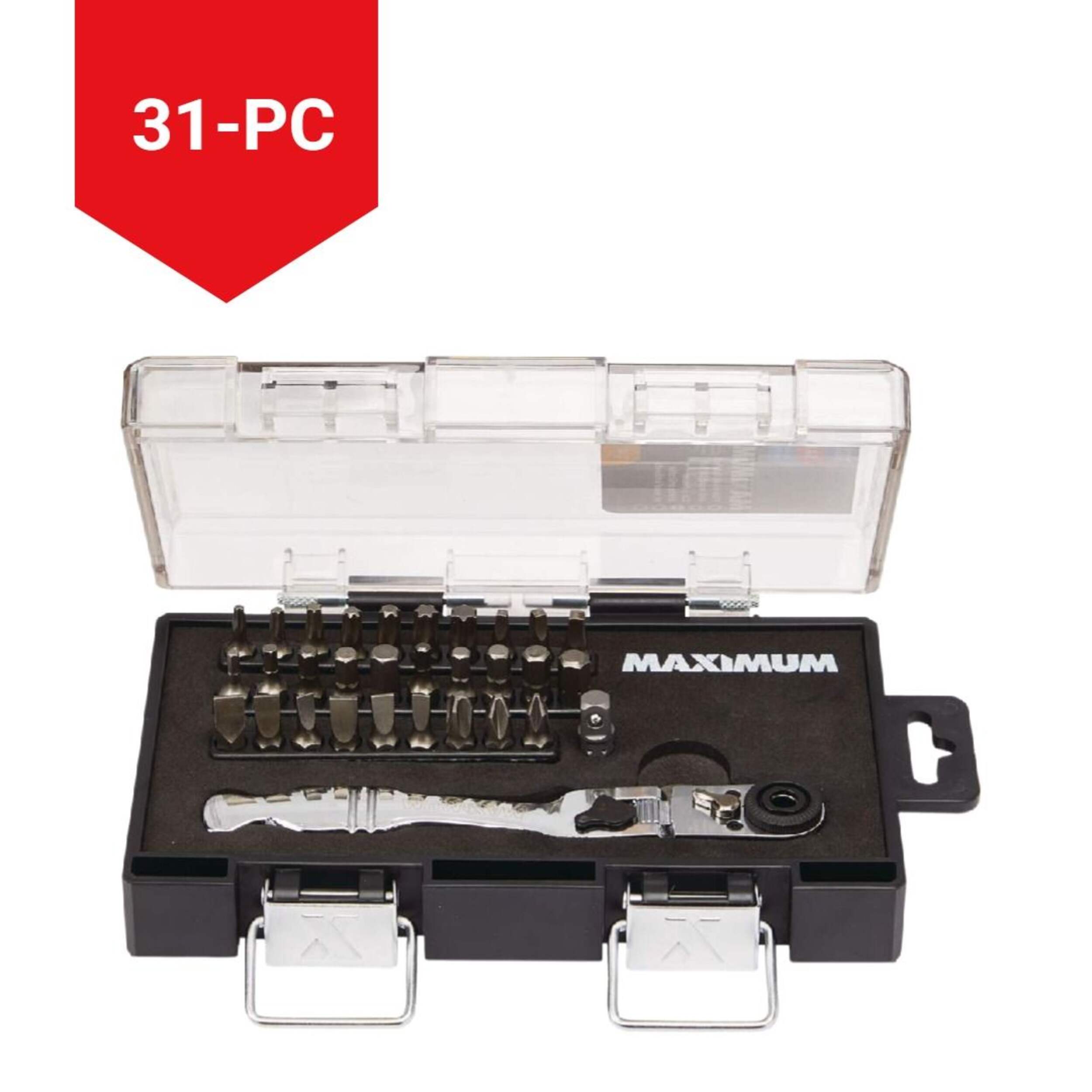 The MAXIMUM 1/4-in Drive Ratchet & Bit Set is built for versatility and durability, making it ideal for a wide range of tasks. Perfect for reaching fasteners in tight spaces, this convenient set ensures precision and ease during household repairs. With its reliable performance and portable carrying case, it’s a valuable and practical set for both professionals and DIY enthusiasts alike to have on hand.