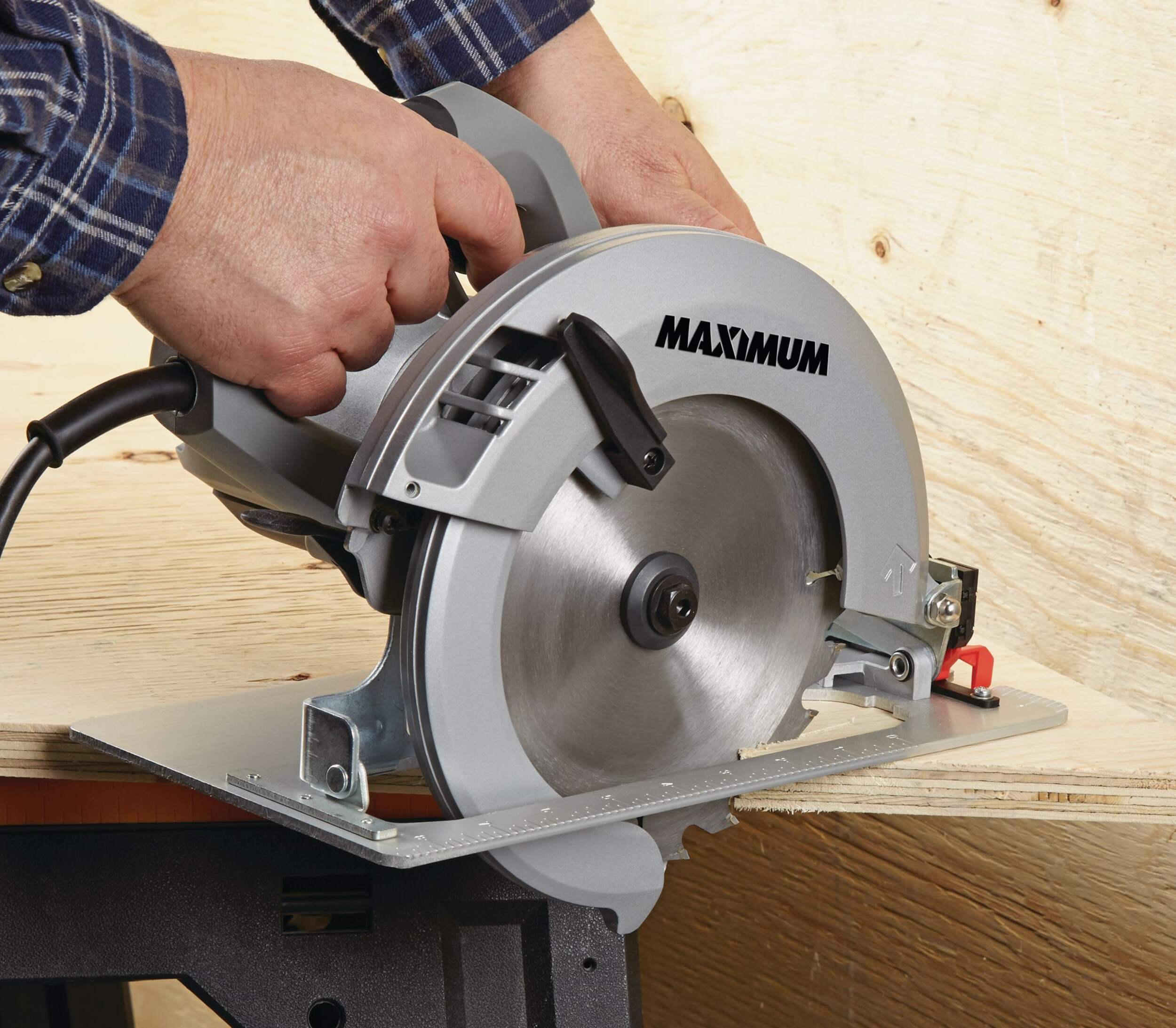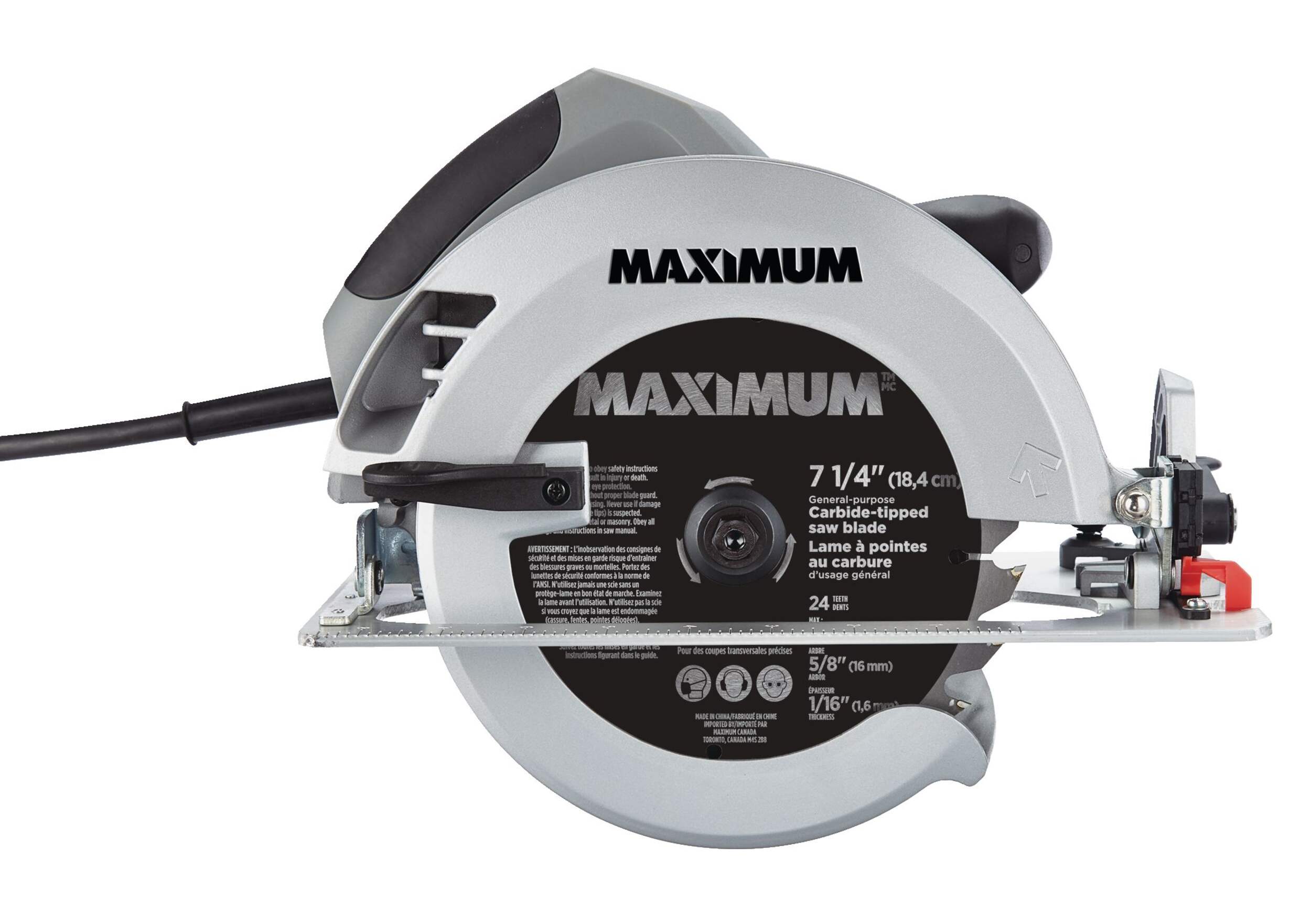 The MAXIMUM 15A Circular Saw is designed for exceptional cutting performance with a powerful circular saw motor that produces 5000 RPM. The saw’s lightweight design, at just 9 lb 8 oz (4.3 kg), features an aluminum base for strength and durability. The oil-resistant, cold-weather SJOW power cord and soft grip handle enhance versatility and control, making this tool a reliable choice for any cutting project.