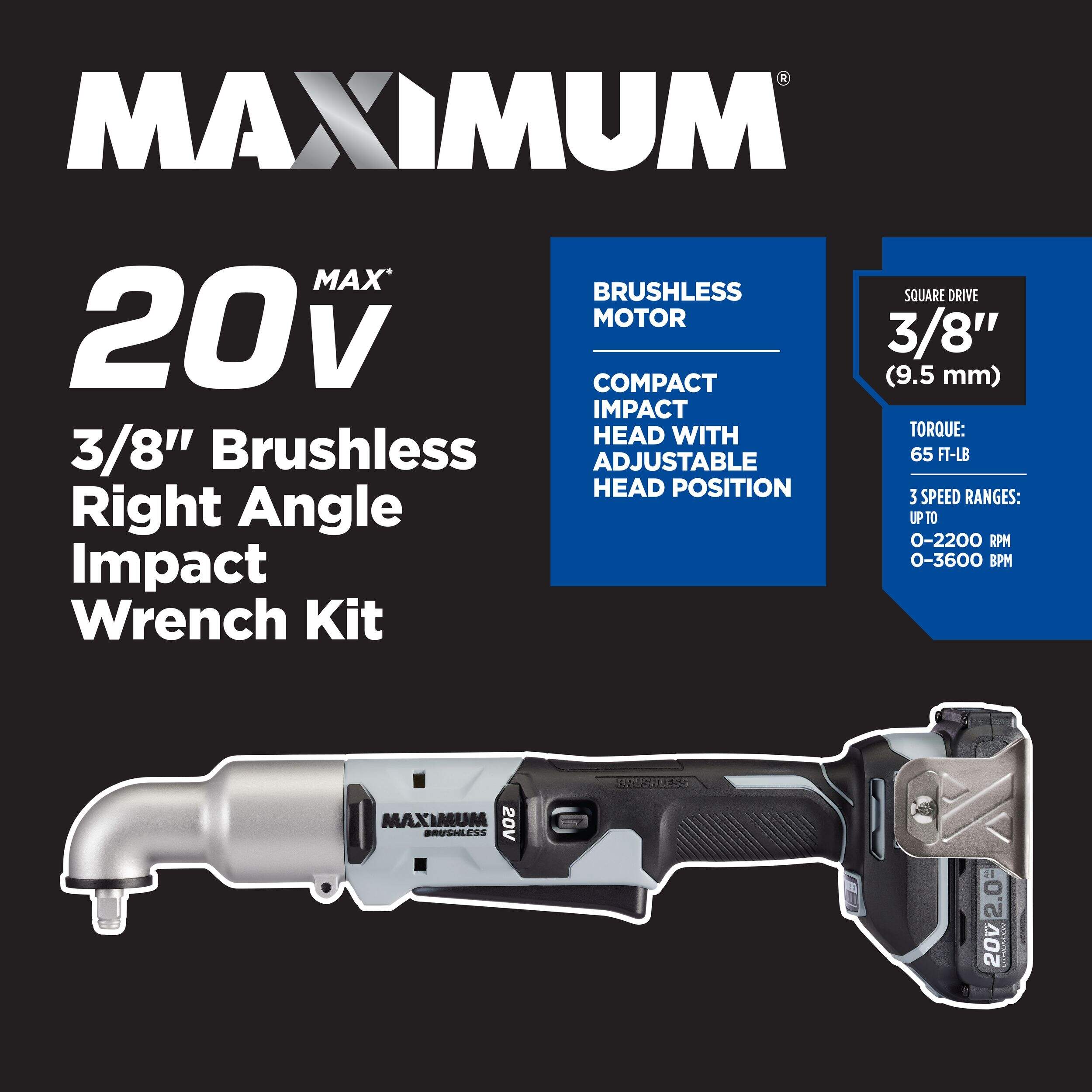 When you're dealing with stubborn bolts in tight spaces, reach for the MAXIMUM 20V Right Angle Impact Wrench. This ultra-compact power tool features powerful torque and variable speeds. The right angle wrench accesses the tightest spots, so you can get the job done easily. Whether you're a professional mechanic or a weekend DIYer, this impact wrench is designed to deliver the long lasting power you need.