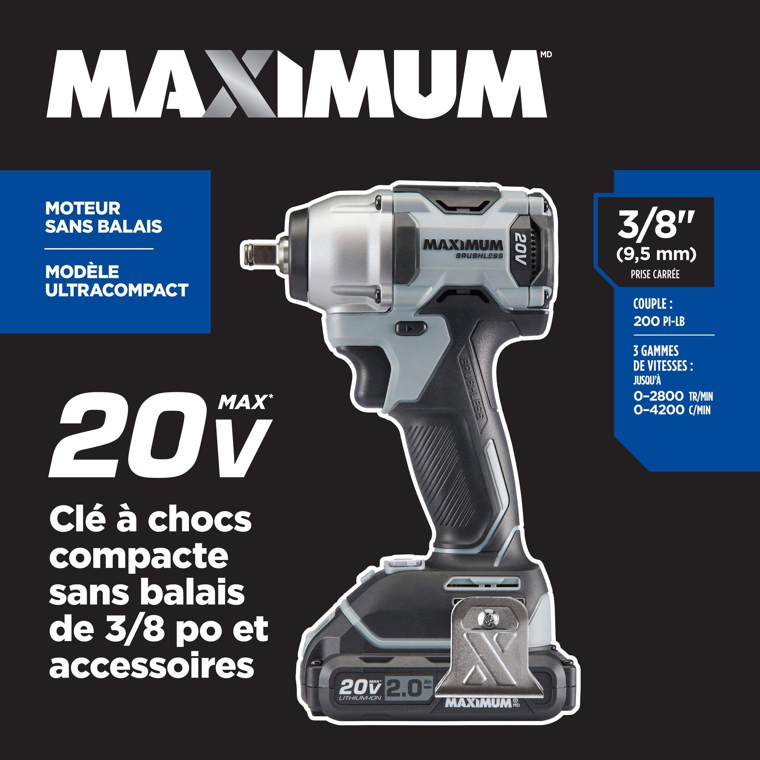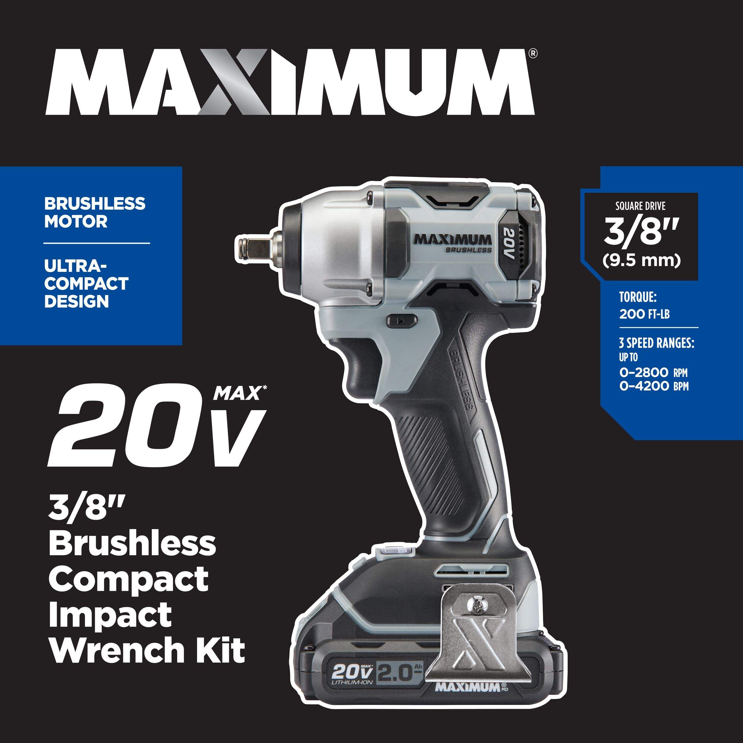 Handle any project around the house with the power of this MAXIMUM 3/8-in Brushless Compact Impact Wrench. Ultra-compact yet powerful, this impact wrench delivers long run times, and 3 convenient speeds that easily adjust to different tasks like removing lug nuts or driving deck screws. With an ergonomic design that’s easy to grip, this compact impact wrench combines power and convenience in a small package.