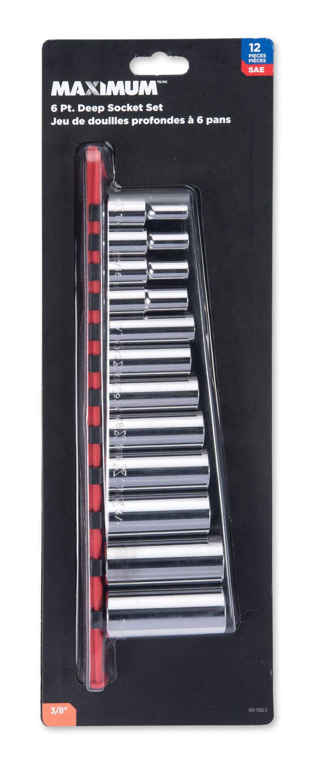 Designed with durable alloy steel and finished with nickel and chrome plating, the MAXIMUM 3/8-in Drive Deep Socket Set, SAE ensures long-lasting use. This socket set is heat treated for extra strength, ensuring the job gets done easily. It features 6-point sockets for an enhanced grip and is built with an extended length to help access nooks and crannies. This reliable set can effortlessly withstand force in different environments.