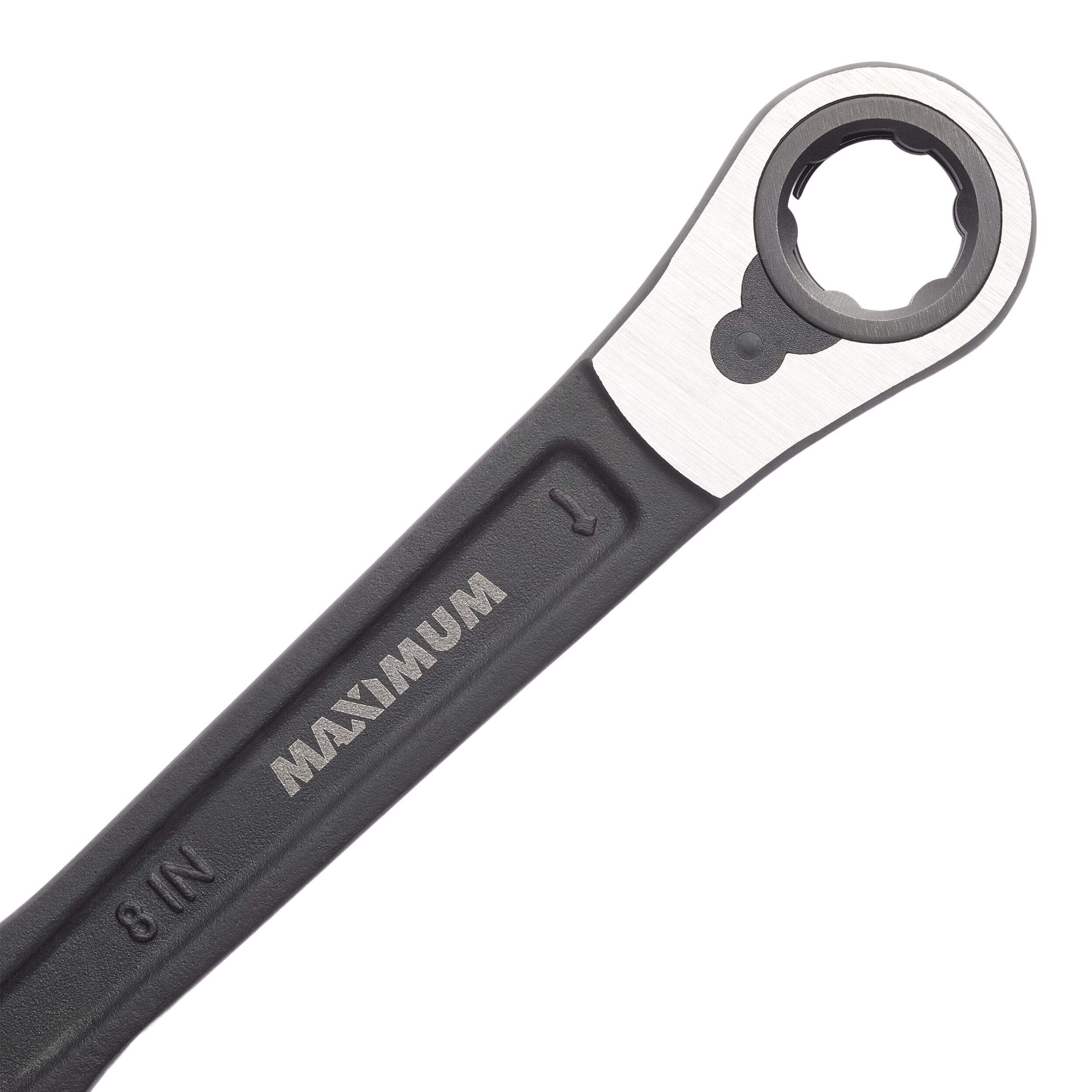 Multi-fit design box end works on 6 different types of fasteners (6-point, 12-point, e-torx, square, 6-point partially rounded, spline)