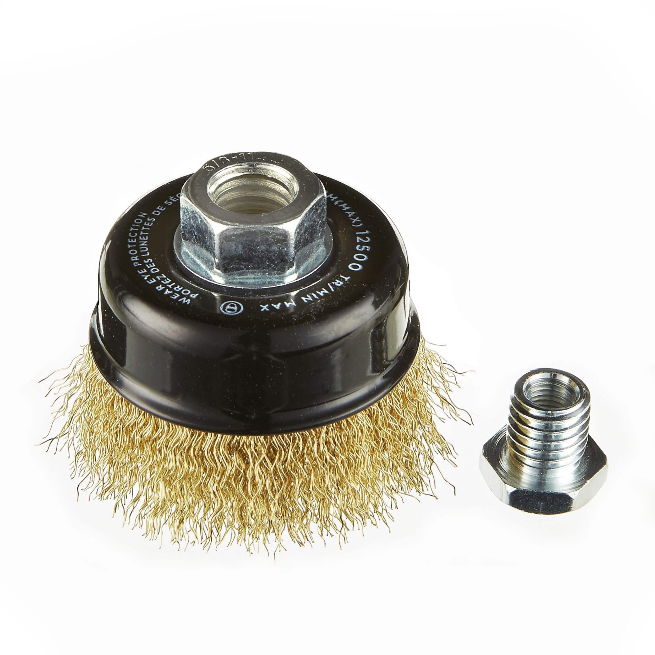 Take on tough tasks such as rust and burr removal with the MAXIMUM Industrial Crimped Cup Brush. These wire cup brushes feature fine bristles that work great on both flat surfaces and edges. This cup brush can be used on any angle grinder with a 5/8"-11 or M10 arbour, and has a max RPM of 12,500.