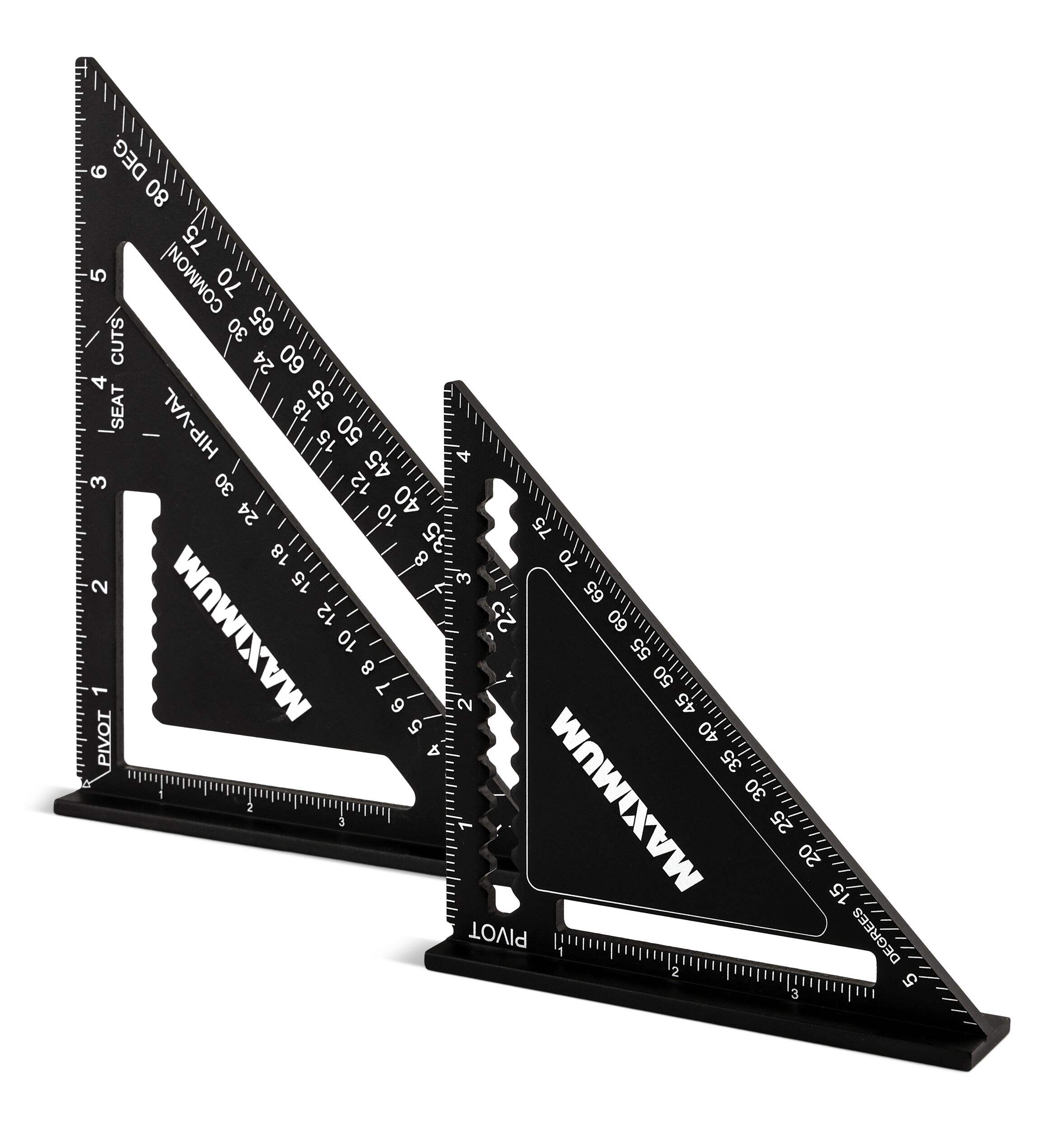 This MAXIMUM Aluminum Squares Set is designed for accuracy and durability, making it perfect for carpentry, construction, and home improvement projects. Made from sturdy, lightweight aluminum, these squares provide excellent resistance to rust and wear. With precision-machined edges and clear laser-etched markings, they offer reliable performance for marking, measuring, and verifying angles as you work.