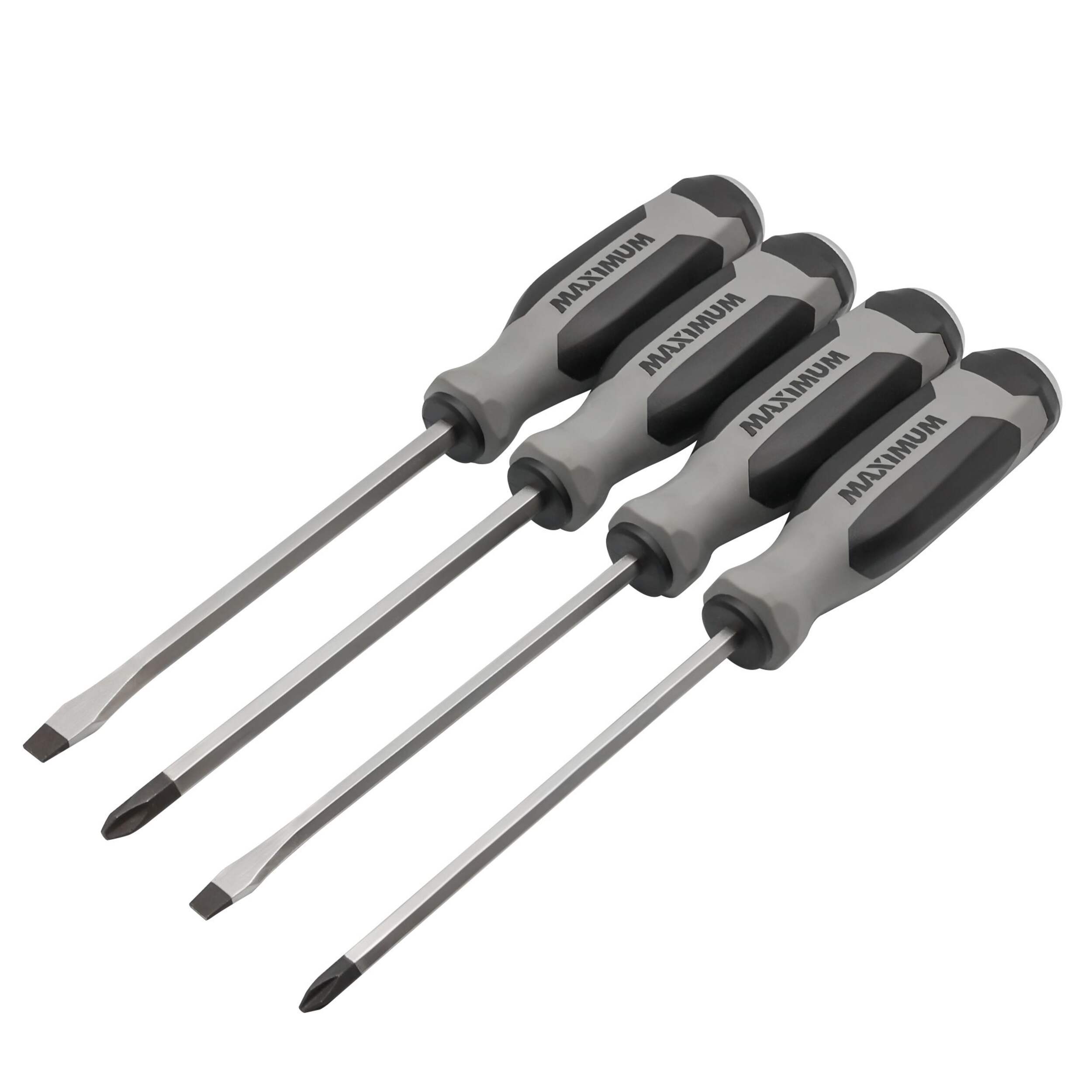 Tough jobs call for rugged tools like the MAXIMUM Go Through Blade Demo Driver Set, 4-pc. This demolition screwdriver set contains pieces with increased resilience compared to standard screwdrivers. Full-length, one-piece blade design allows each of the included demo screwdrivers to withstand the impact of a hammer.