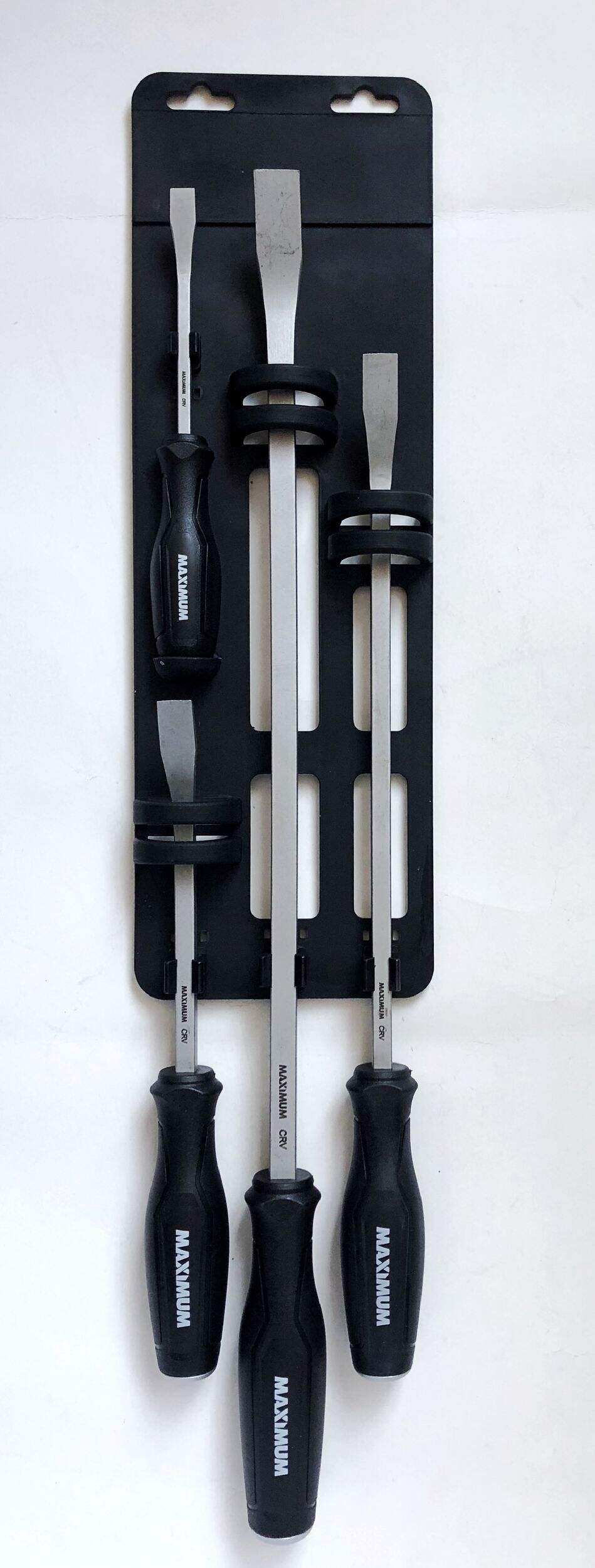 This handy MAXIMUM Pry Bar Set comes with a variety of useful tools, so you can take on almost any project from demolition jobs to carpentry tasks. Each flat pry bar in this set features a full-length steel core to deliver better strength and durability than a standard pry bar. With its long handle, these pry bars also offer improved grip for easy and comfortable use. Versatile, durable and easy to use, this pry bar set is a worthy addition to any tool chest.
