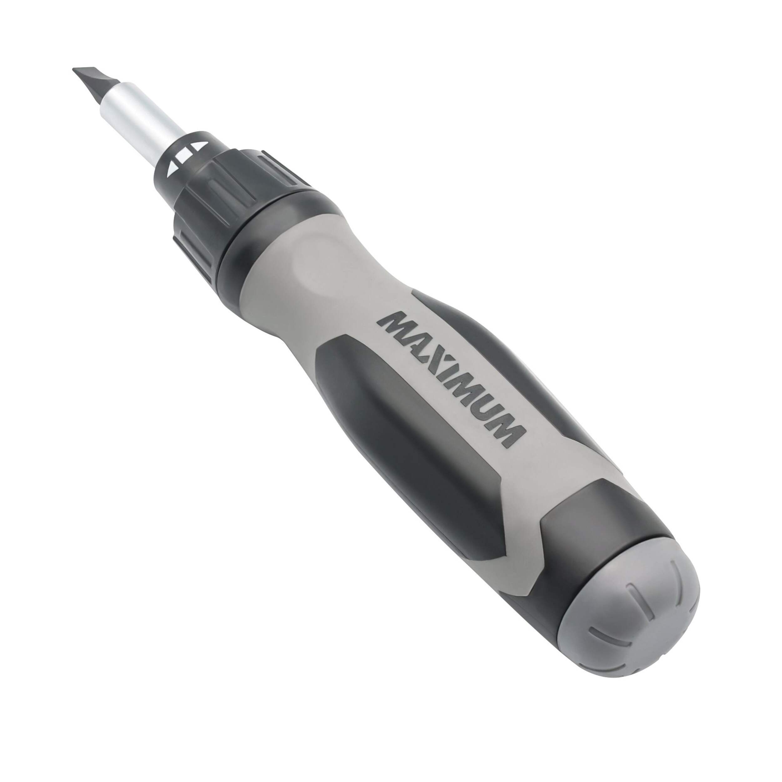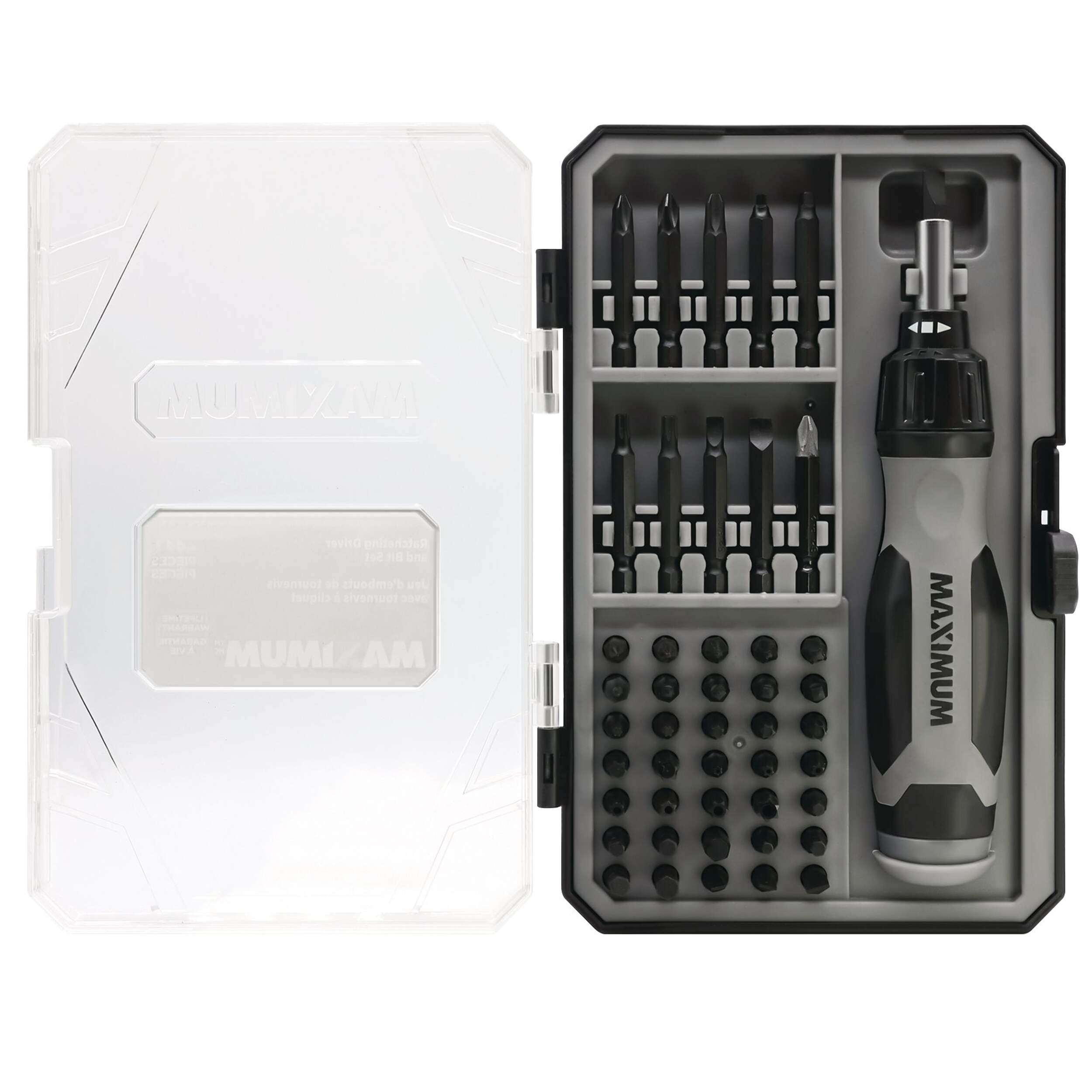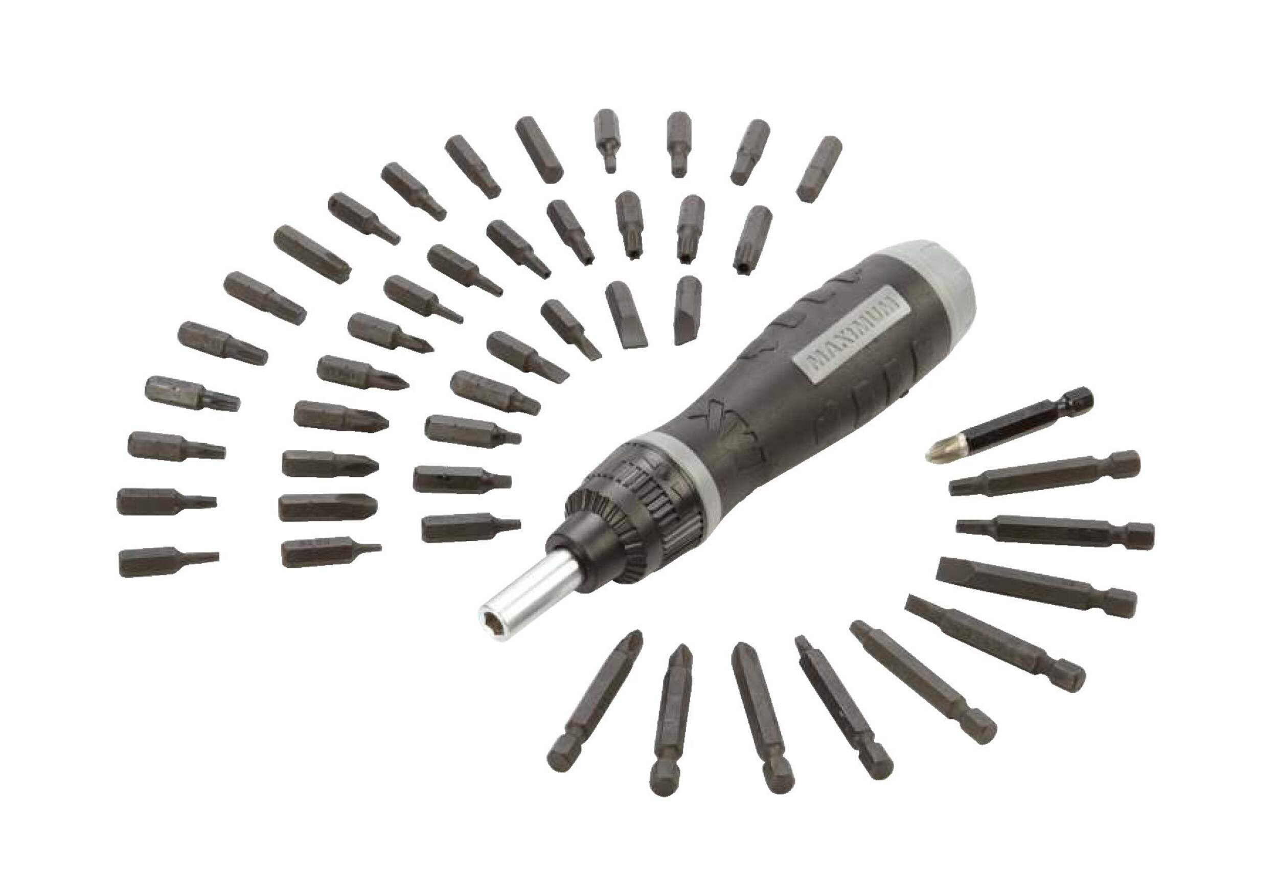 Make sure you're equipped for a variety of projects with the MAXIMUM Ratcheting Screwdriver Set. Durable and versatile, the screwdriver kit features S2 shock-resistant alloy steel bits with a black oxide coating to protect against corrosion. The ratcheting driver includes integrated bit storage for added convenience. With dozens of bits to choose from, you’re sure to find the one you need for any DIY or workplace challenge.