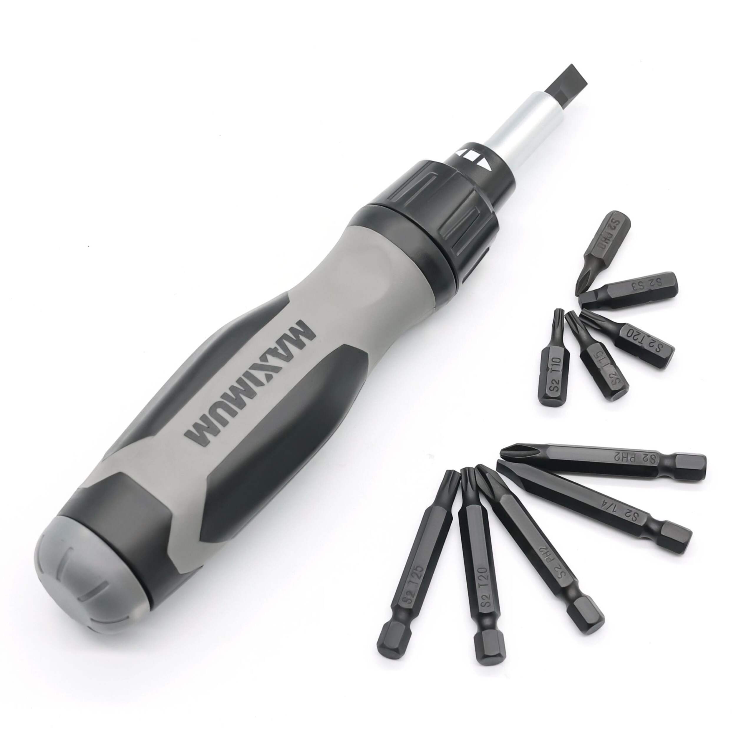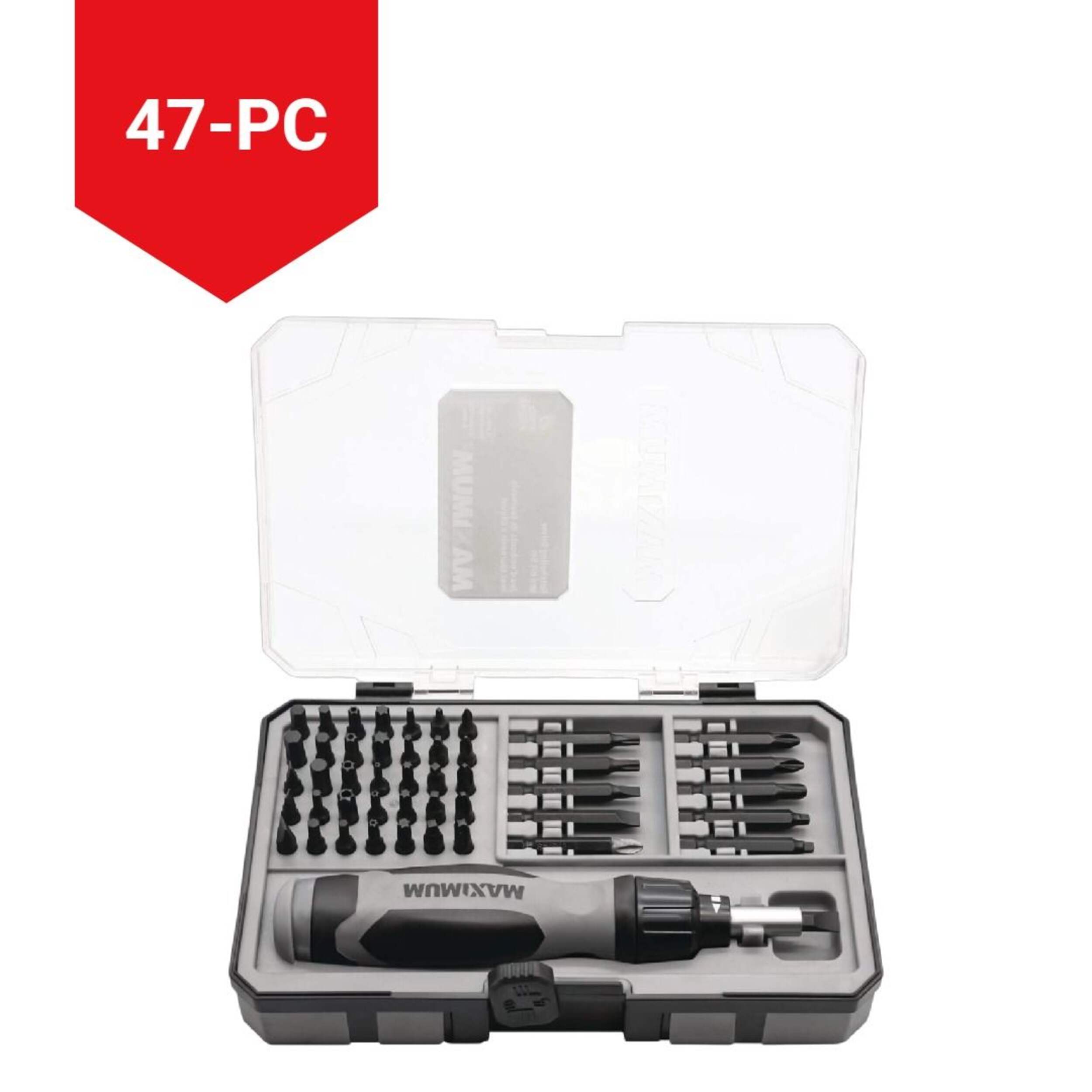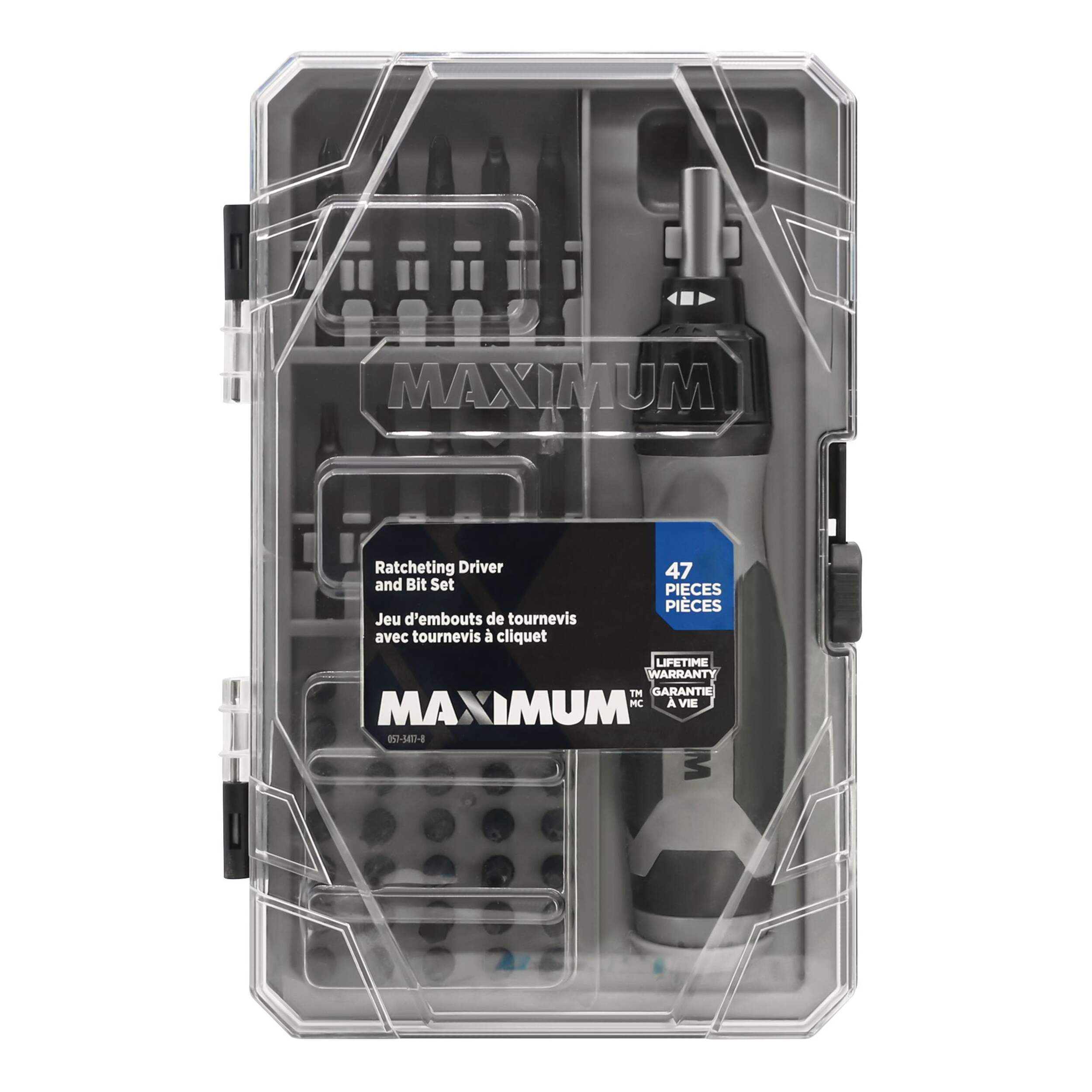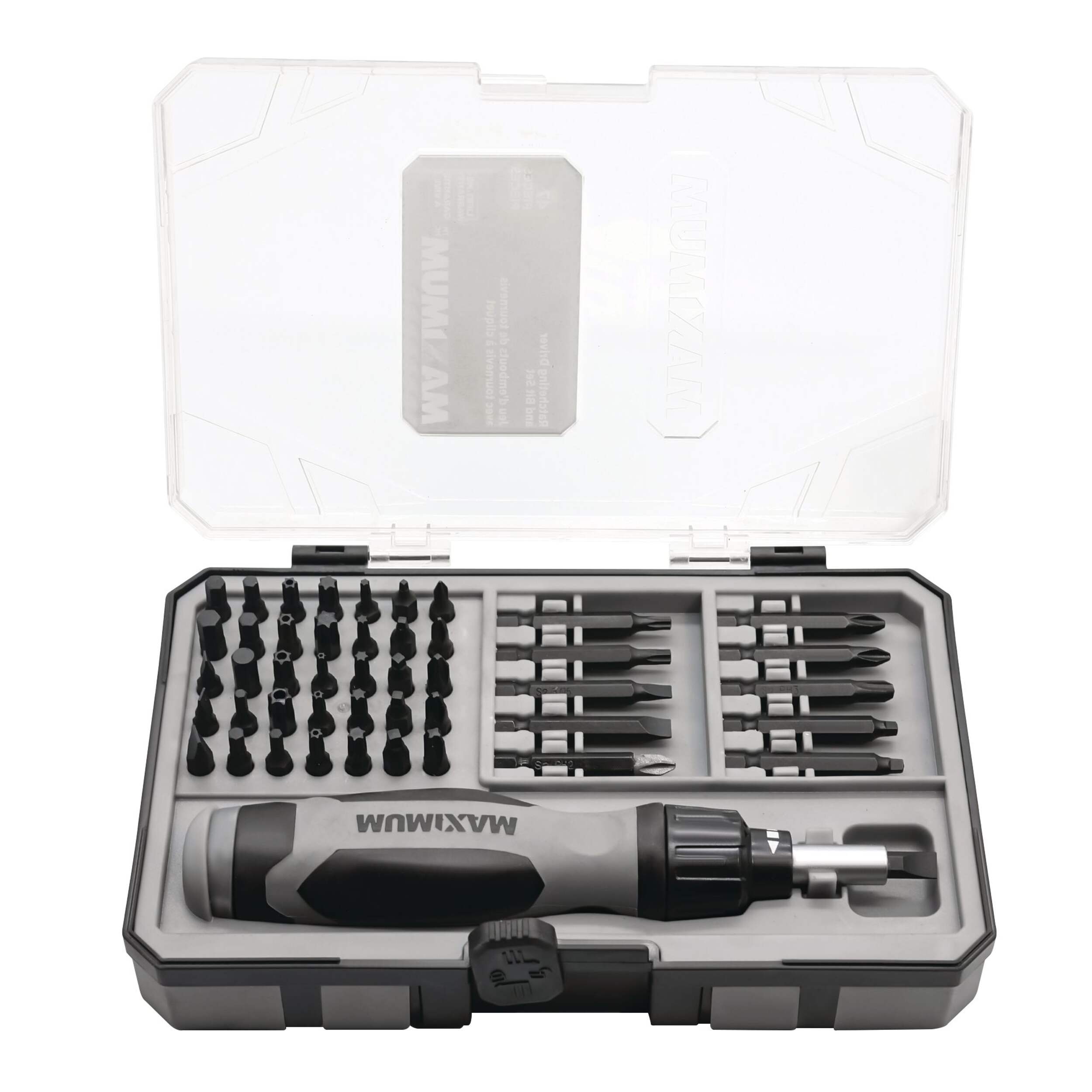 Make sure you're equipped for a variety of projects with the MAXIMUM Ratcheting Screwdriver Set. Durable and versatile, the screwdriver kit features S2 shock-resistant alloy steel bits with a black oxide coating to protect against corrosion. The ratcheting driver includes integrated bit storage for added convenience. With dozens of bits to choose from, you’re sure to find the one you need for any DIY or workplace challenge.