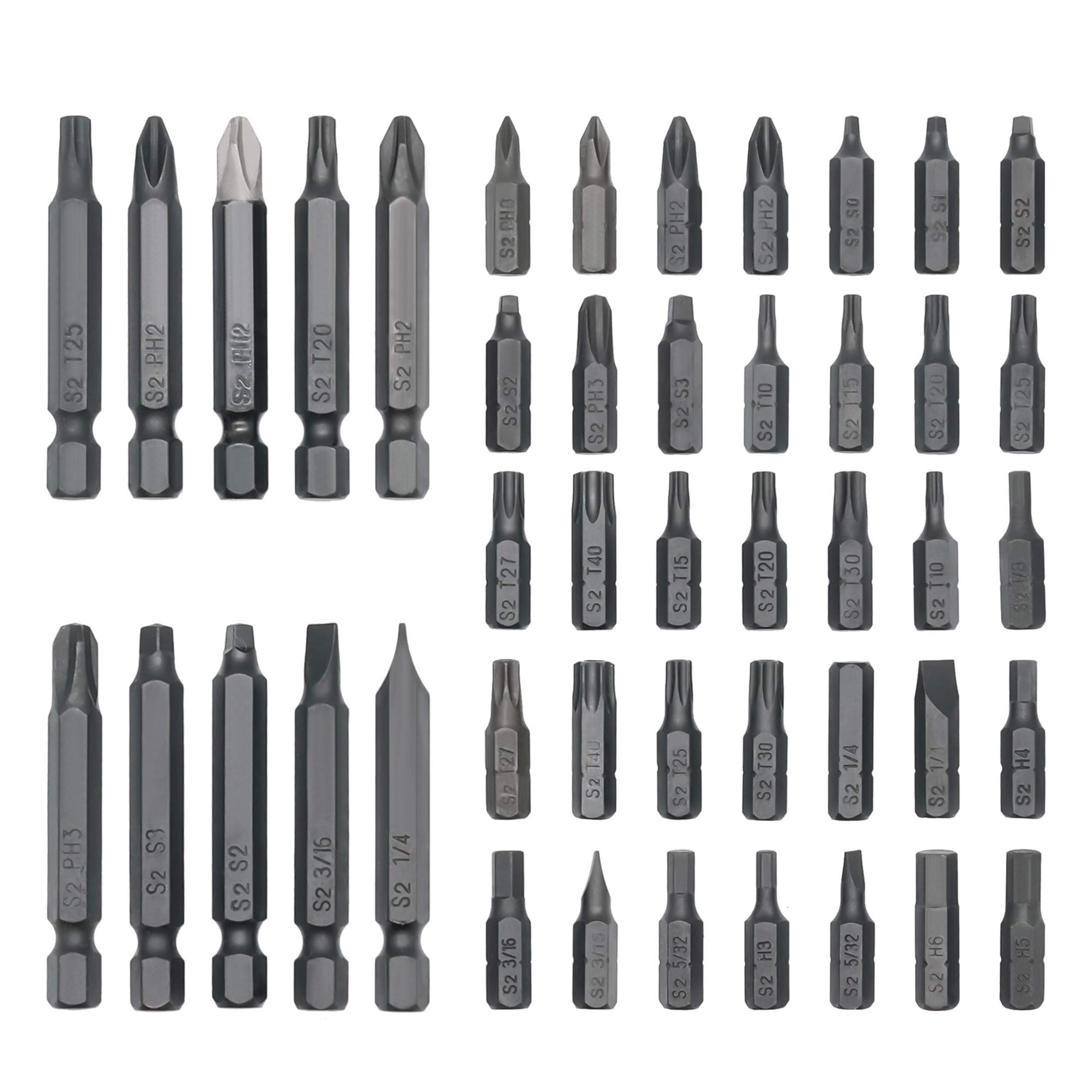Set contains 47-pieces including a ratcheting screwdriver handle, 8 Phillips bits, 7 square bits, 9 torx bits, 7 security torx bits, 8 hex bits, 6 slotted bits, and 1 diamond tip