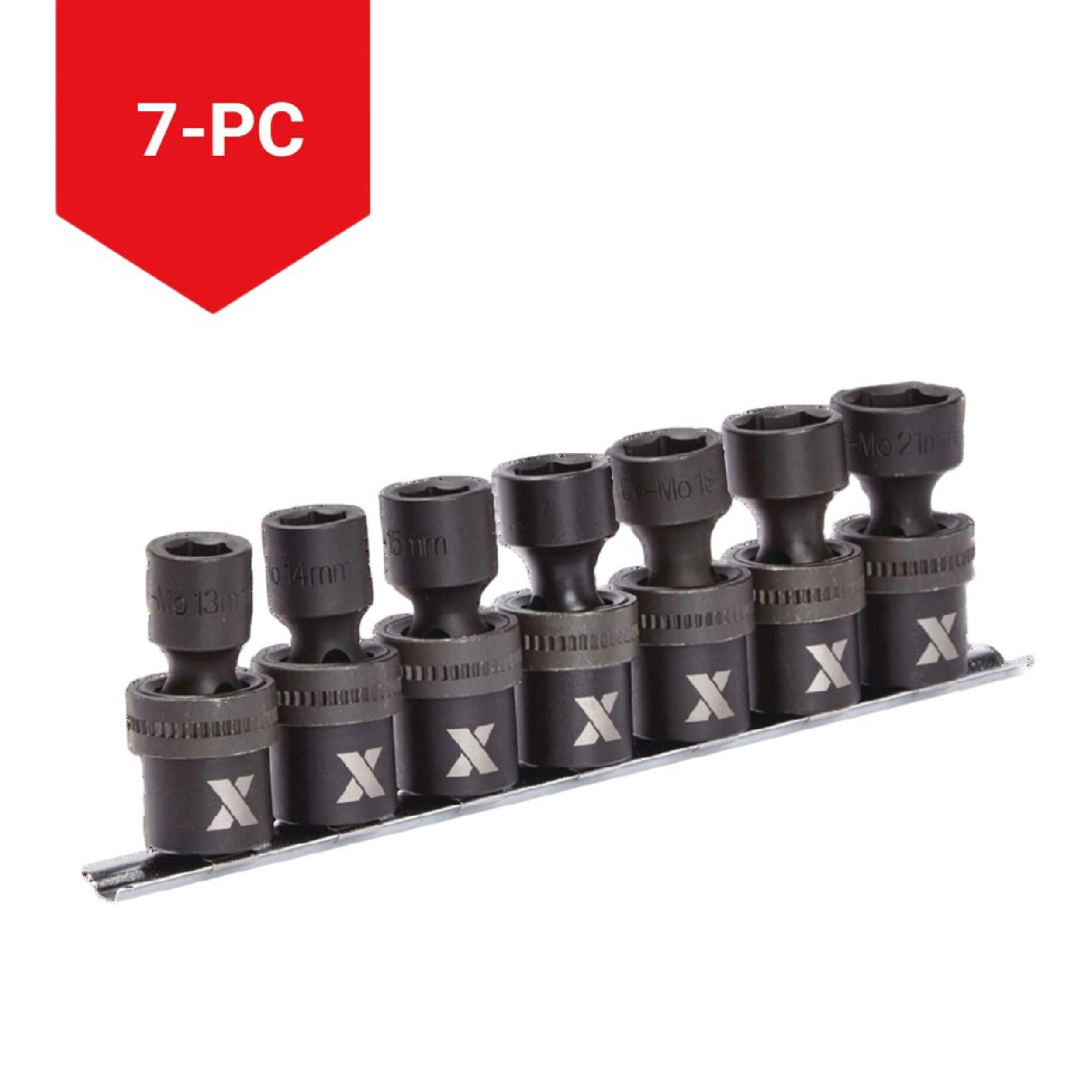 When air tools need to reach into tight spaces, you can rely on the MAXIMUM Impact Swivel Socket Set. This impact socket kit includes seven swivel sockets in metric sizes, ideal for use with air-powered impact tools and ratchets. These high-quality metric sockets are made from alloy steel, coated for superior corrosion resistance and long-term durability. The impact driver sockets also feature anti-rounding radius corners that distribute force over a large contact area, extending the life of fasteners in various machinery.