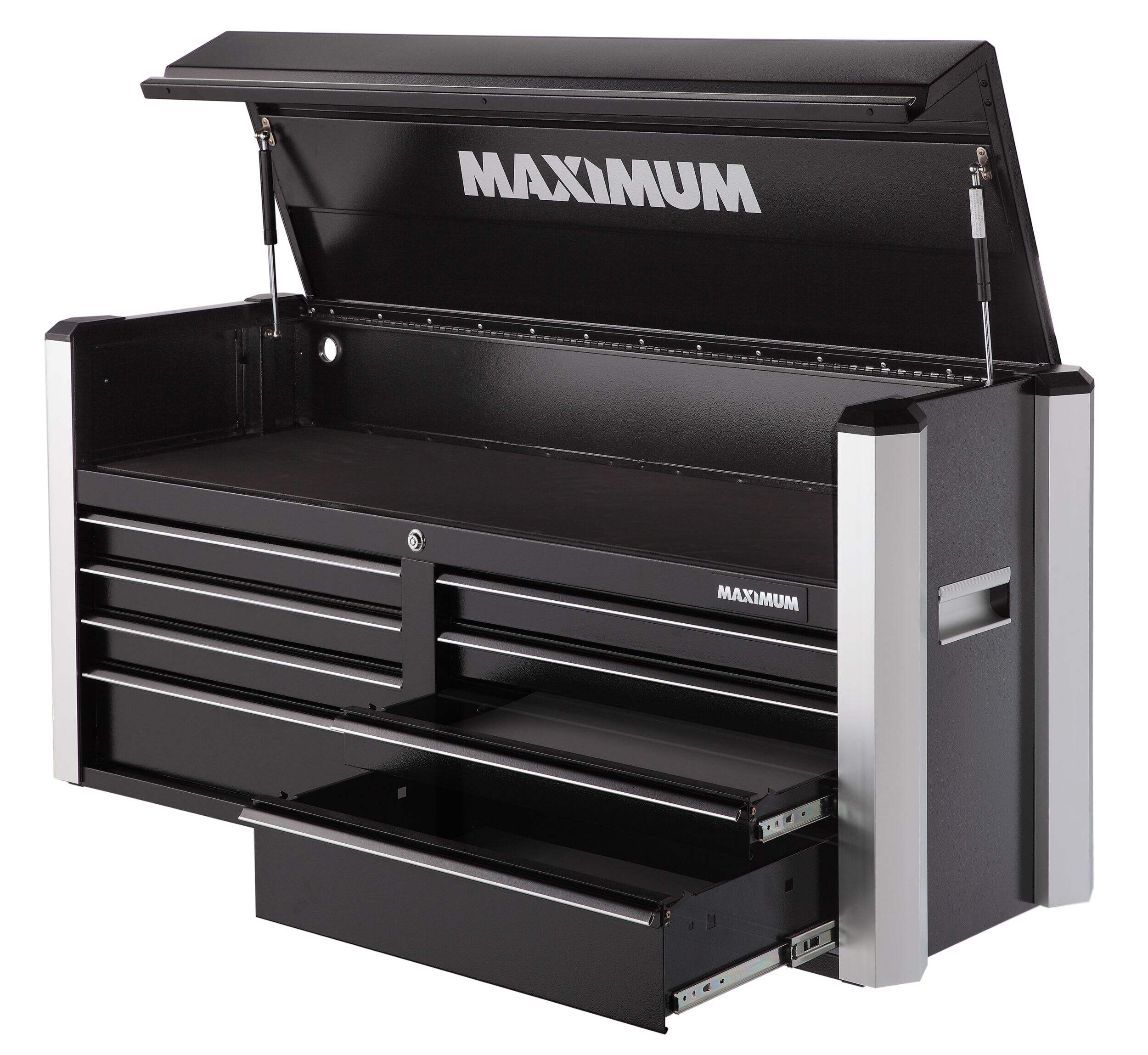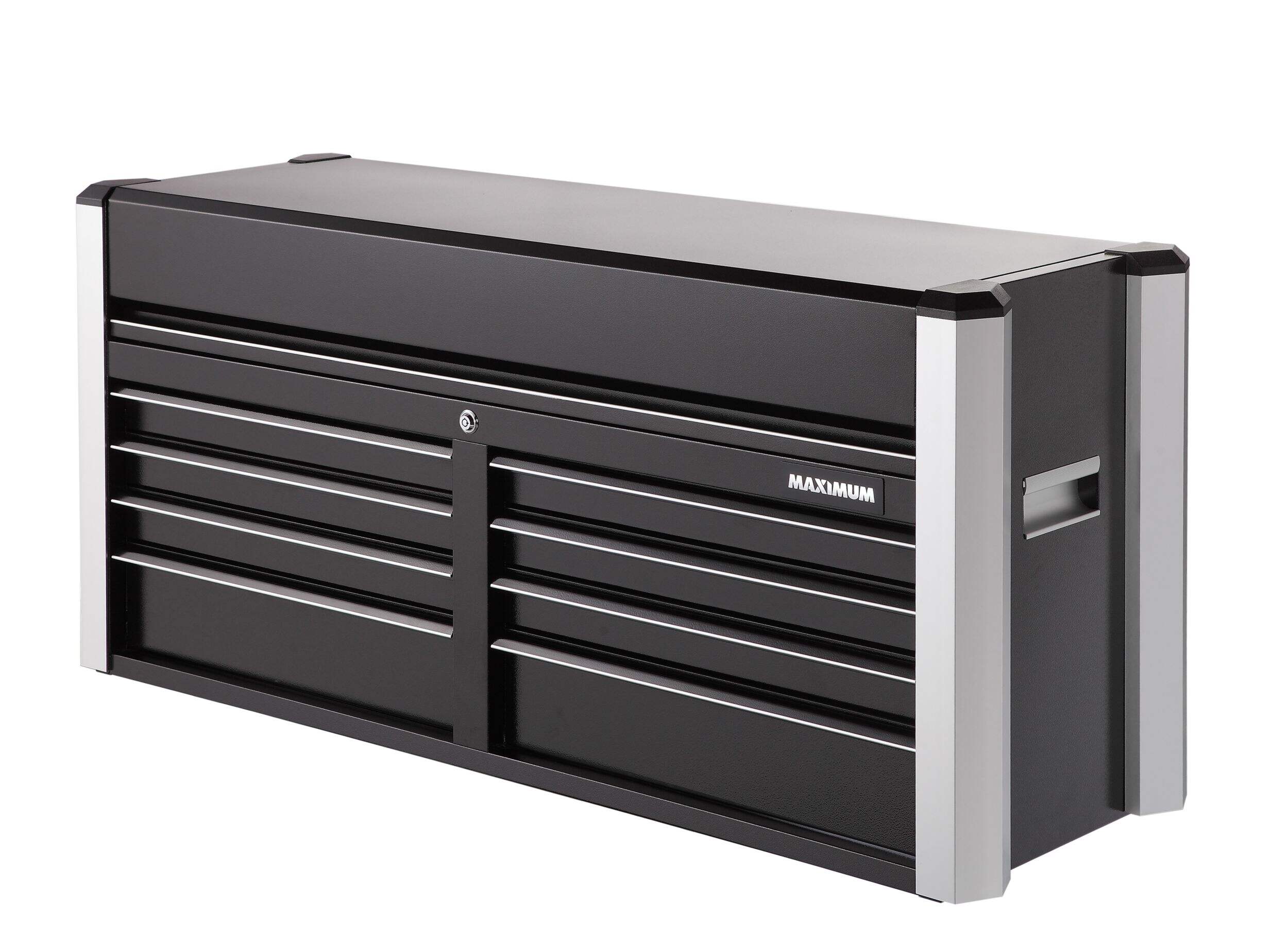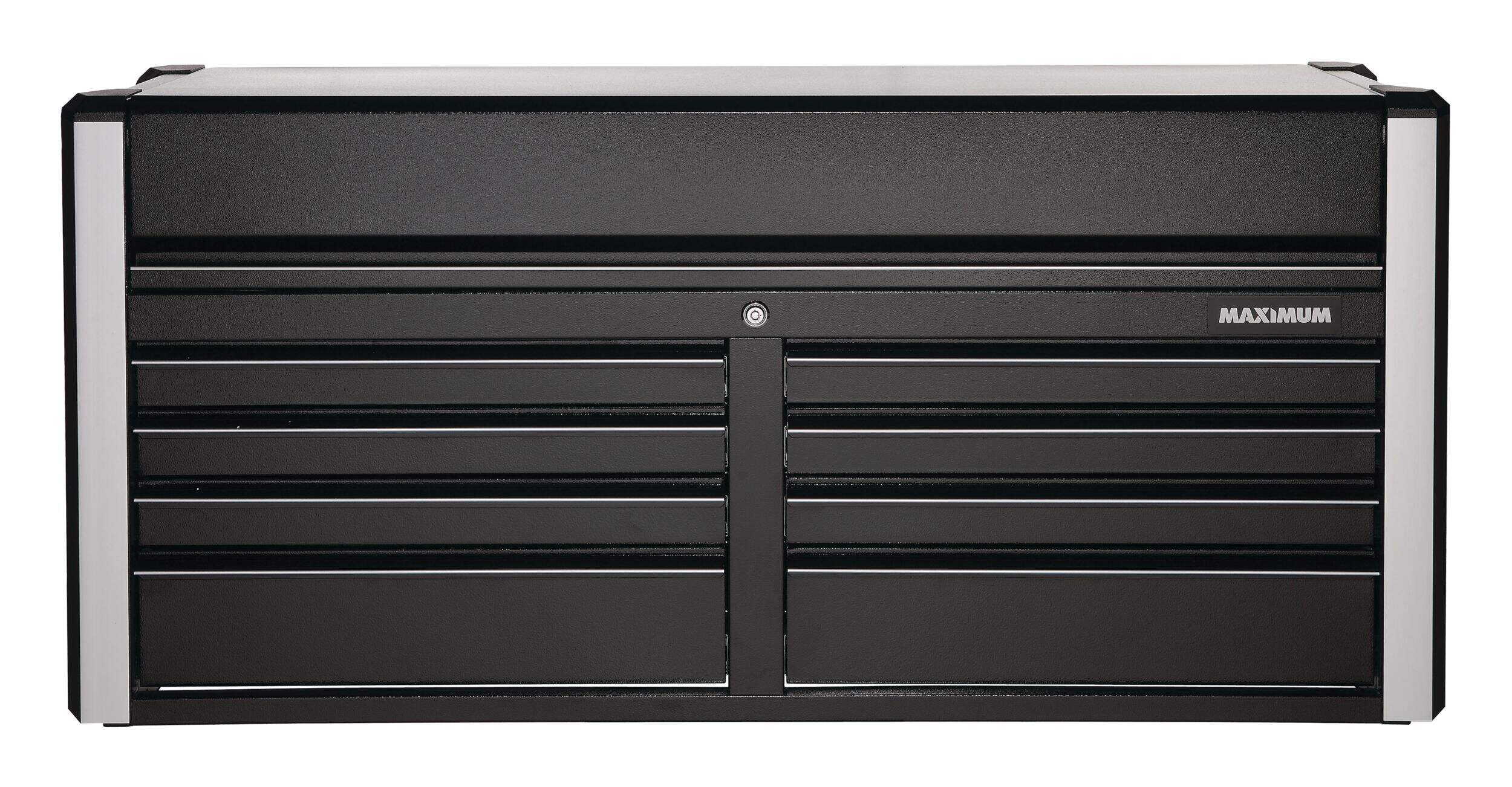 The MAXIMUM 57” Tool Storage Combo 8-Drawer Chest can serve as the ultimate one-stop shop for your tools and equipment, with a heavy-duty locking system for added security and durable liners in each compartment to protect from interior damage. This MAXIMUM chest can offer an adaptable storage solution when you need to fit a lot of equipment in a limited space. The storage box’s matte black finish helps it to resist small blemishes and fingerprints, as well as any dirt or dust you manage to kick up around the jobsite. If you plan to use the unit as a portable warehouse or tool cabinet, it has a pair of swivel casters and a pair of fixed ones that allow it to roll into place. This storage unit has 8 drawers in a variety of sizes to accommodate whatever tools, fasteners, or accessories you need to store. The deeper section near the top is ideal for storing your power tools, as cords can easily be run inside to power them when not in use. Regardless of your current project, this tool chest can serve as a reliable home base for your tools and materials.