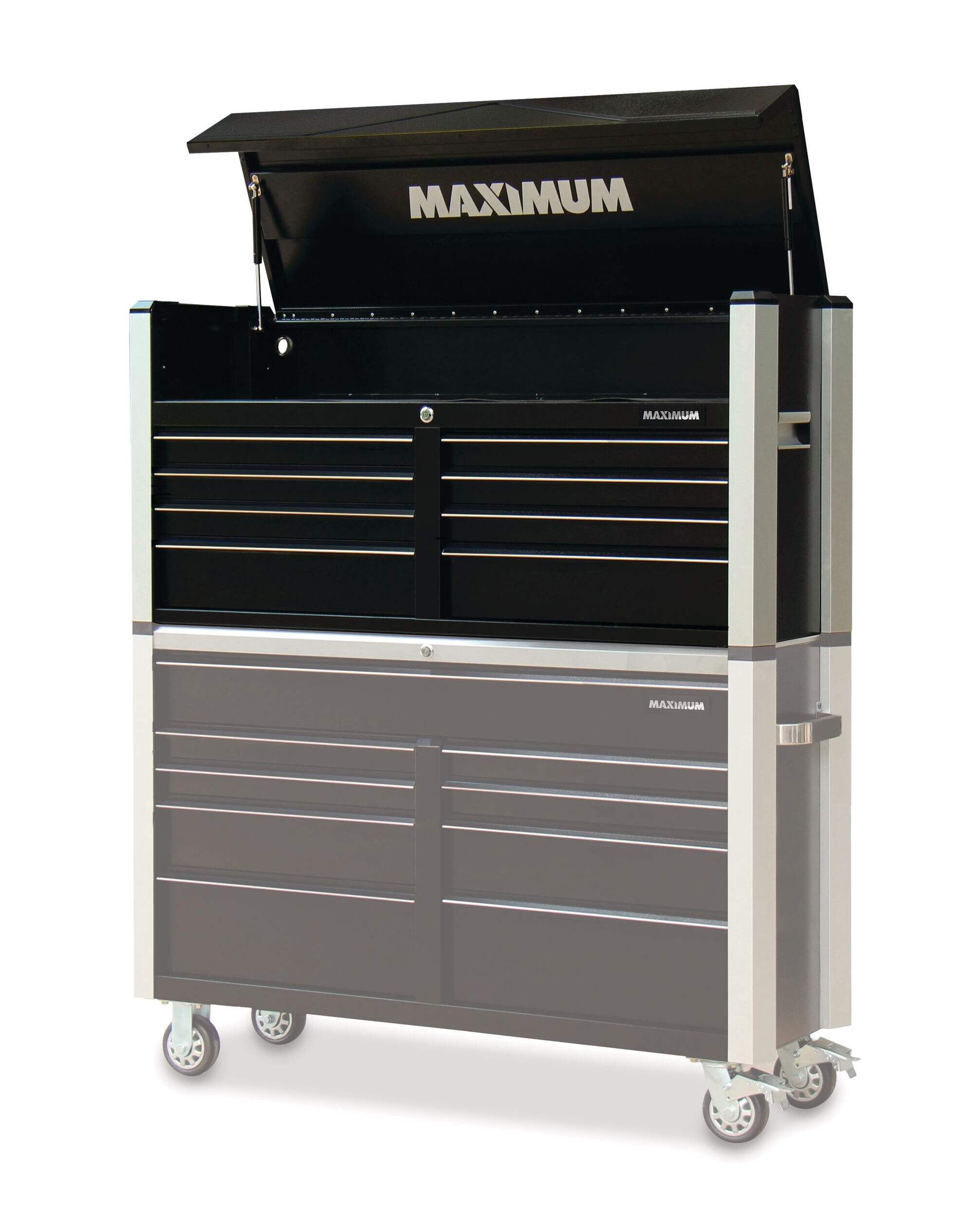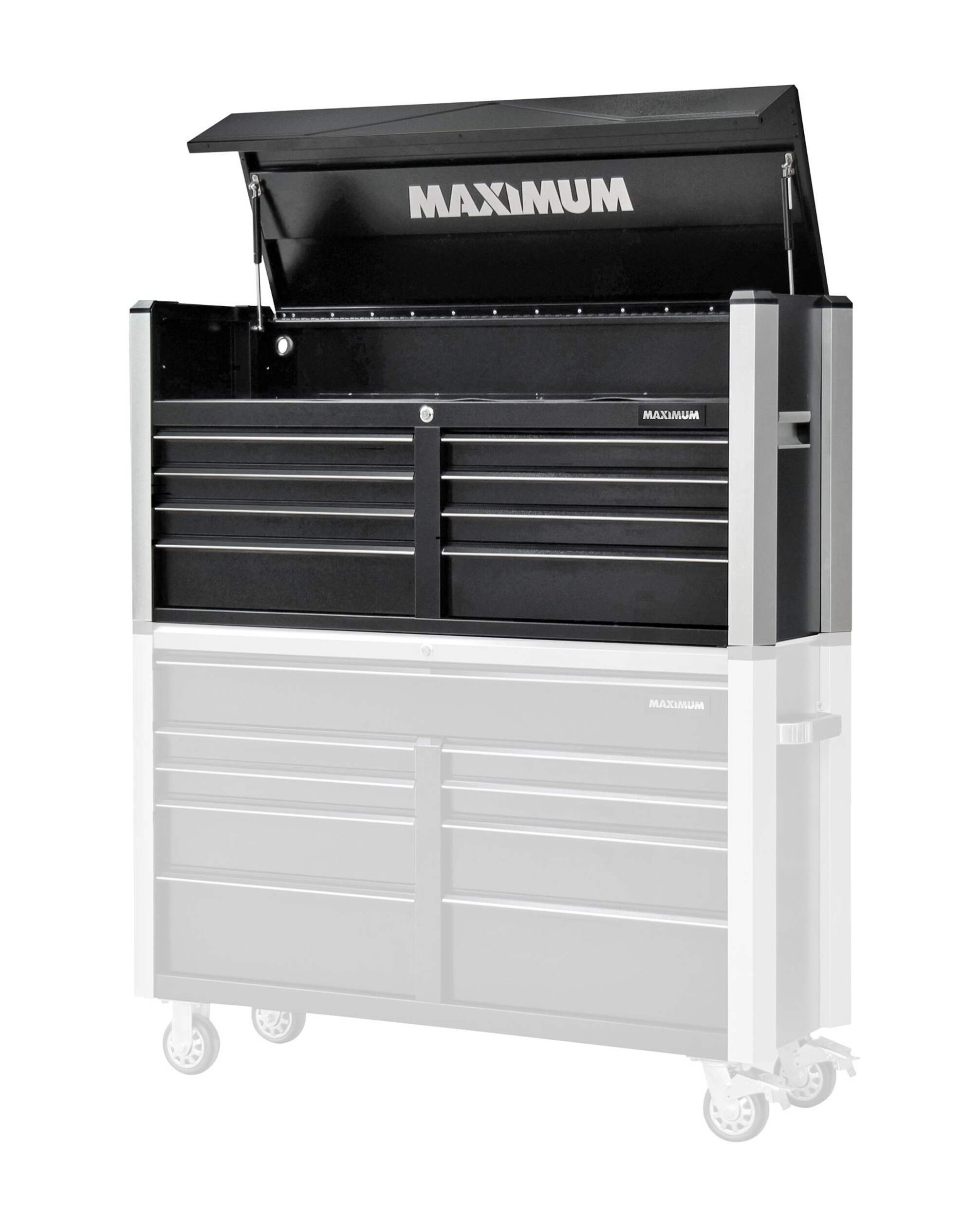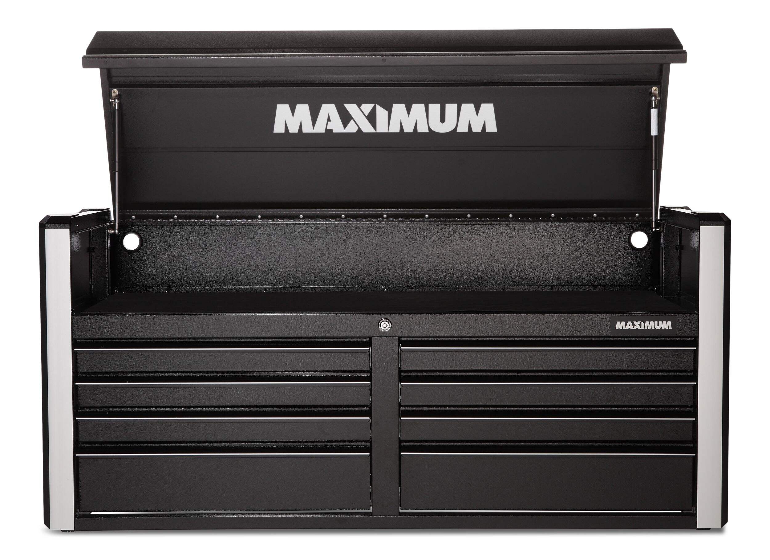 The MAXIMUM 57” Tool Storage Combo 8-Drawer Chest can serve as the ultimate one-stop shop for your tools and equipment, with a heavy-duty locking system for added security and durable liners in each compartment to protect from interior damage. This MAXIMUM chest can offer an adaptable storage solution when you need to fit a lot of equipment in a limited space. The storage box’s matte black finish helps it to resist small blemishes and fingerprints, as well as any dirt or dust you manage to kick up around the jobsite. If you plan to use the unit as a portable warehouse or tool cabinet, it has a pair of swivel casters and a pair of fixed ones that allow it to roll into place. This storage unit has 8 drawers in a variety of sizes to accommodate whatever tools, fasteners, or accessories you need to store. The deeper section near the top is ideal for storing your power tools, as cords can easily be run inside to power them when not in use. Regardless of your current project, this tool chest can serve as a reliable home base for your tools and materials.