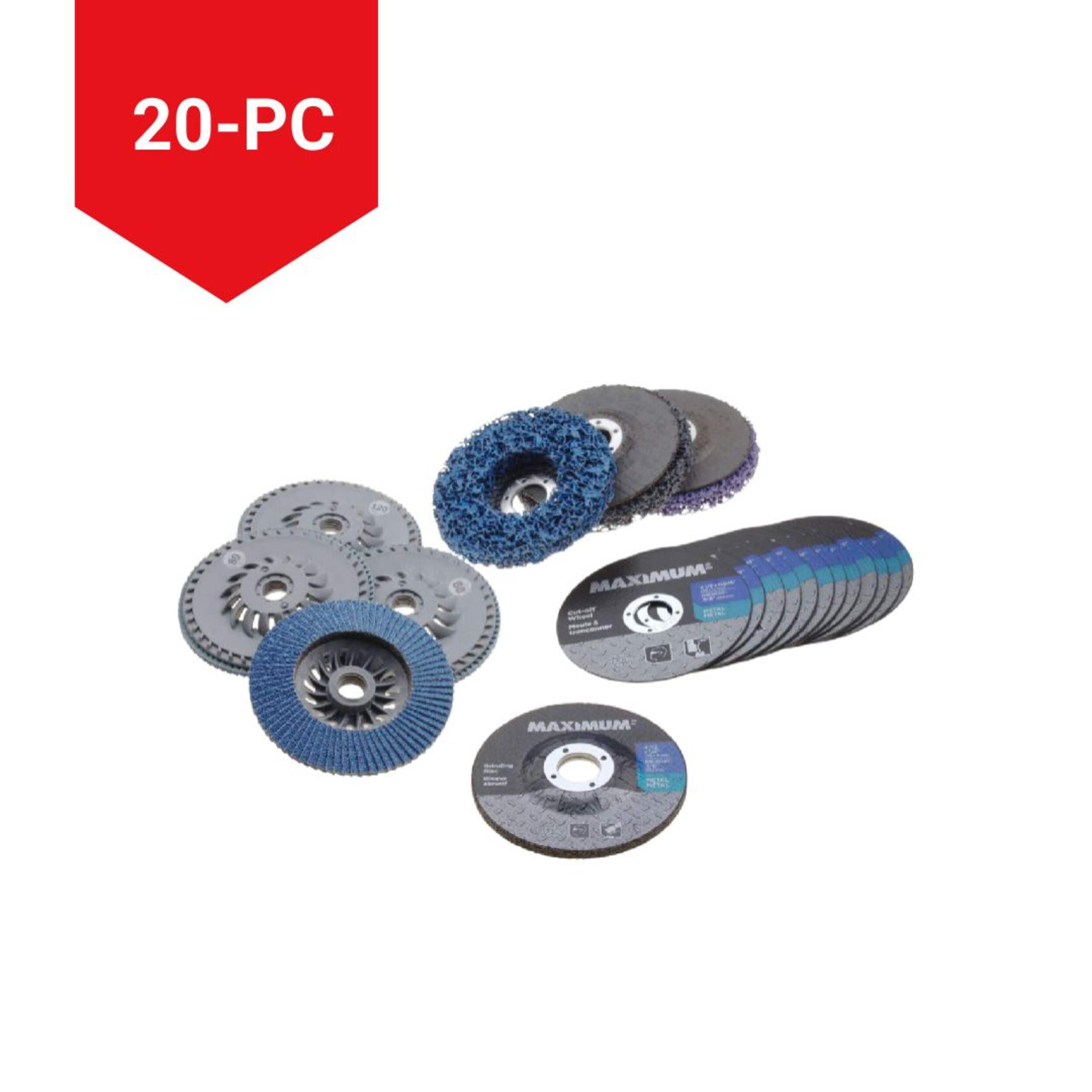 The MAXIMUM Grinder Accessory Set is designed for multiple tasks, including surface grinding, edge finishing, weld dressing, rust removal, and cutting. With self-sharpening Zirconium oxide grains, it maintains sharpness throughout its lifespan, ensuring consistent performance. The polycarbide disc further enhances stock removal in high-pressure applications, making this set an ideal choice for both professional tradespeople and DIY enthusiasts tackling heavy-duty projects.