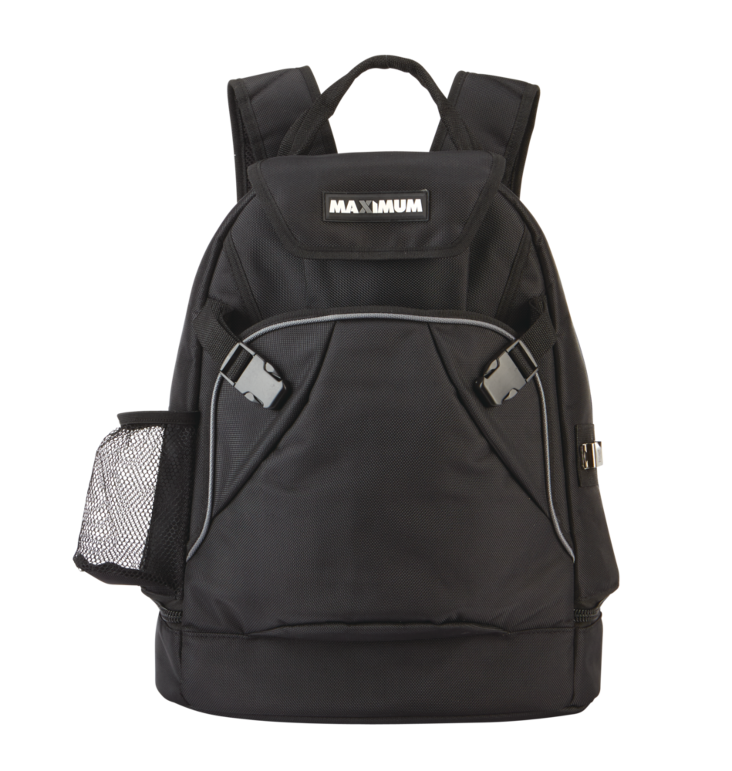 MAXIMUM Tool Org Backpack features a heavy-duty outside pocket and reinforced corners for tough and reliable performance