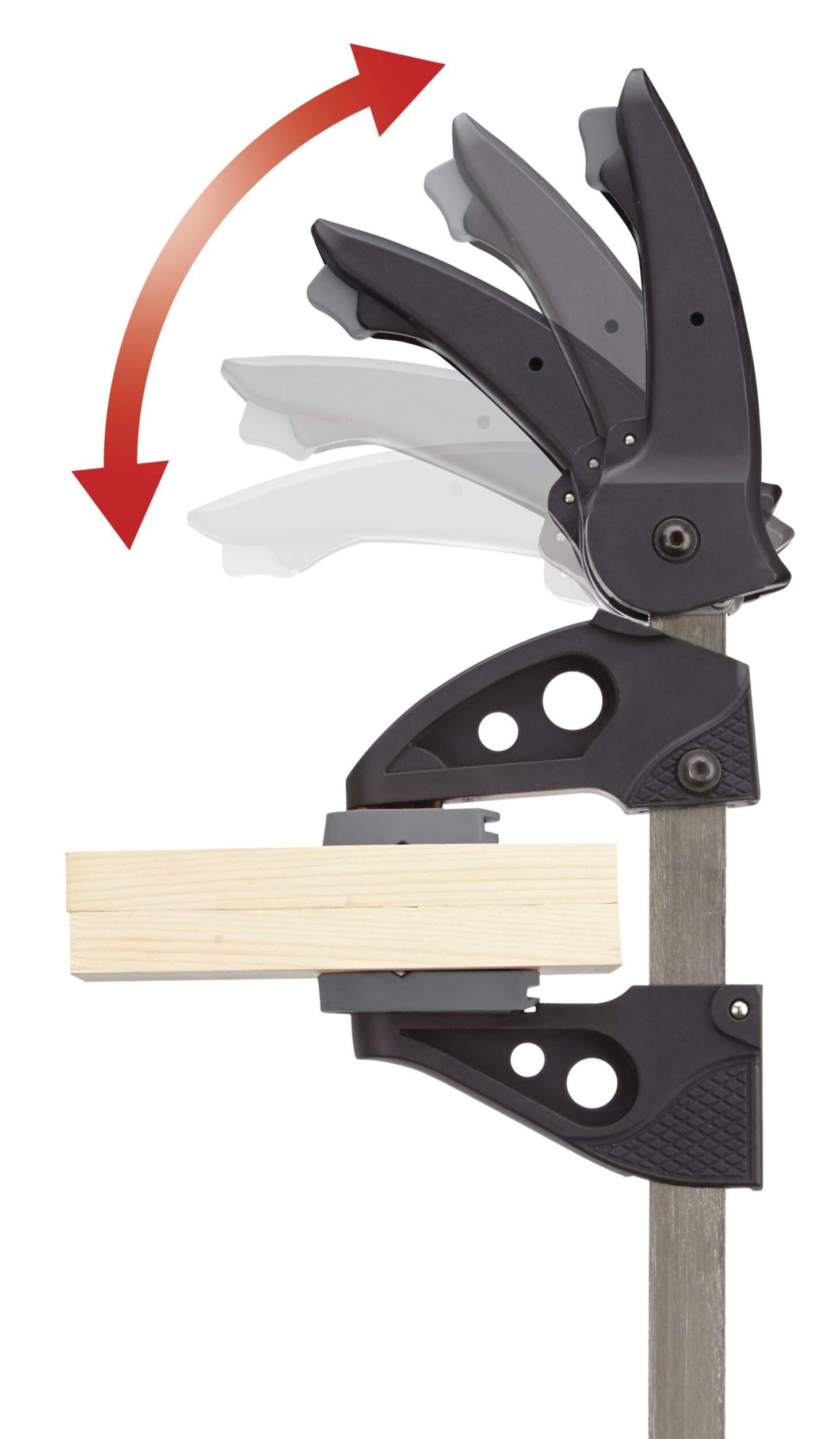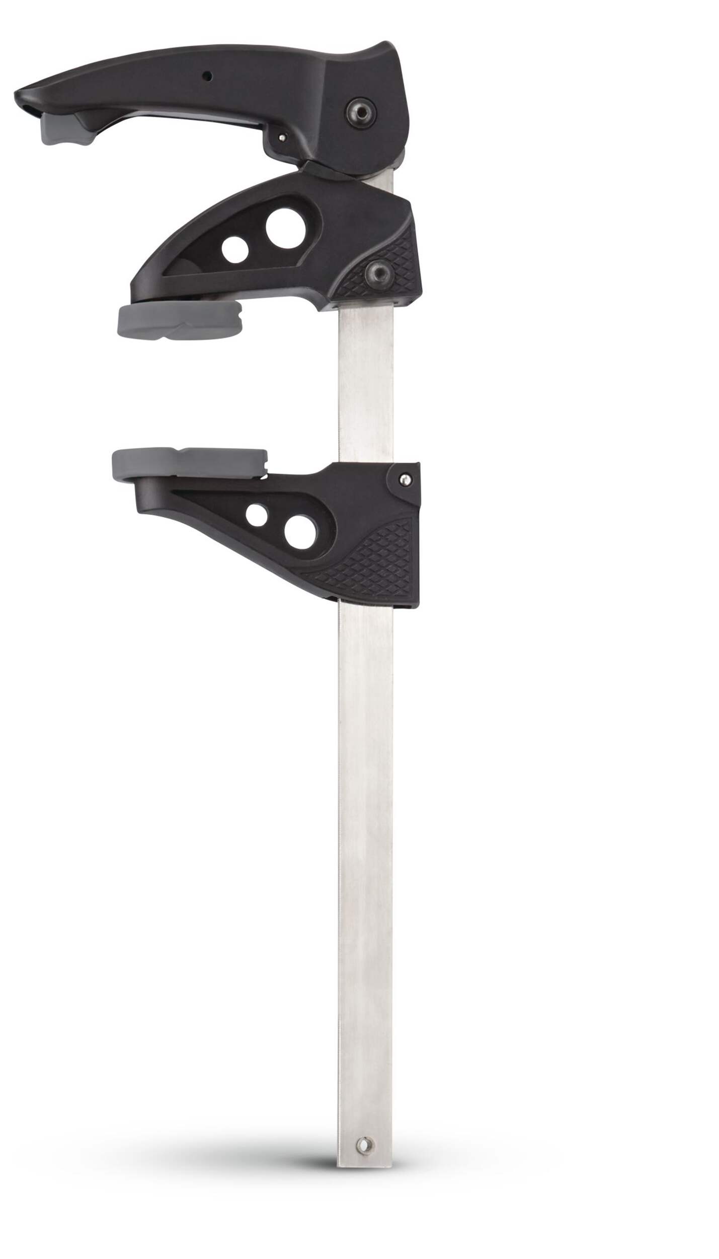 Adjustable sliding head and steel reinforcement ensure maximum clamping force while reducing flexing and bowing