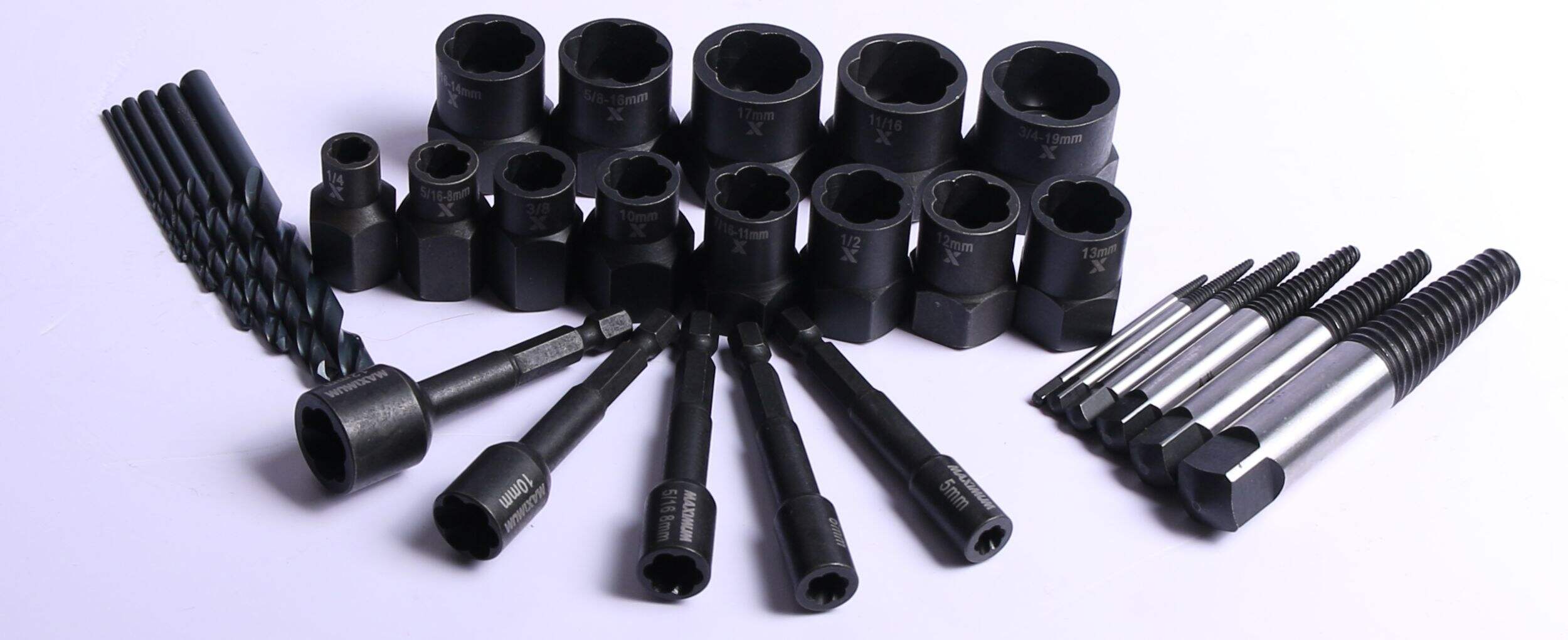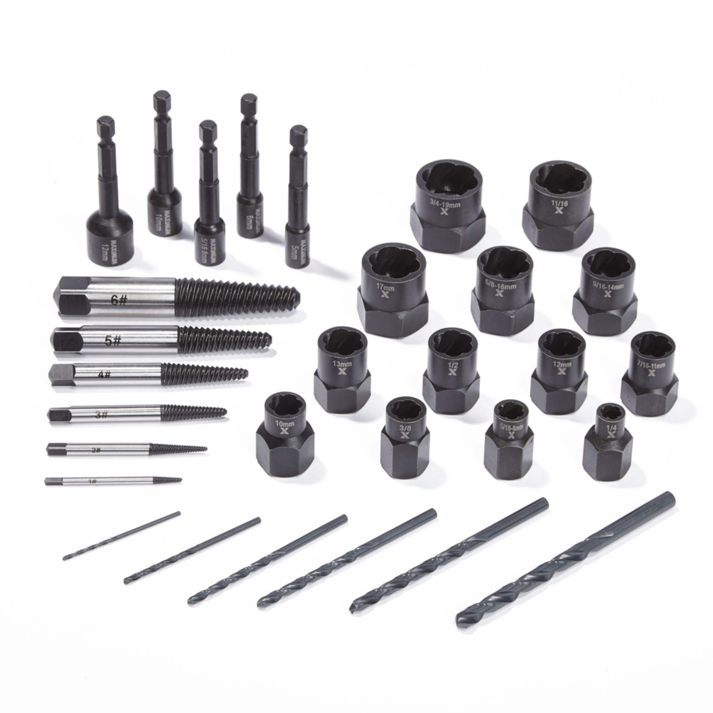 The MAXIMUM 3/8-in Bolt Remover Set, 30-pc is built with chrome-molybdenum steel for superior corrosion resistance. Equipped with bolt/nut busting power, this durable bolt extractor is ideal for freeing up nuts and bolts that have become stuck. This bolt remover set has laser-etched size markings for easy visibility and size selection to ensure hassle-free use.