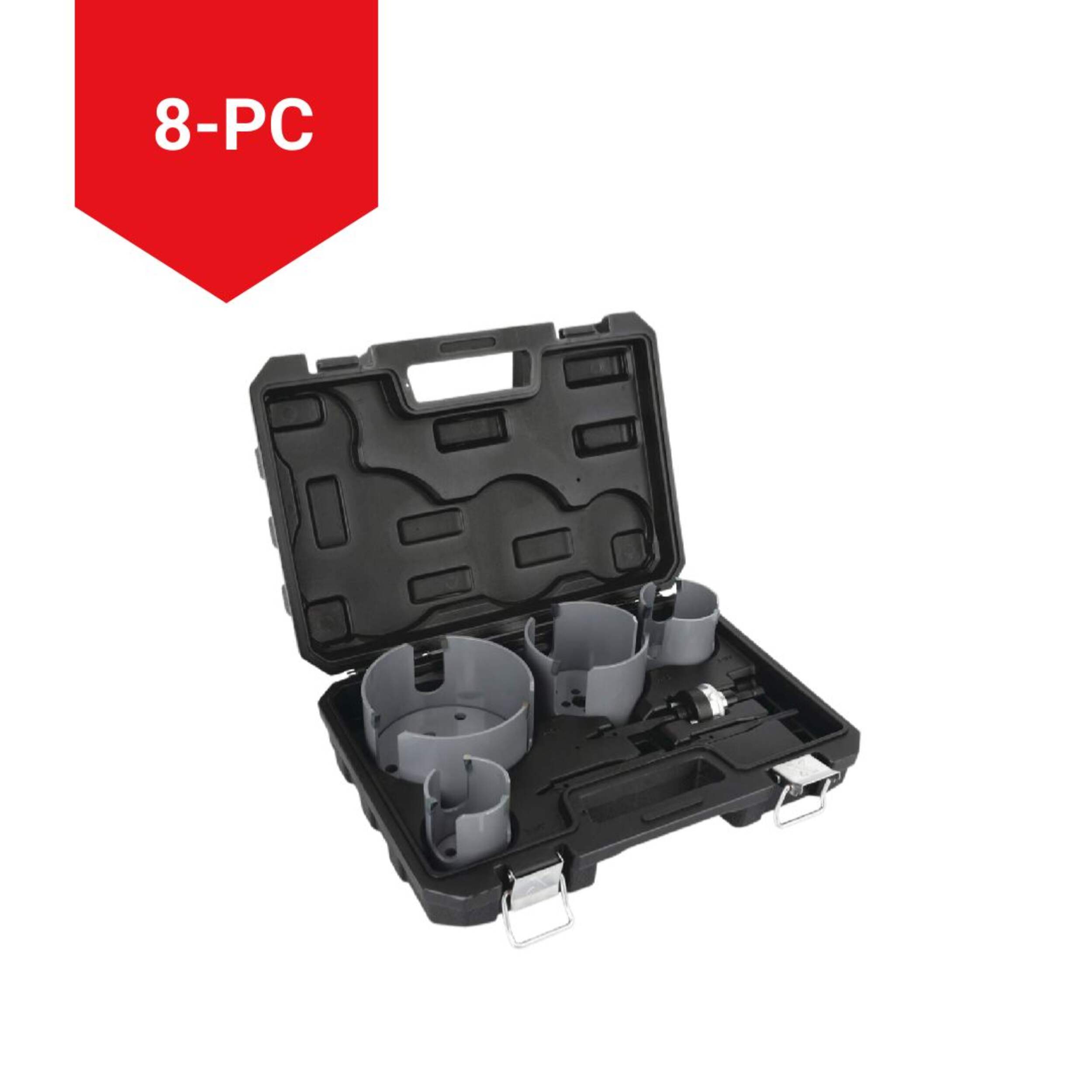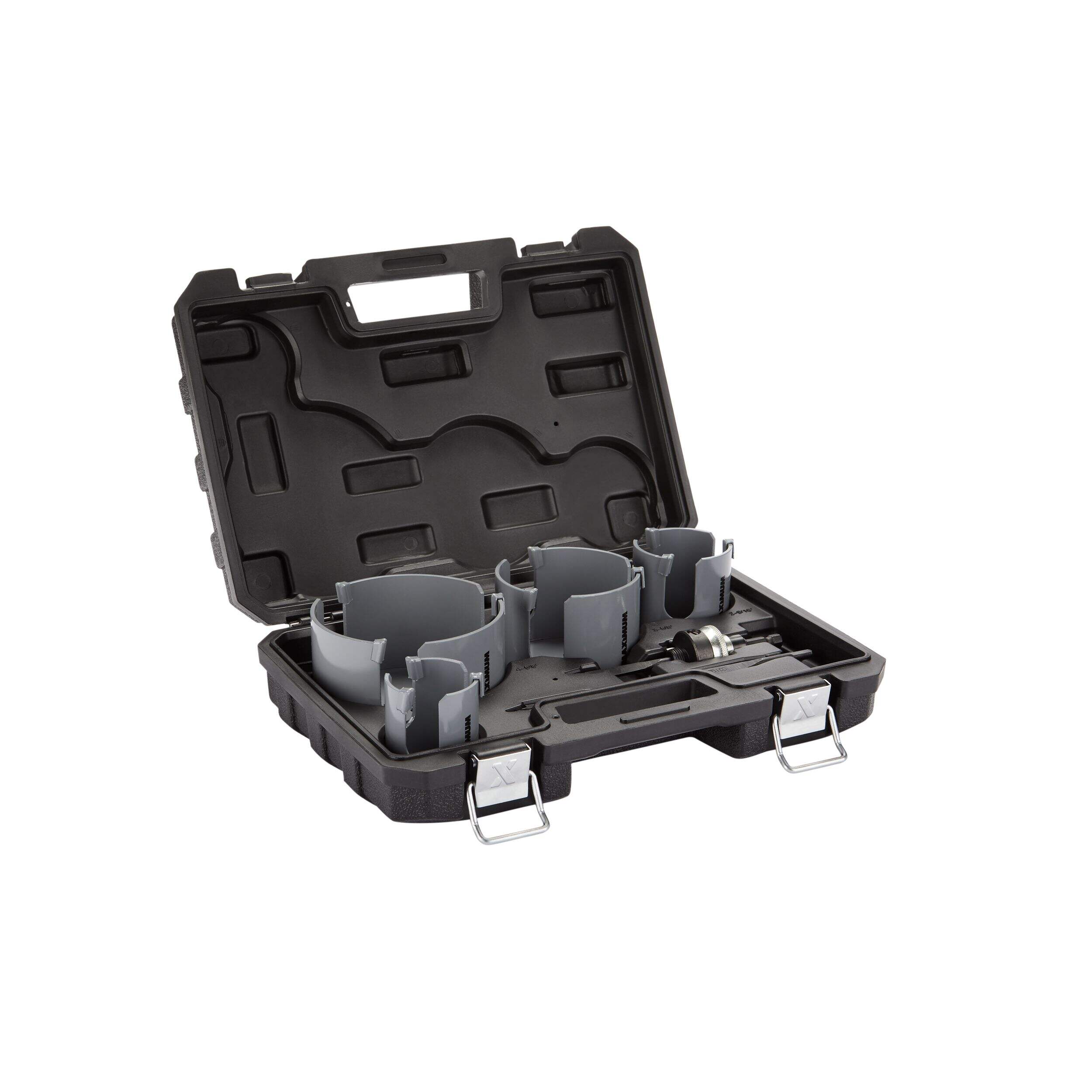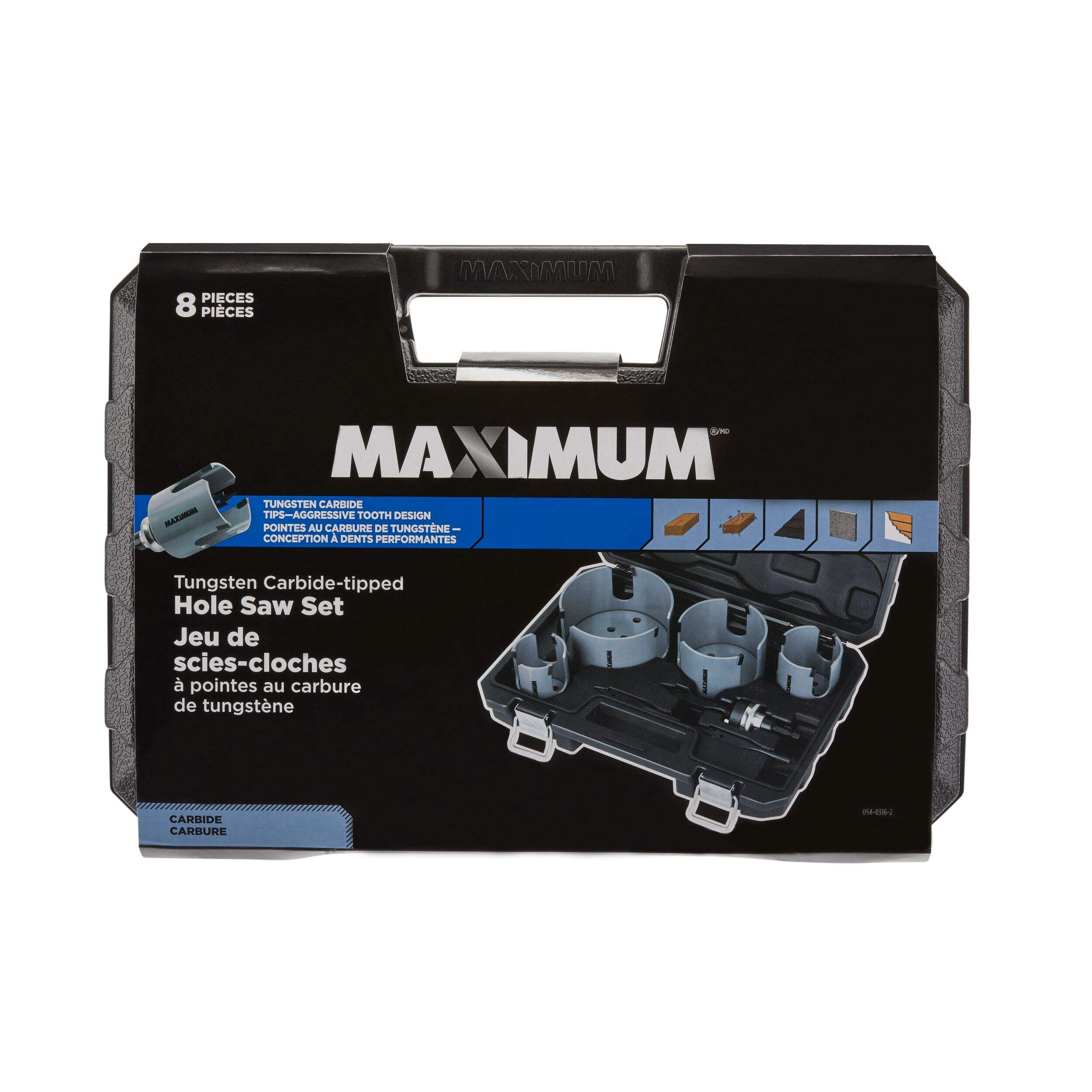 The MAXIMUM Tungsten Carbide-Tipped Hole Saw Set is made to handle the toughest applications, making it ideal for HVAC work or plumbing. The carbide-tipped saws cut through wood with ease, even in damp contexts. The pieces in this saw set have an intelligently engineered shape that offers five times faster cutting compared to conventional hole saws. The saws each have three hardened steel teeth that allow them to resist damage when coming into contact with knots or nails.