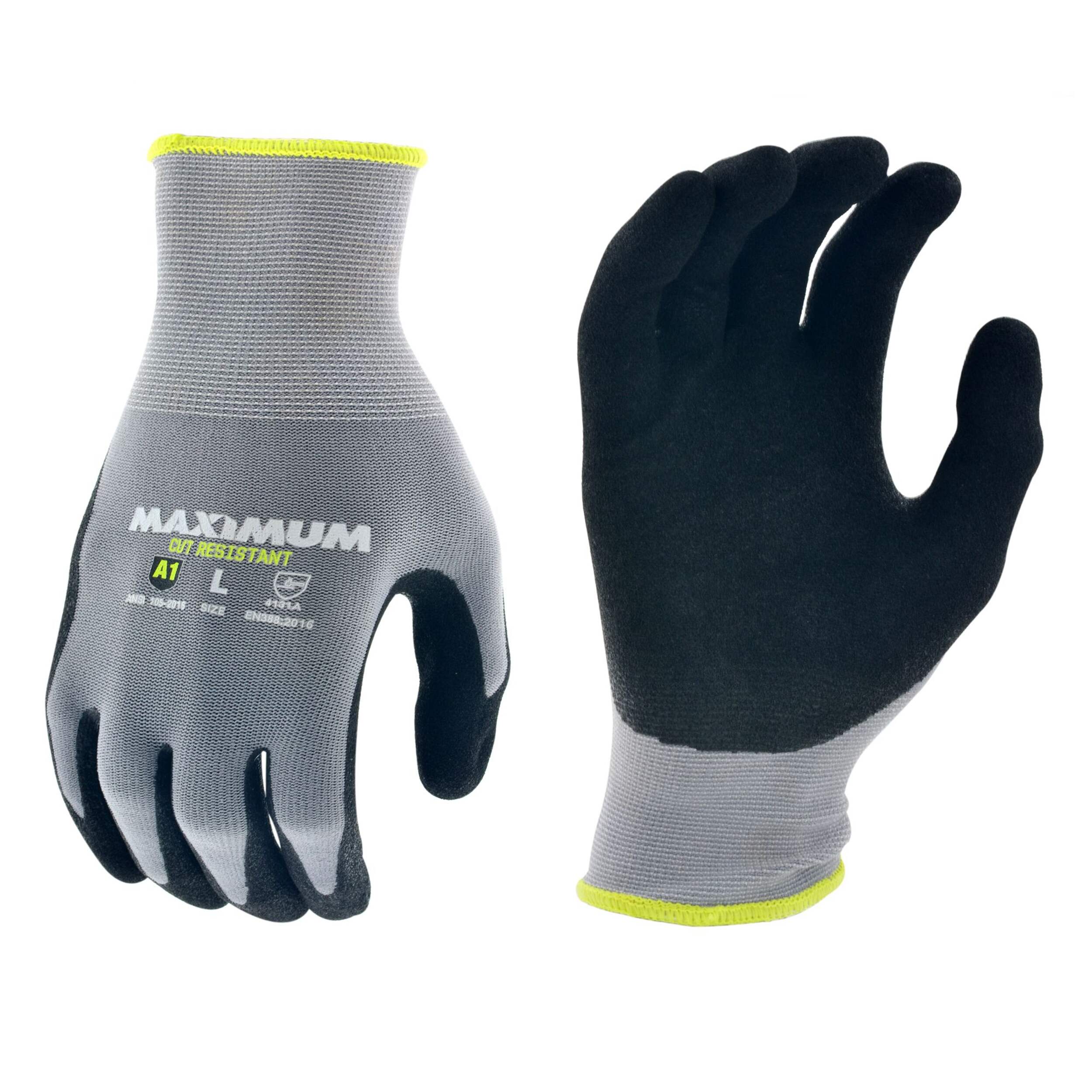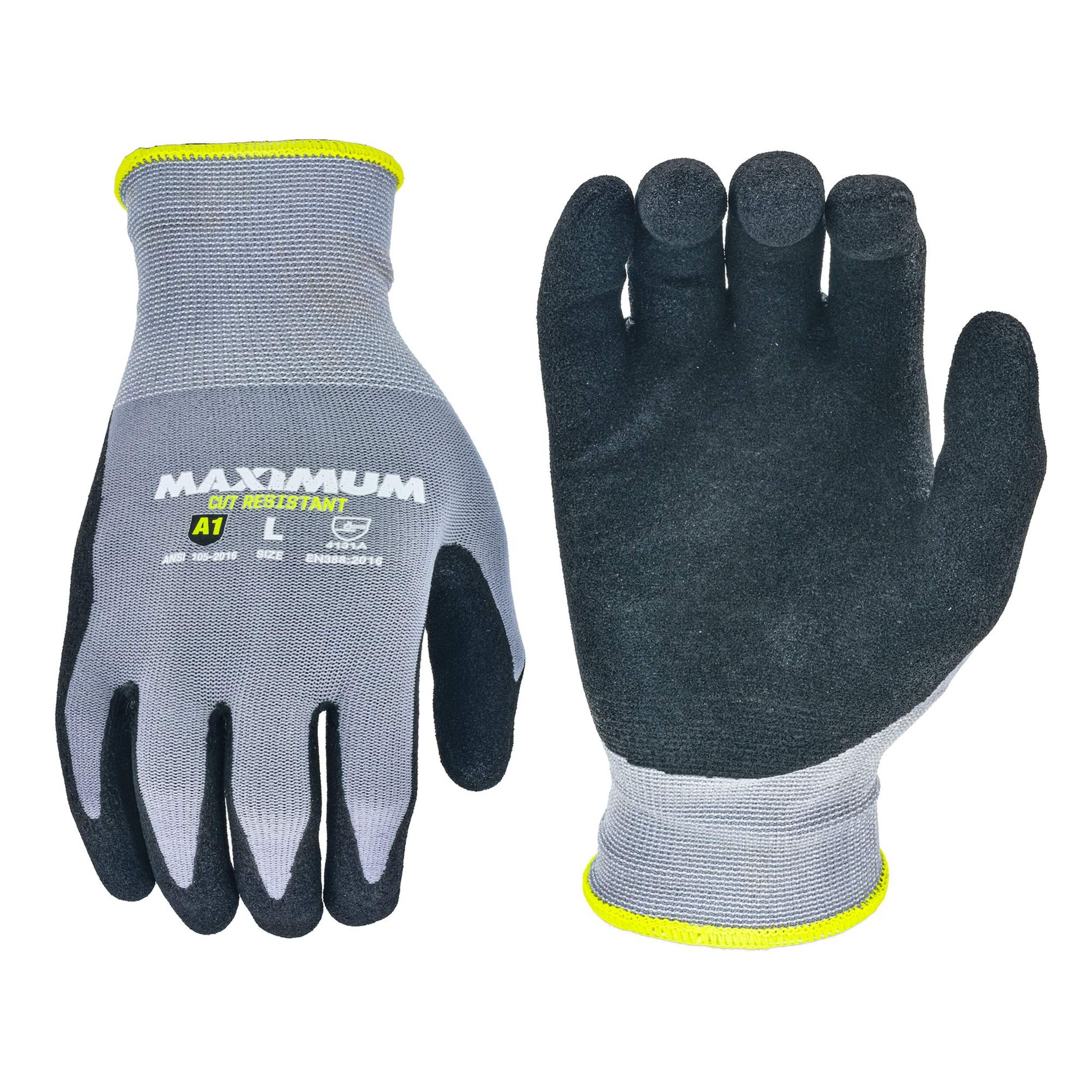 The MAXIMUM Coated Grip Work Gloves offer excellent protection on the job. This 2-pair pack features a specialized grip coating that provides a secure grasp on tools and materials. The gloves allow for precise movements and control, making them ideal for tasks requiring fine motor skills. With their cut-resistant construction and slip-resistant grip, these MAXIMUM work gloves prioritize safety and functionality for demanding applications.