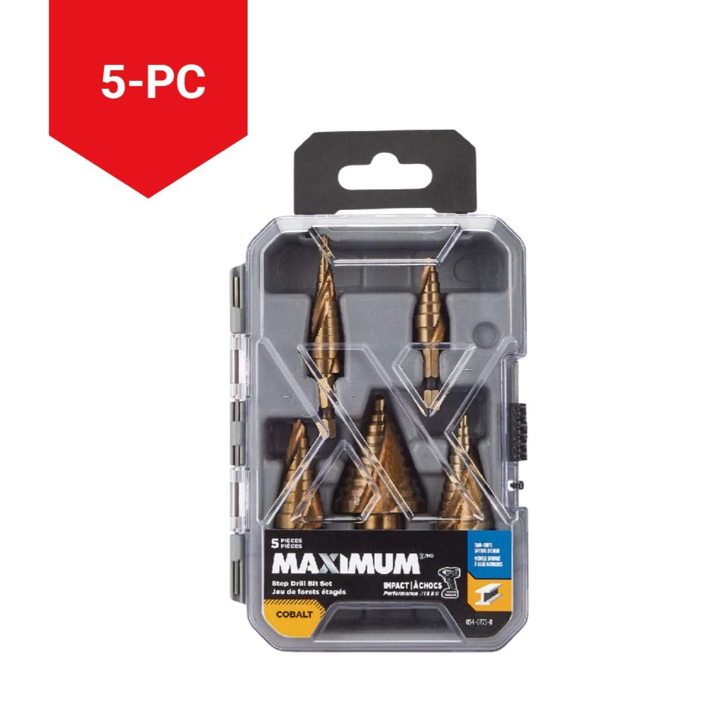 The MAXIMUM Cobalt Step Drill Bit Set is expertly designed to handle tough drilling tasks with efficiency. Ideal for both professionals and DIY enthusiasts, this versatile set allows you to create a variety of hole sizes in wood and metal. Each bit features laser-engraved measurements for easy visibility, ensuring precision and accuracy. Made from durable materials, this set is a valuable addition to any toolbox for all your drilling needs.
