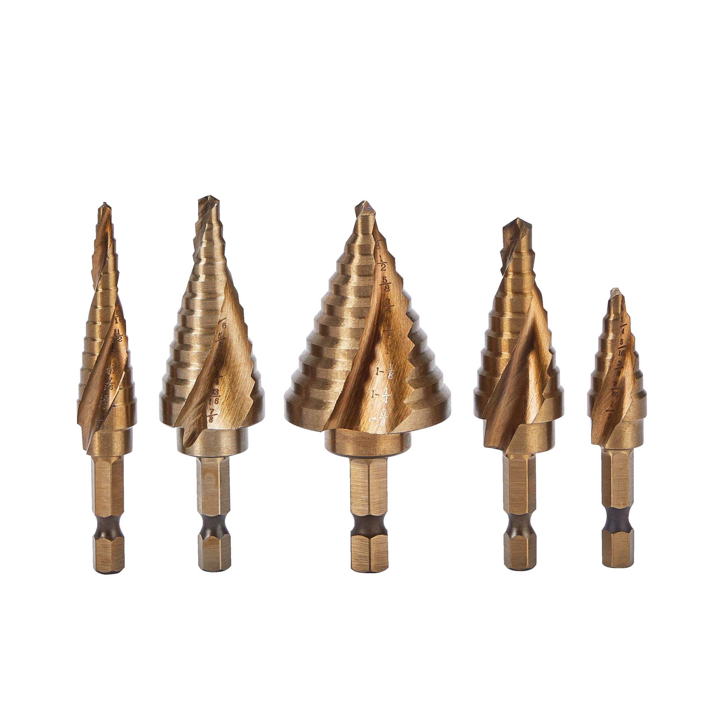 Included 10 steps: 1/4", 3/8", 1/2", 5/8", 3/4", 7/8", 1", 1-1/8", 1-1/4", 1-3/8" (5/16" hex shaft)