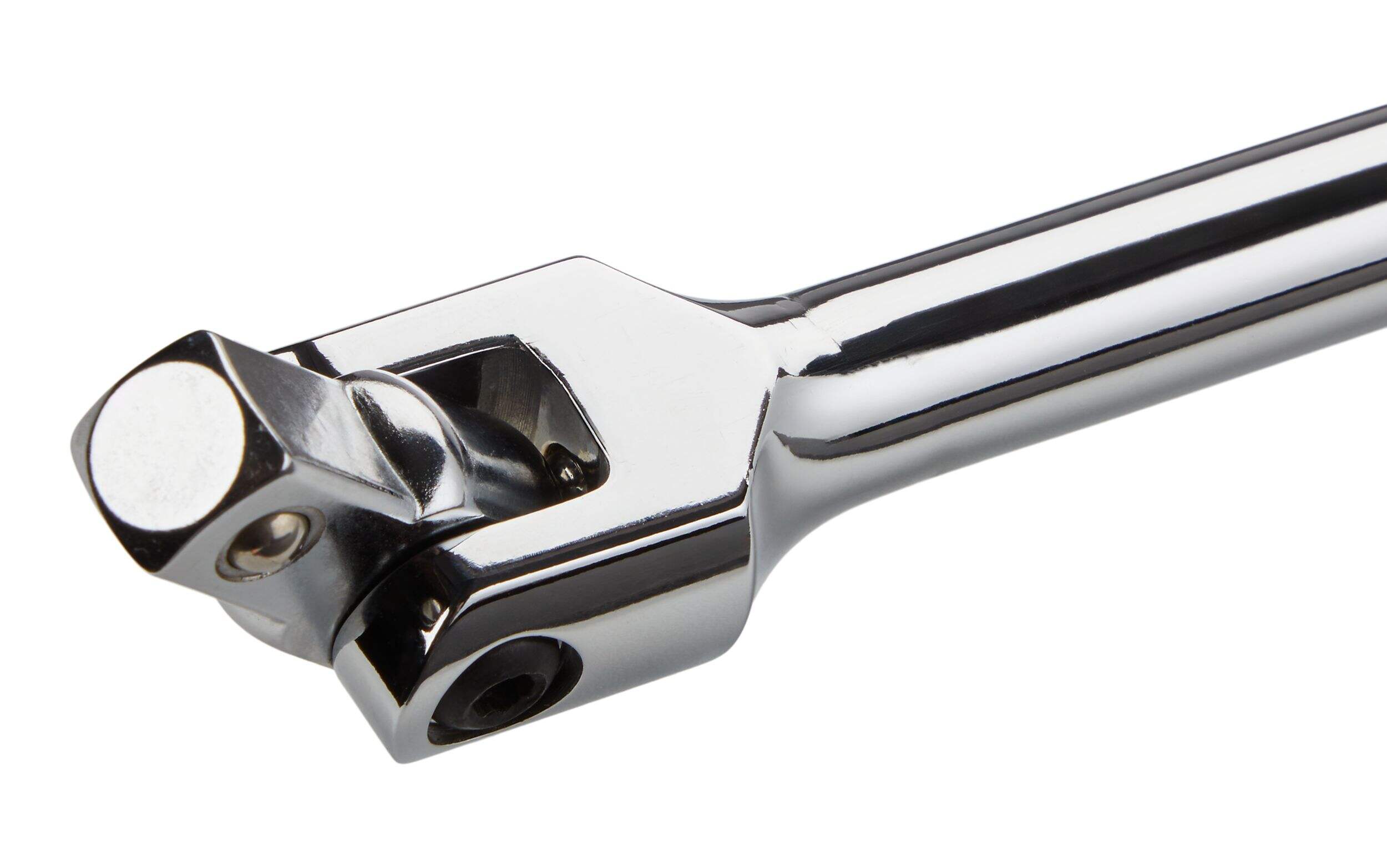 The MAXIMUM Extendible Breaker Bar is a 24-inch heavy-duty tool that extends with five lockable length positions. Its spring loaded ball bearing securely holds sockets while the 180 degree swivel head provides multiple angling options.
