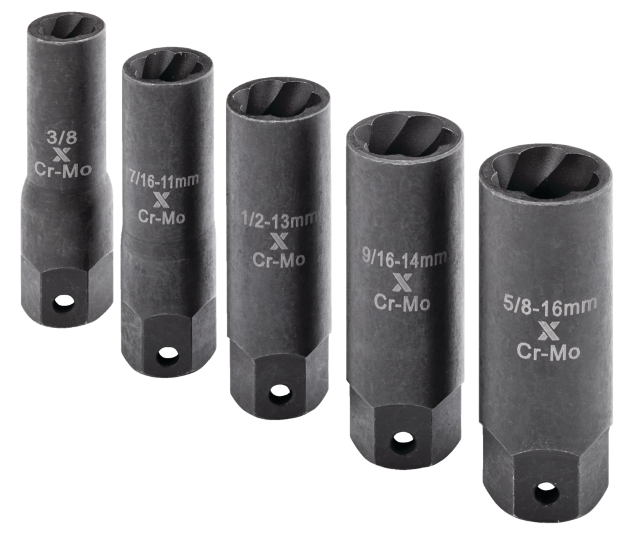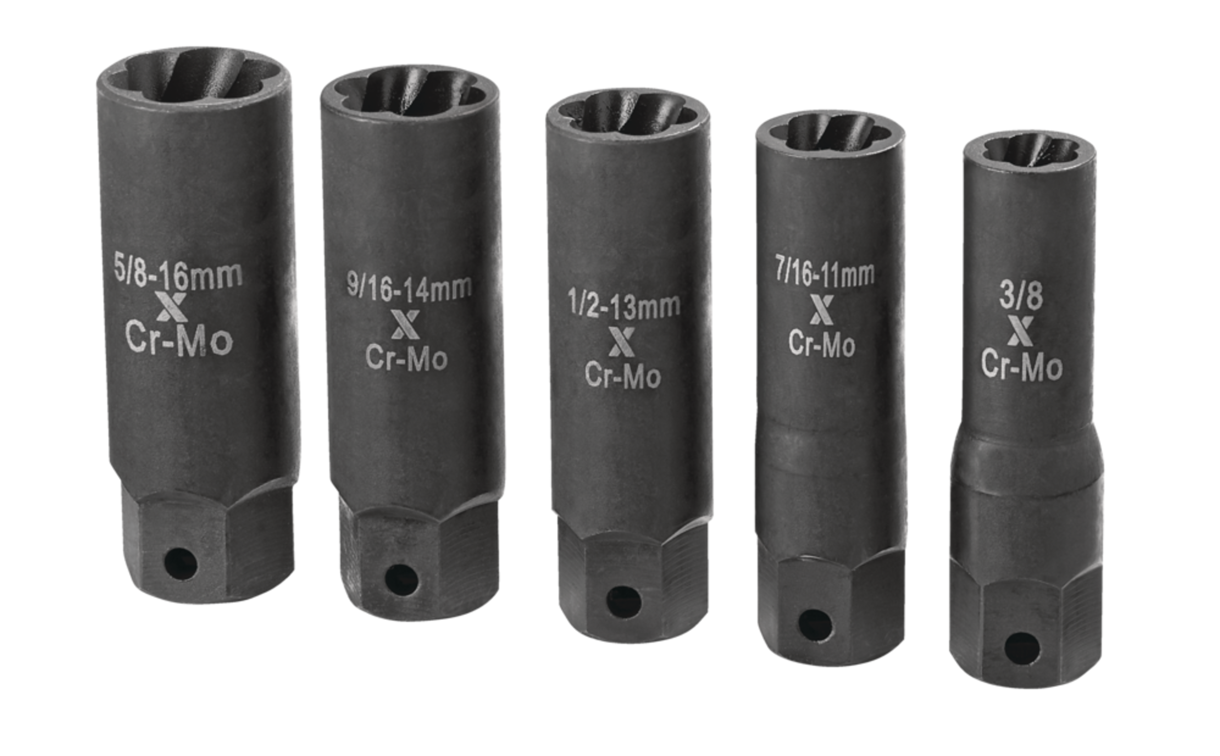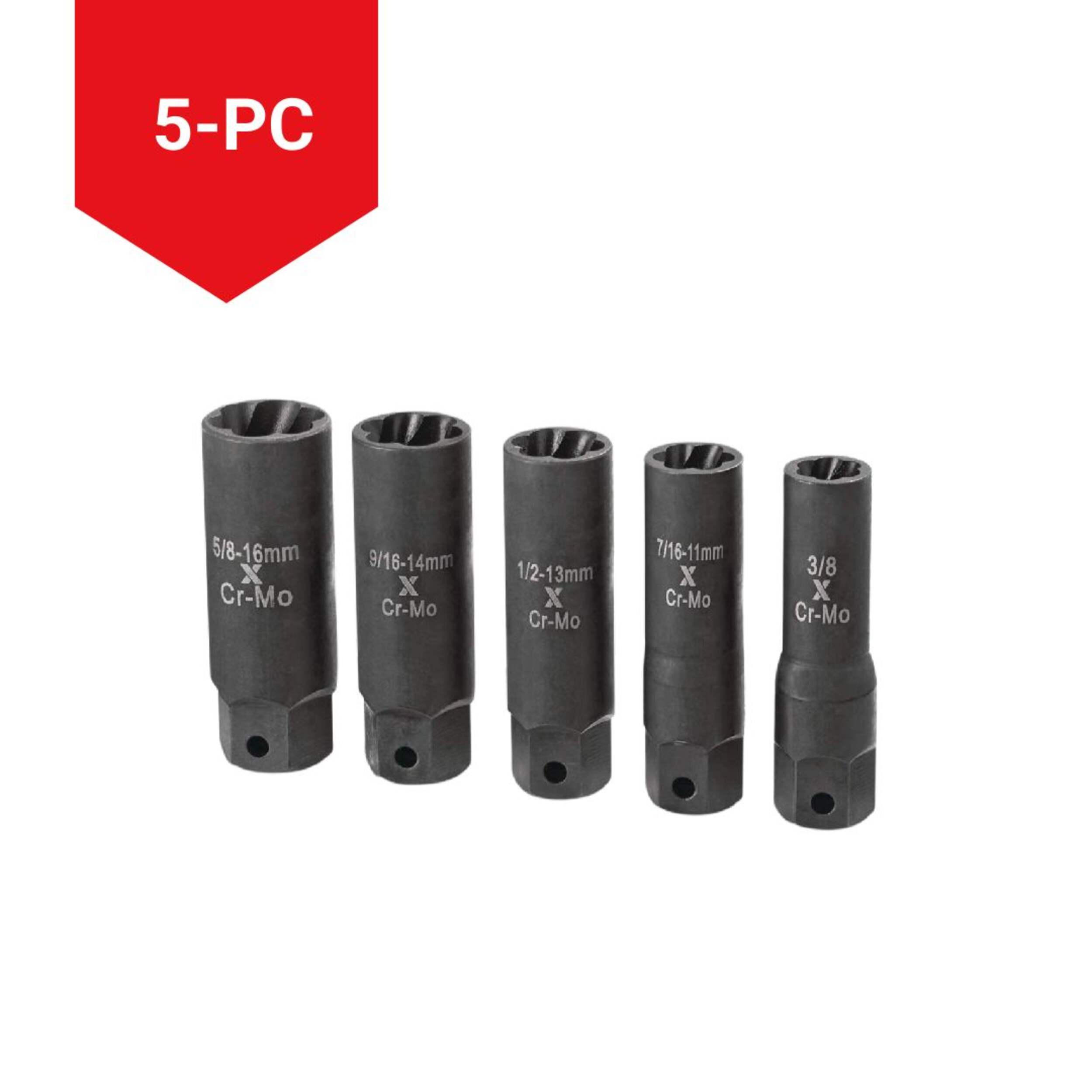 Includes 5 pieces: 3/8", 7/16" (11mm), 1/2" (13mm), 9/16" (14mm), 5/8" (16mm)