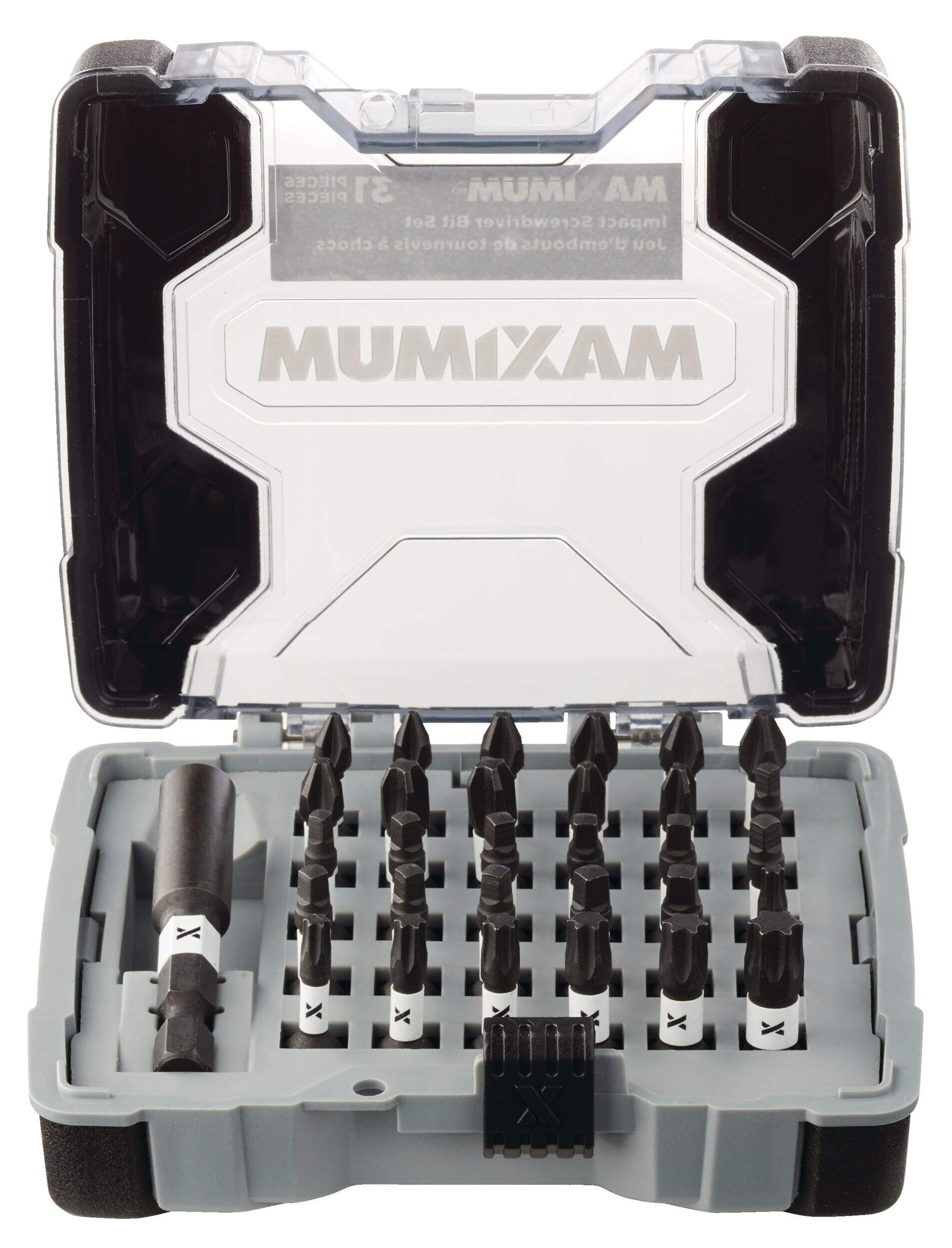 The MAXIMUM Impact-Ready Access Screwdriver Bit Set with 31 Pieces features bits designed with a torsion zone to absorb impact torque and reduce breakage. The screwdriver bits in this durable MAXIMUM bit set are constructed from high-quality S2 steel to provide them with strength, rigidity, and toughness, enabling you to drill or drive into more difficult surfaces. The bit set also boasts a carrying case for easy transportation that features a transparent lid for quick and easy access to and identification of the bits inside. The set includes various bits with different head types and sizes, including Phillips, Robertson, and Torx.