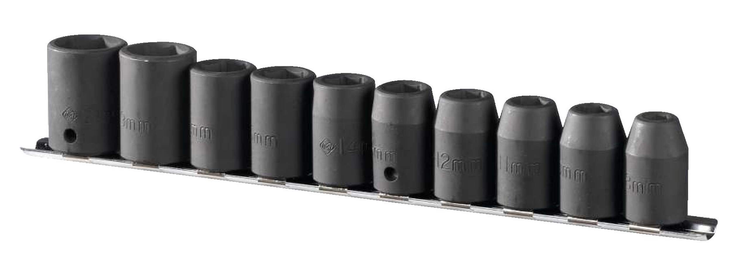 Sockets are packed on a clip rail organizer for easy transport