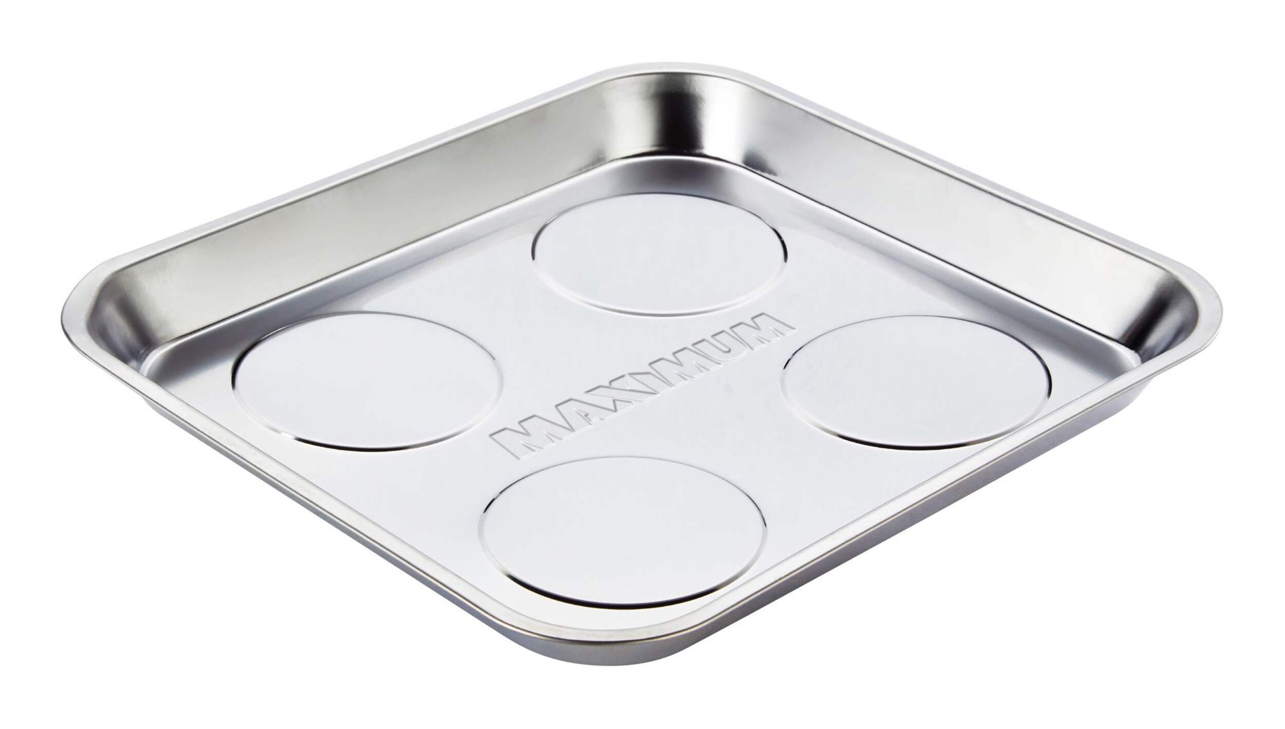 MAXIMUM Magnetic Square Tray features polished, heavy-gauge, stainless steel for superior strength and durability