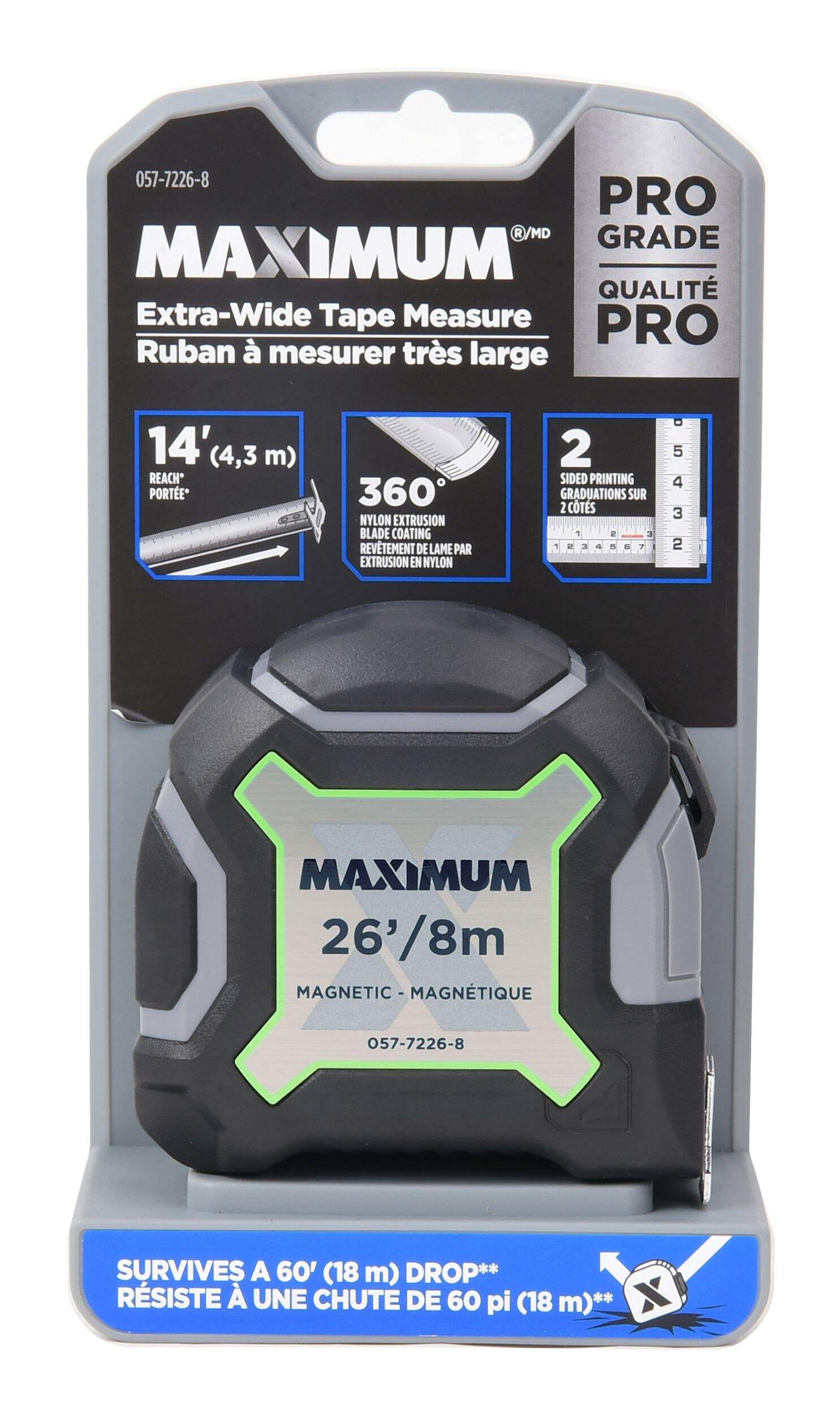 MAXIMUM Magnetic Tape Measure features a magnetic hook for superior blade control