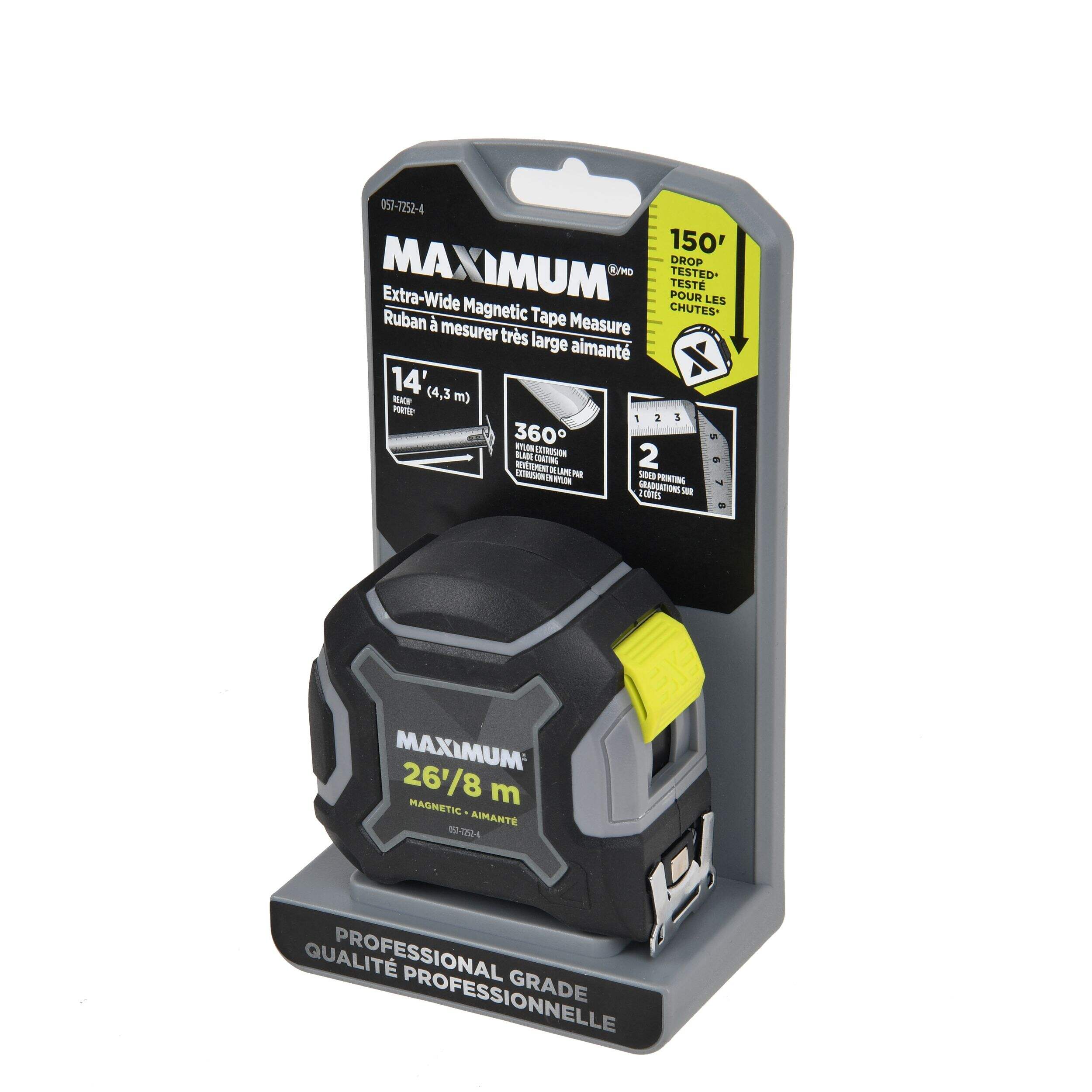 Take professional-grade measurements with this MAXIMUM Magnetic Tape Measure. Featuring a high-quality construction, this measuring tape is the ideal tool for architects, engineers, professionals and DIY enthusiasts. This measuring tape also features double-sided printing with easy-to-read numbers, allowing you to get accurate measurements for every project or job. Durable, functional and versatile, this measuring tape is a must-have for contractors and home-owners alike.